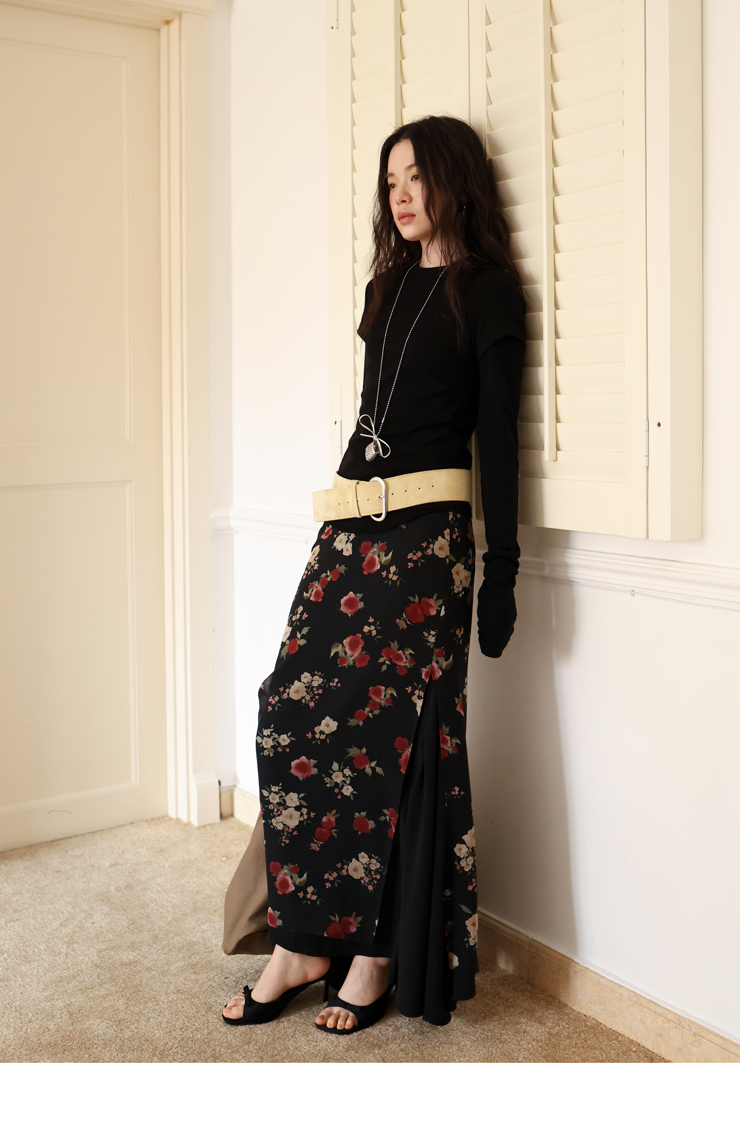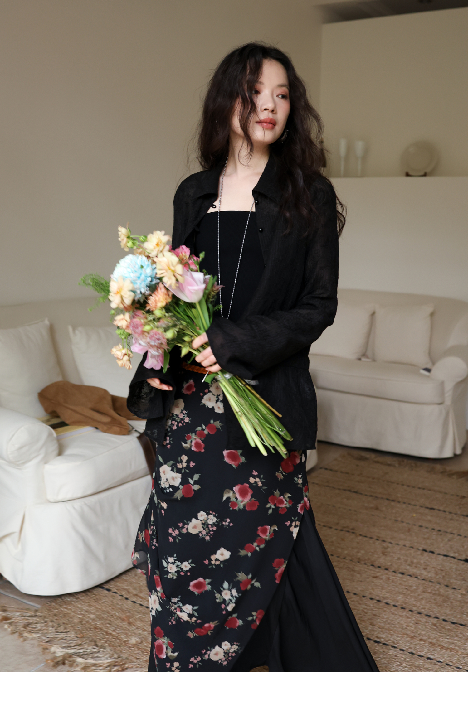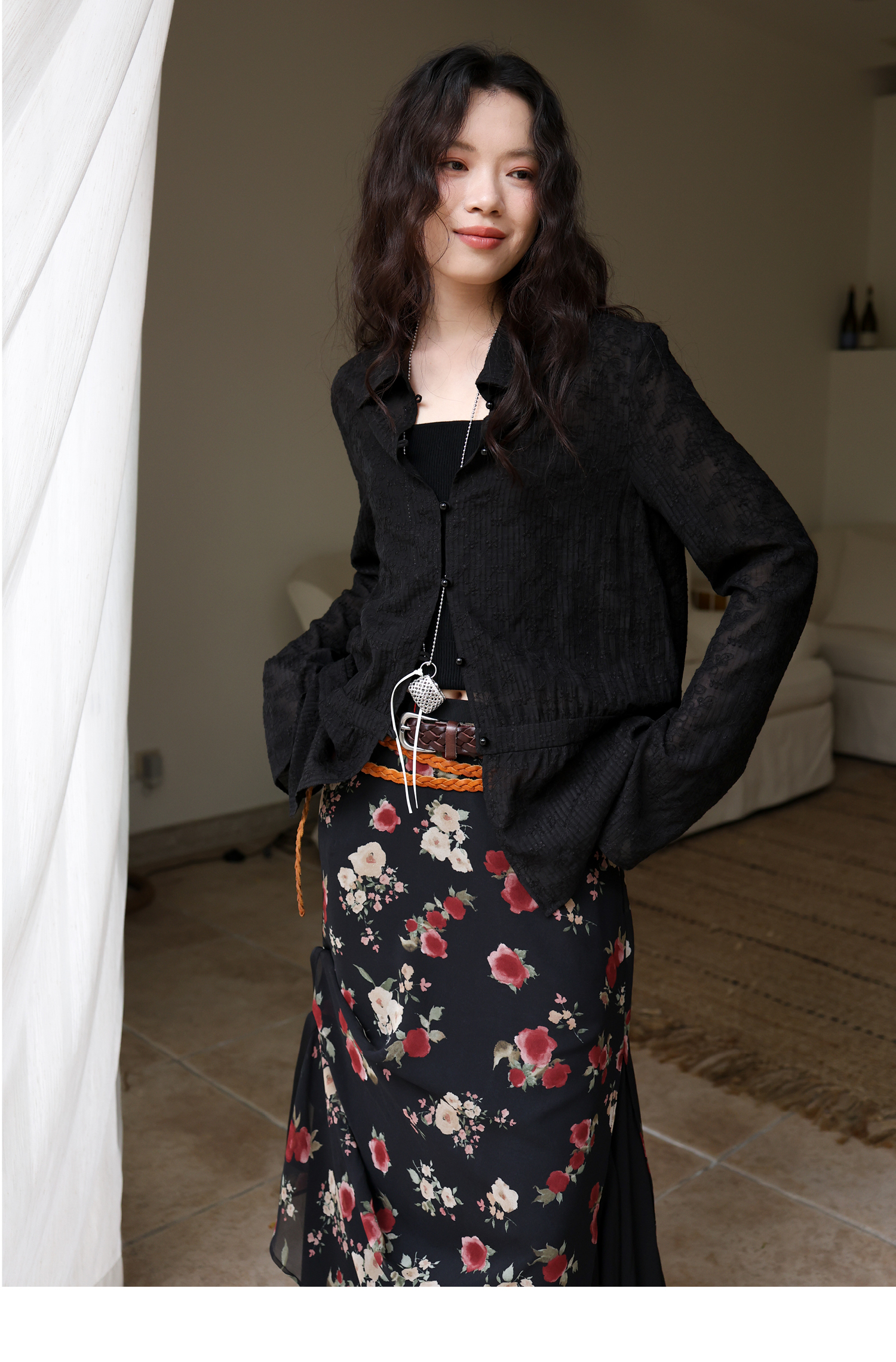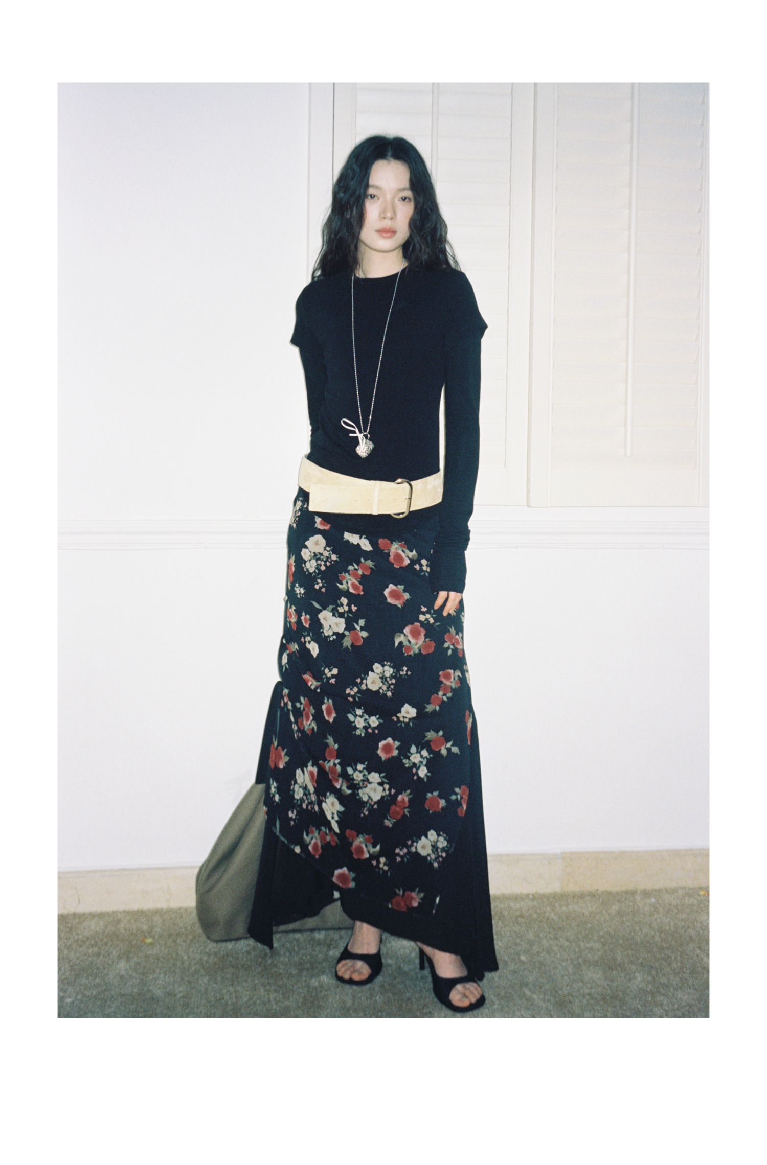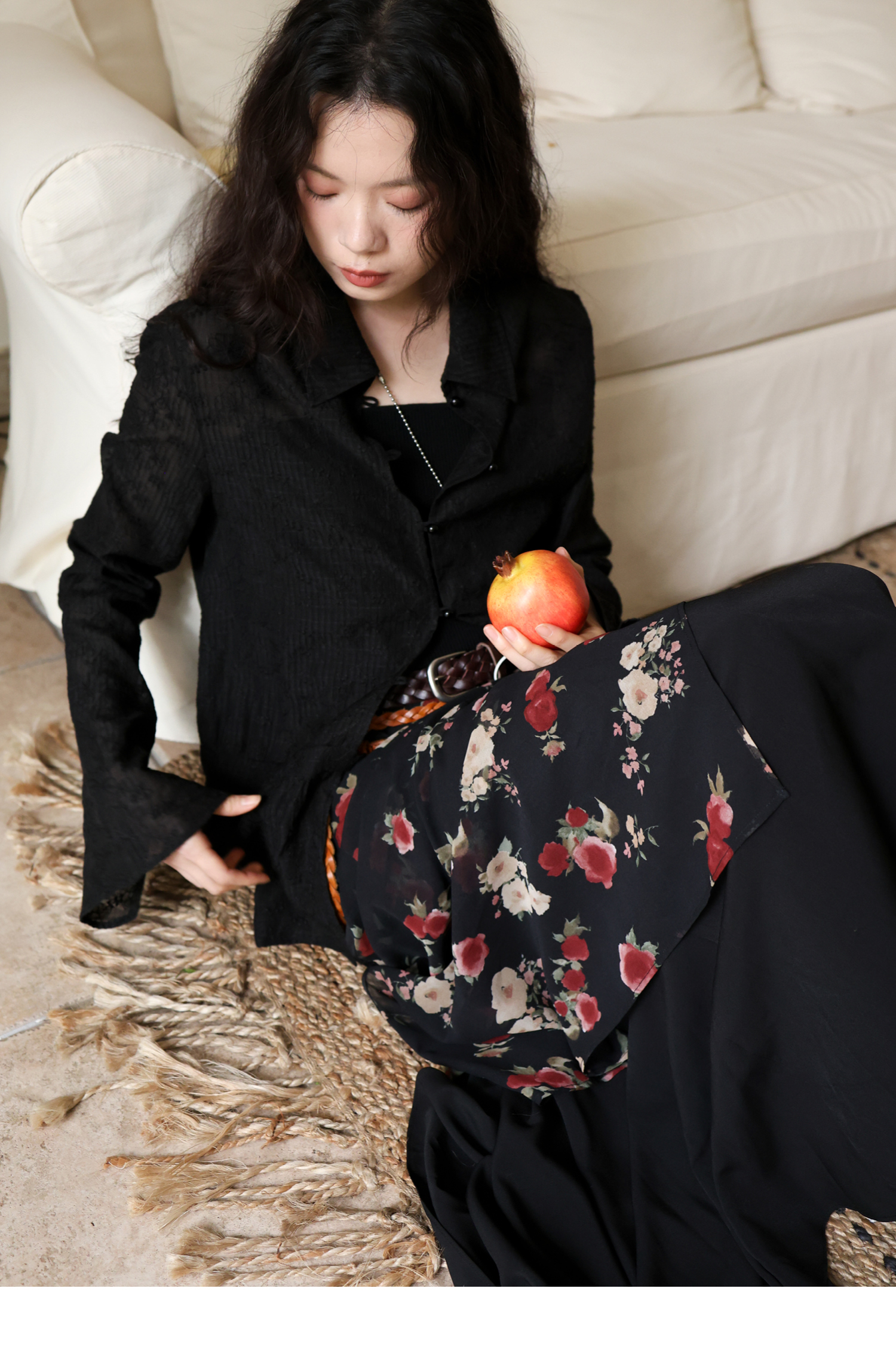 素舶 透气雪纺轻盈垂感玫瑰印花褶皱大裙摆长半裙SUPERSCAPE