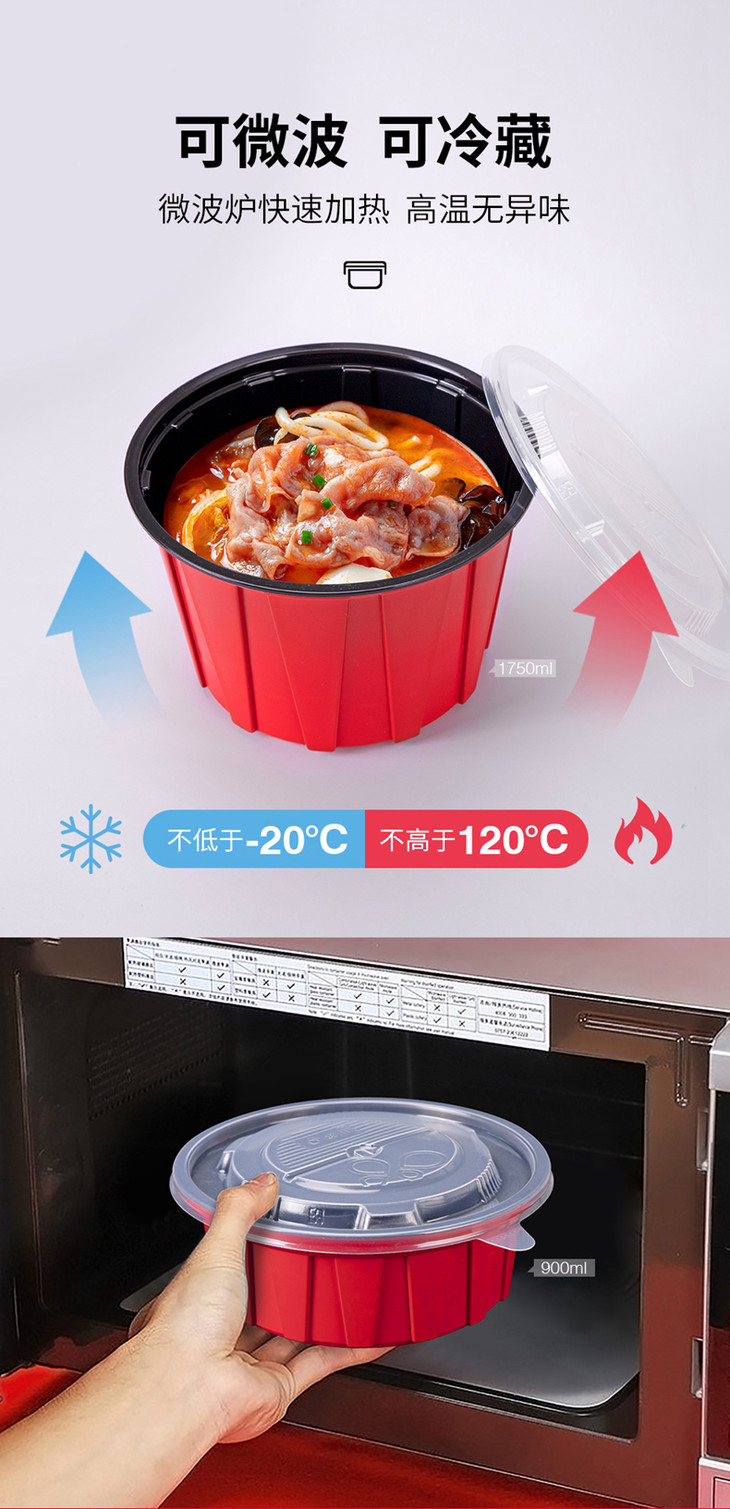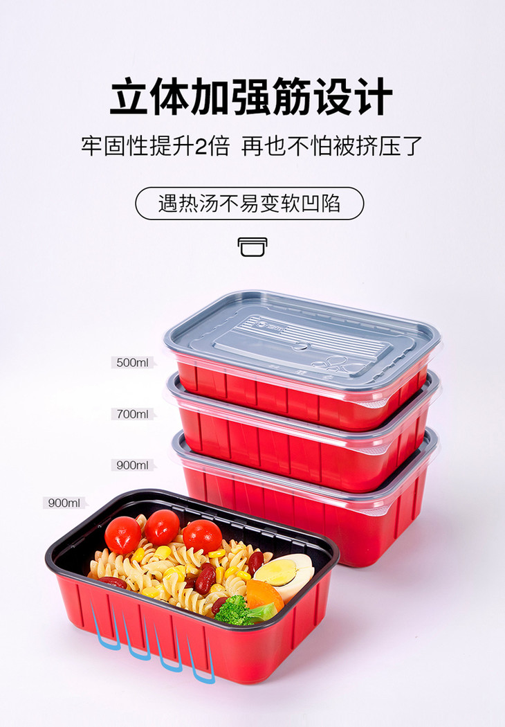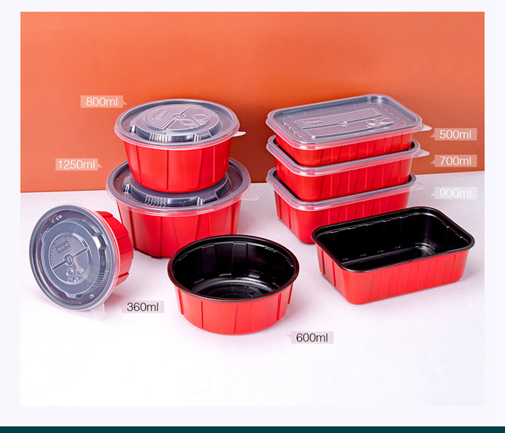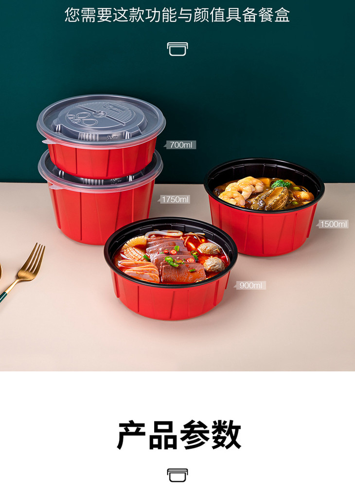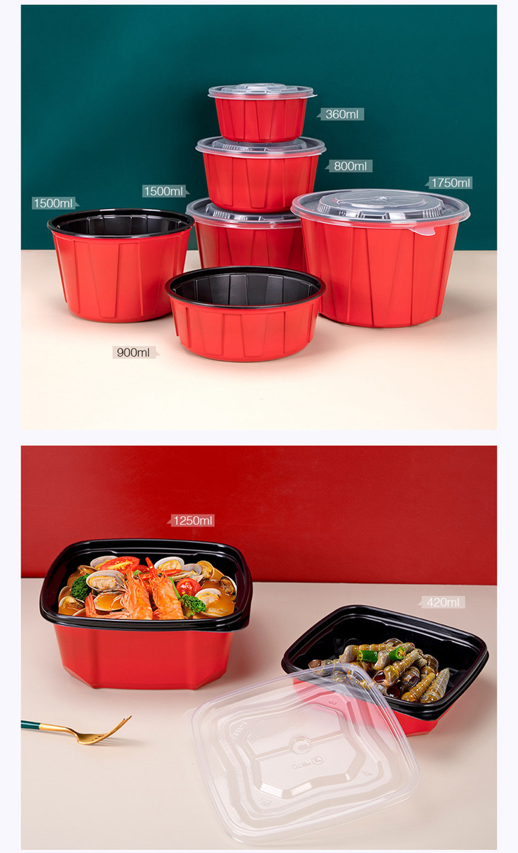 喇叭花黑红一次性圆碗饭盒外卖打包盒面碗汤碗商用圆形餐盒带盖