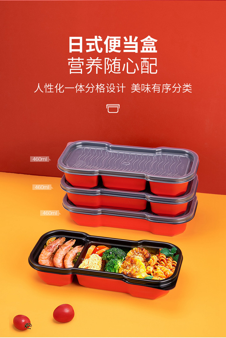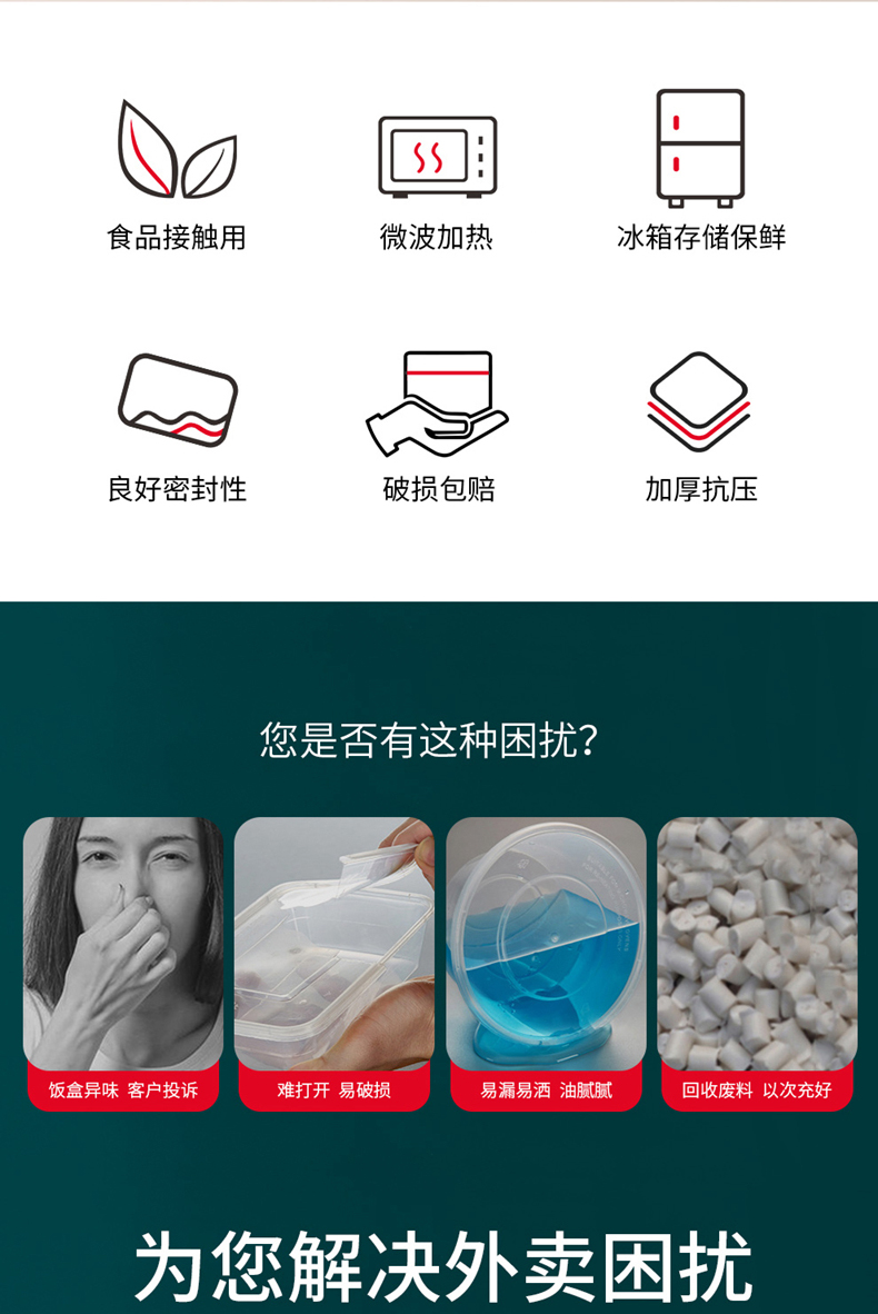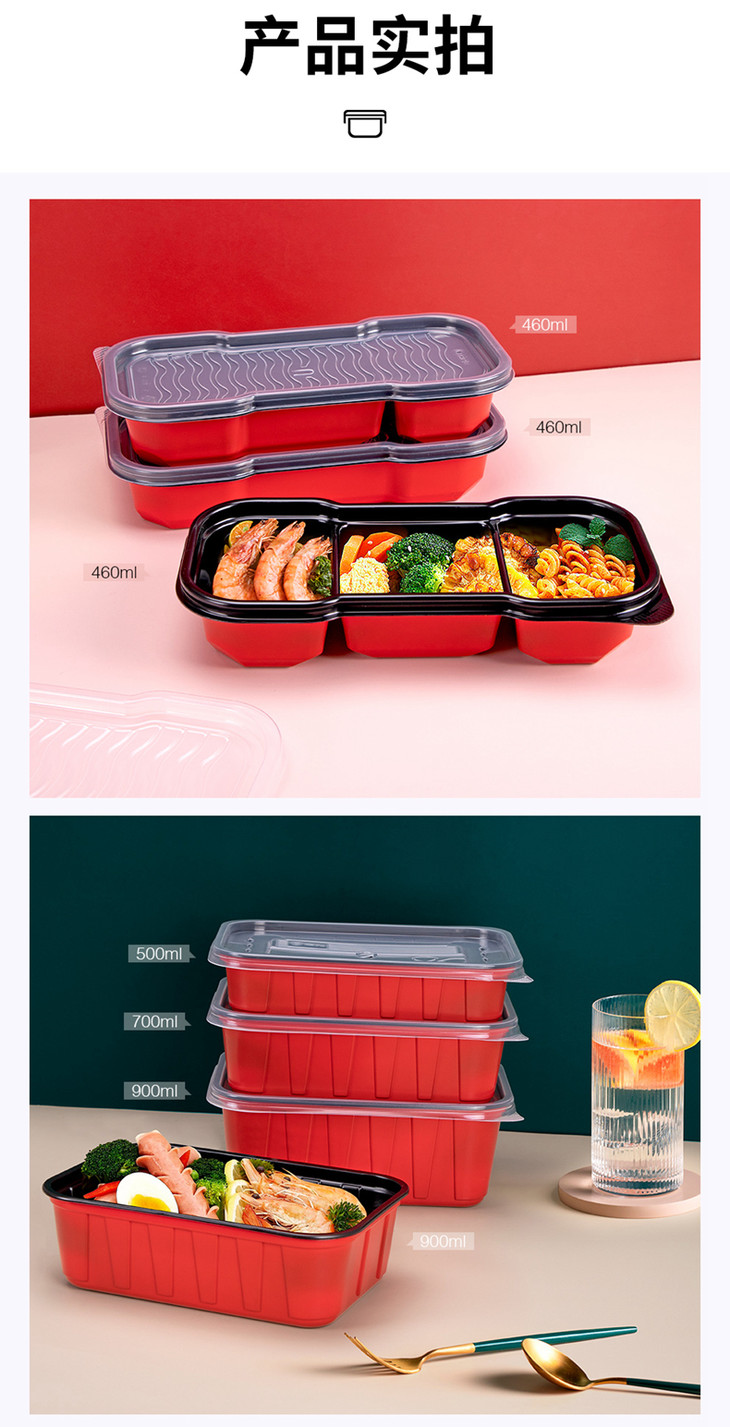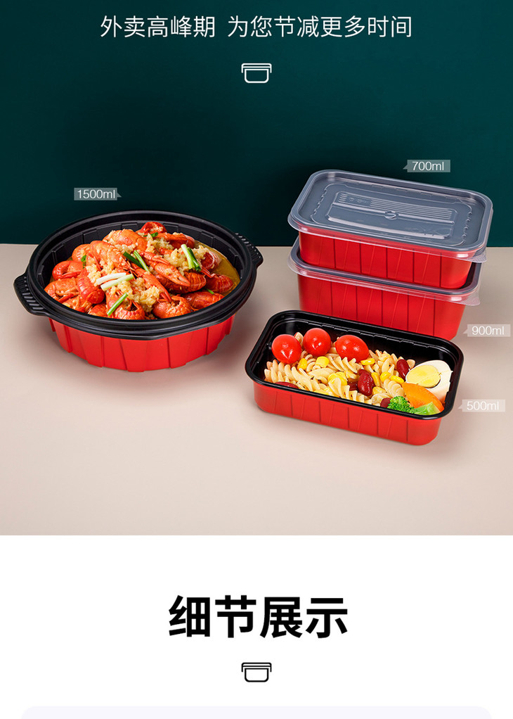 喇叭花黑红一次性圆碗饭盒外卖打包盒面碗汤碗商用圆形餐盒带盖