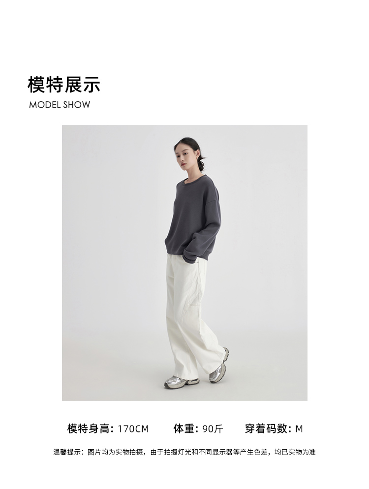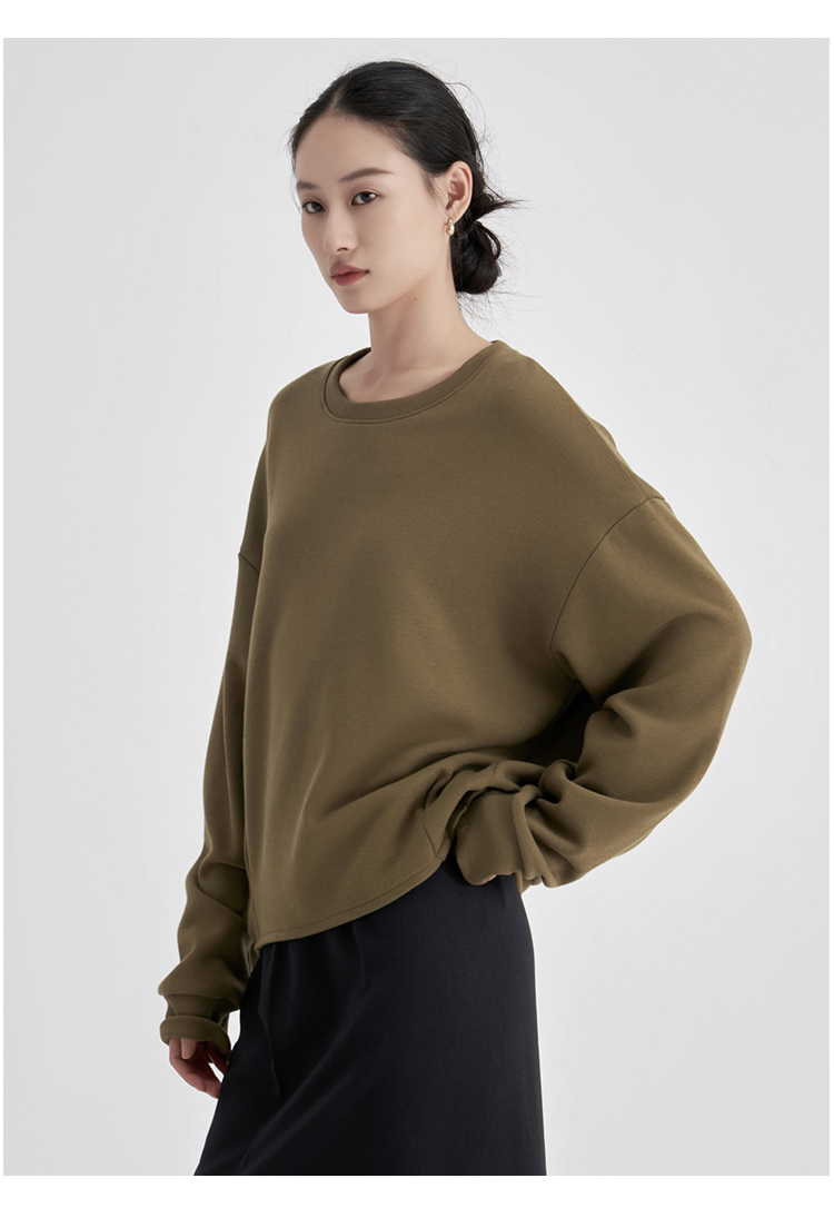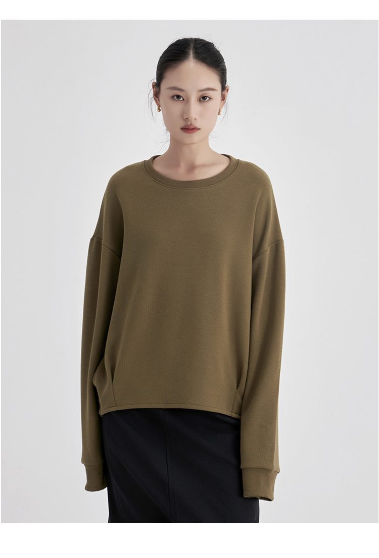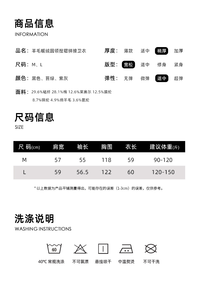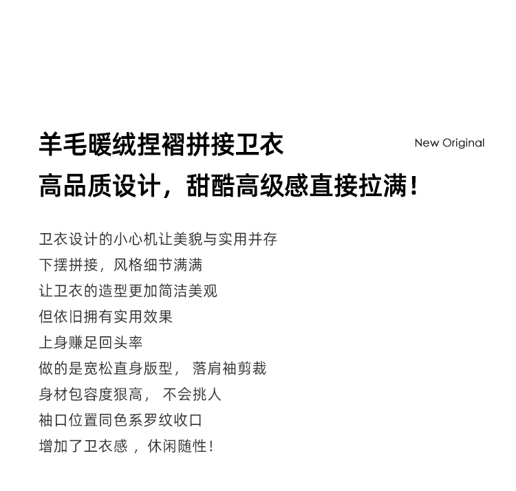 weyo秋冬女纯色羊毛暖绒圆领捏褶拼接卫衣880059 商品图3