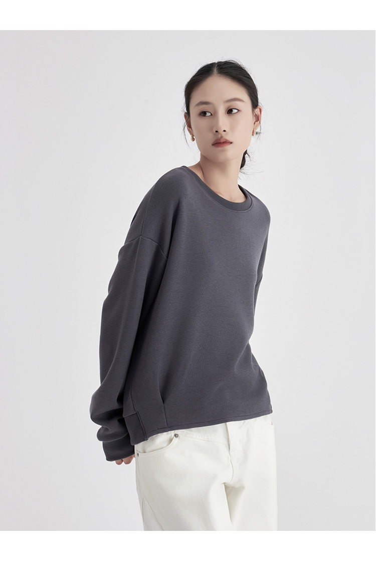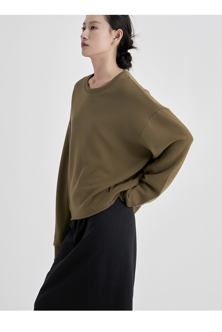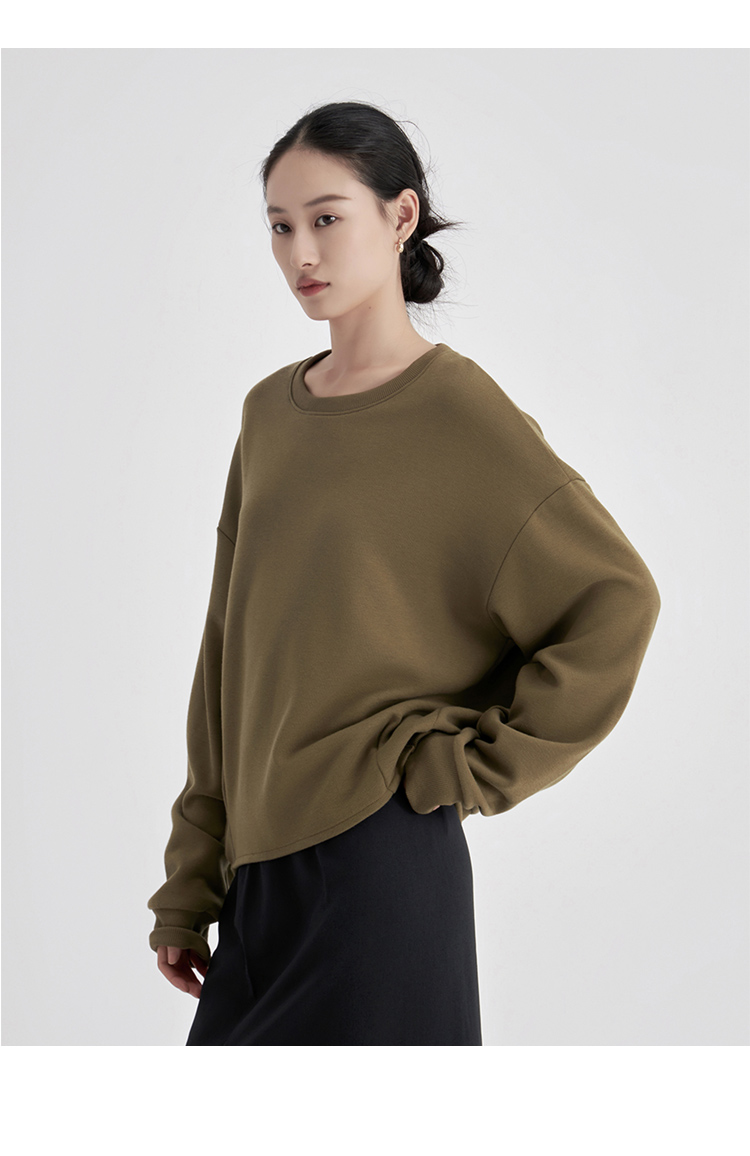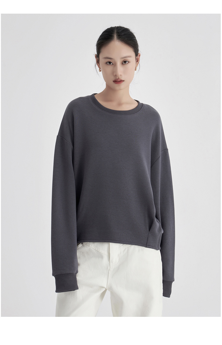 weyo秋冬女纯色羊毛暖绒圆领捏褶拼接卫衣880059 商品图2