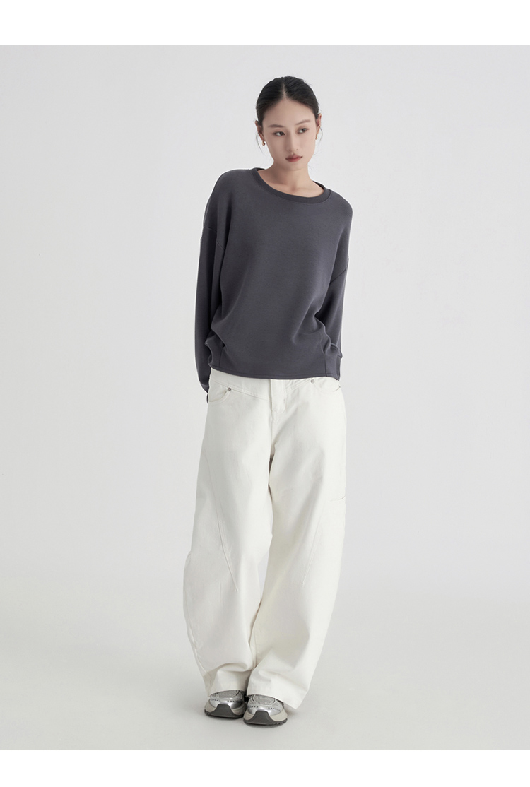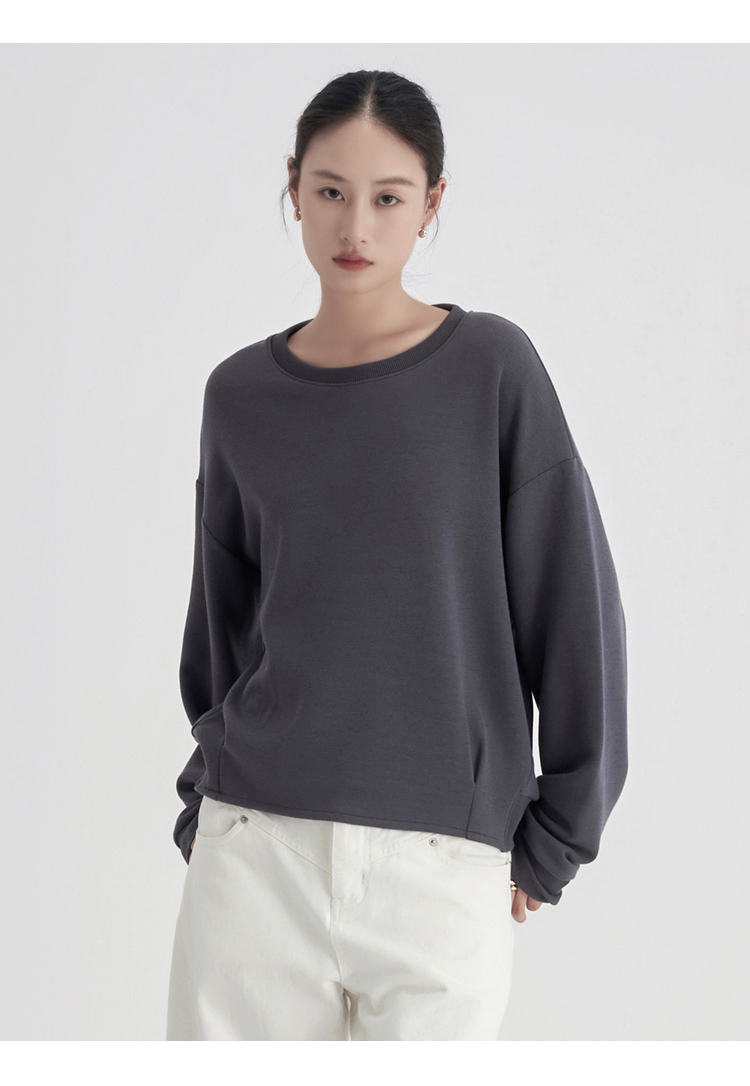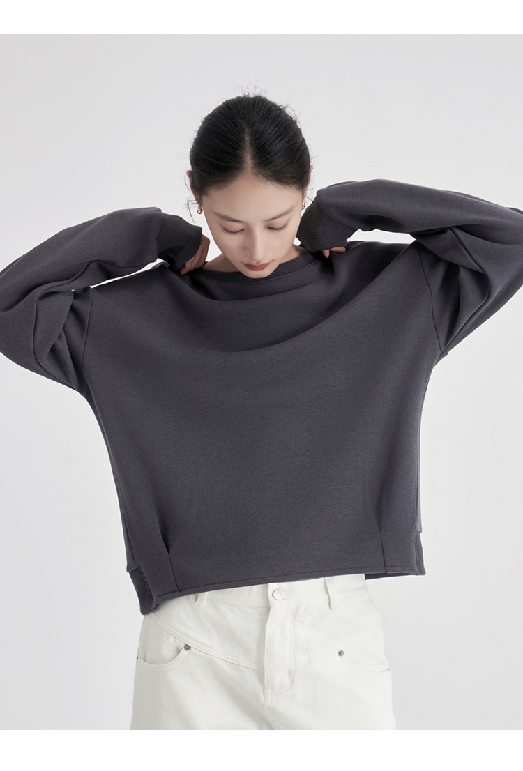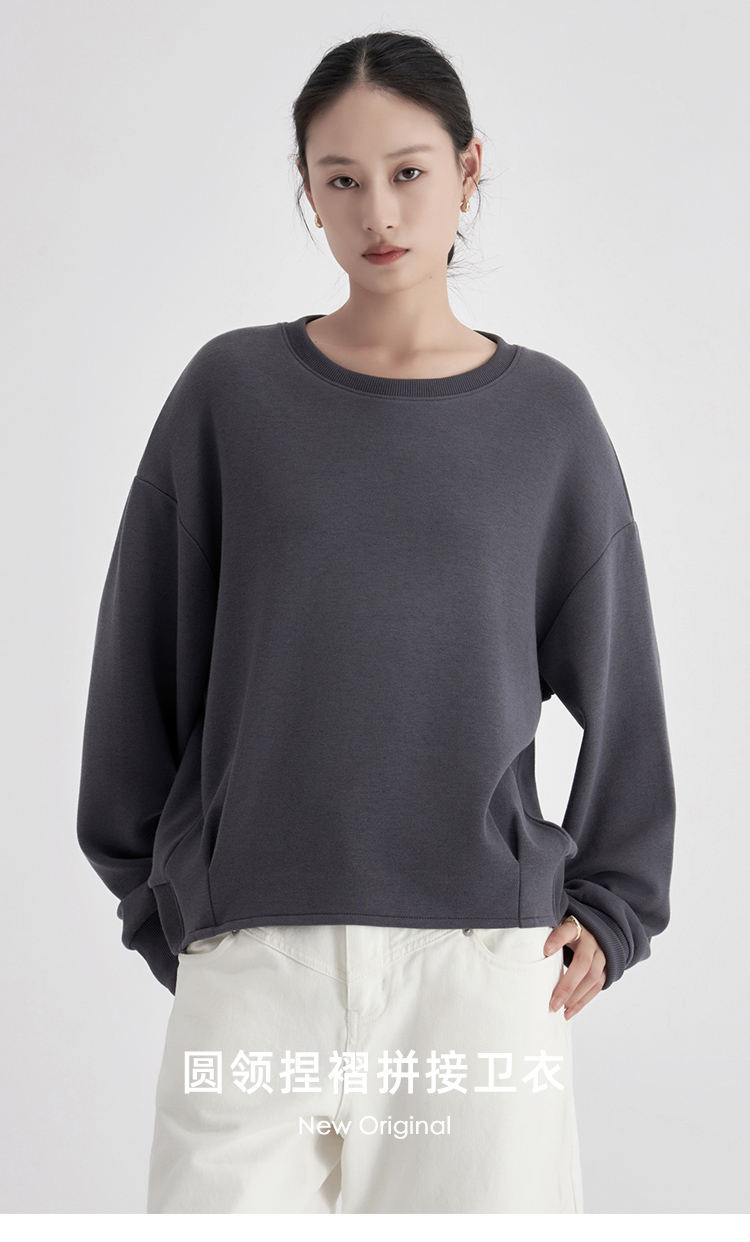 weyo秋冬女纯色羊毛暖绒圆领捏褶拼接卫衣880059 商品图0
