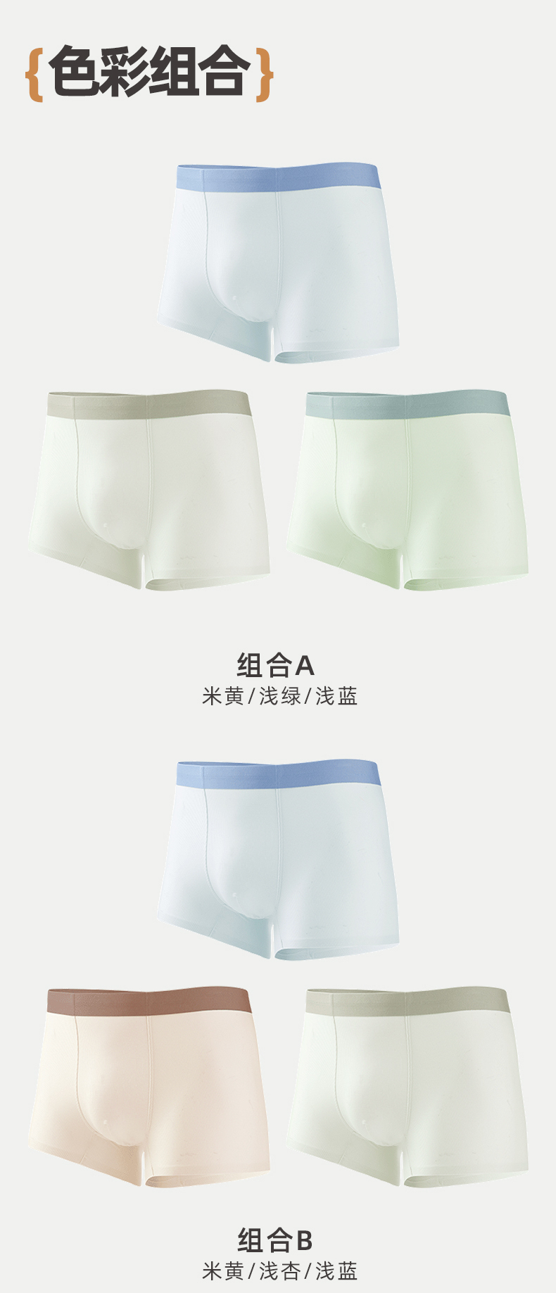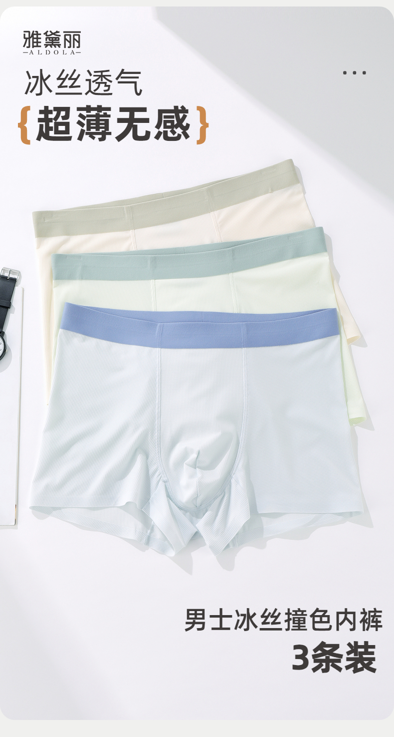 【3条装】雅黛俪男士内裤夏季薄款舒适透气冰丝青少年平角裤头