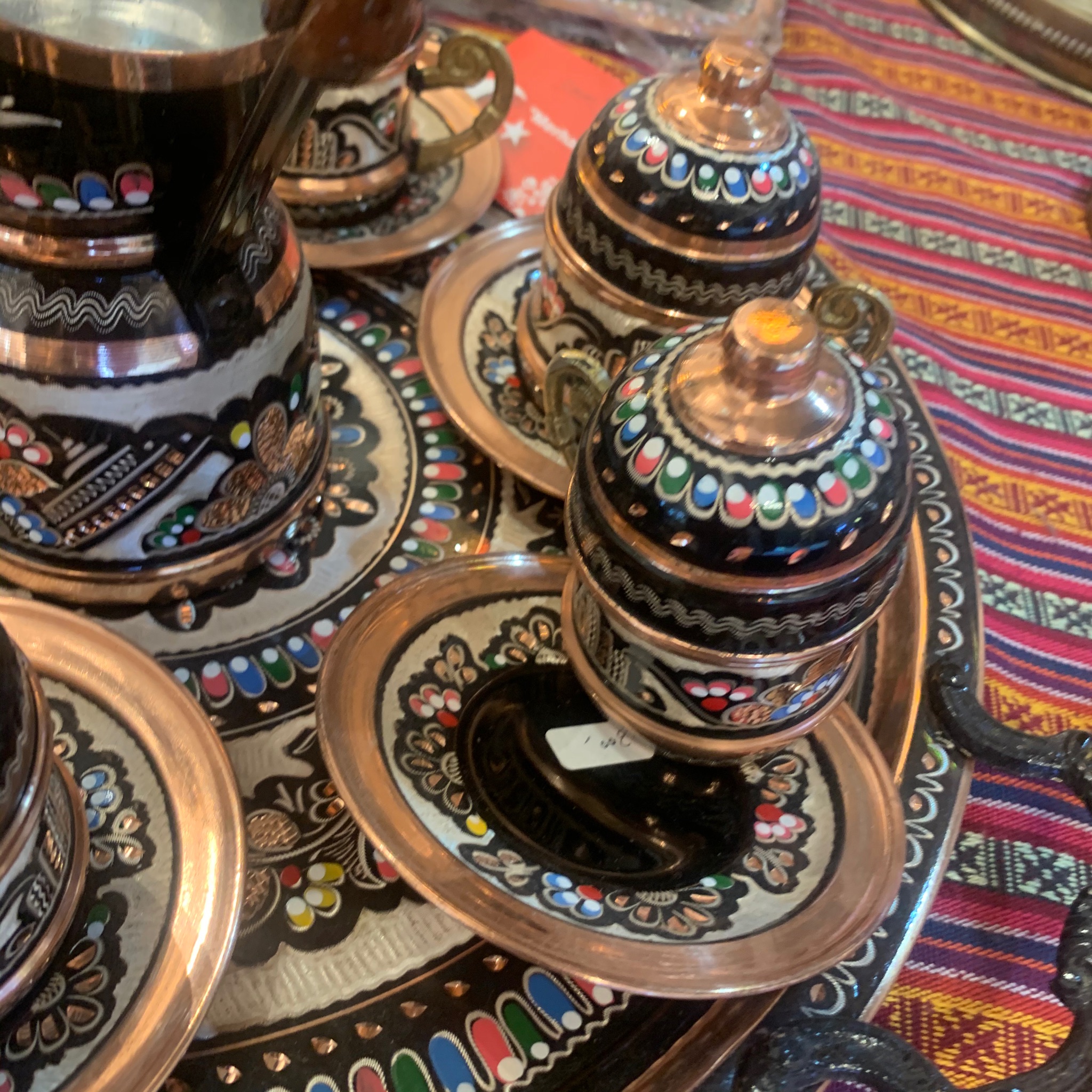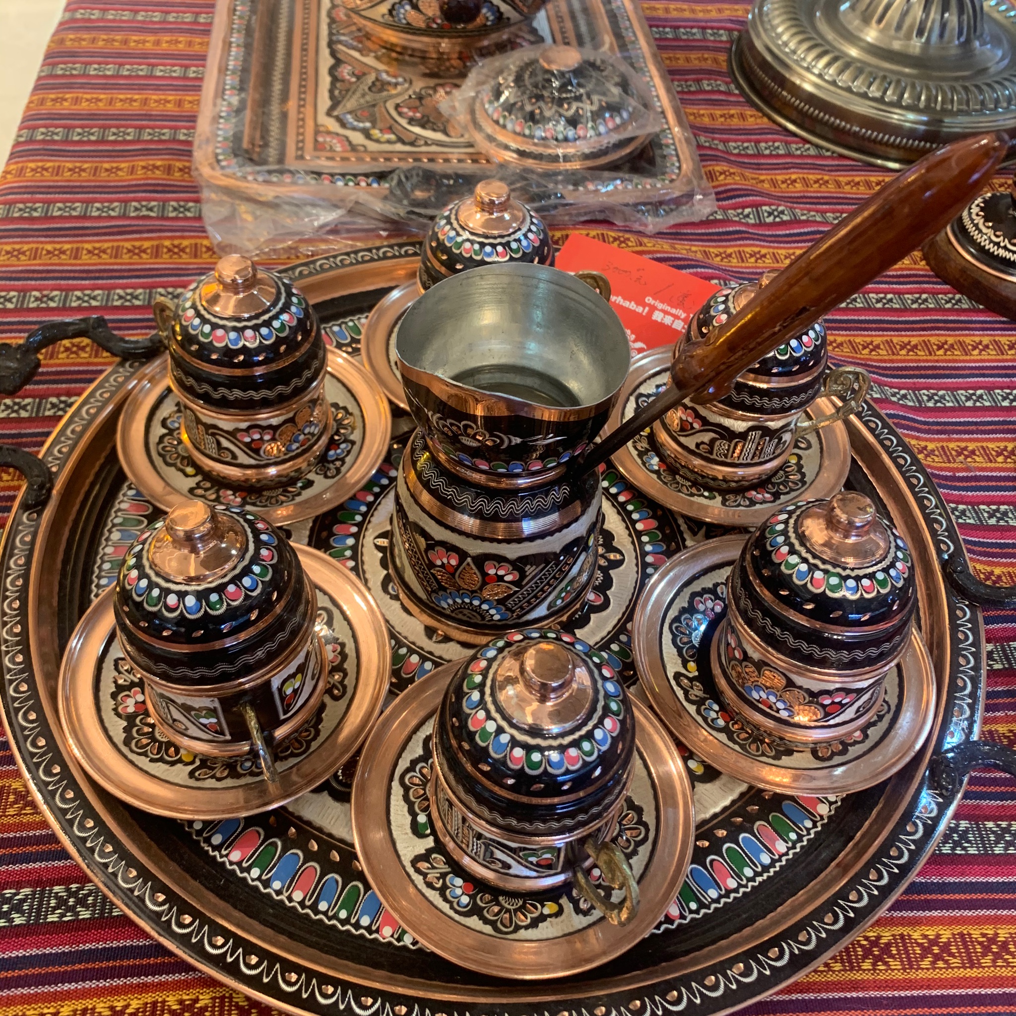 320246手工紫铜雕花珐琅彩手煮咖啡壶咖啡杯组合(2+5)12.5cm*35cm