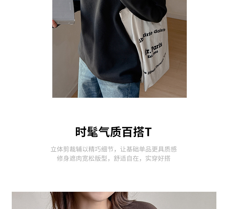 【颜值在线❗️内搭长袖打底衫】舒适宽松简约,拼接打底衫秋季韩版修身女装上衣,内搭长袖圆领T恤打底L
