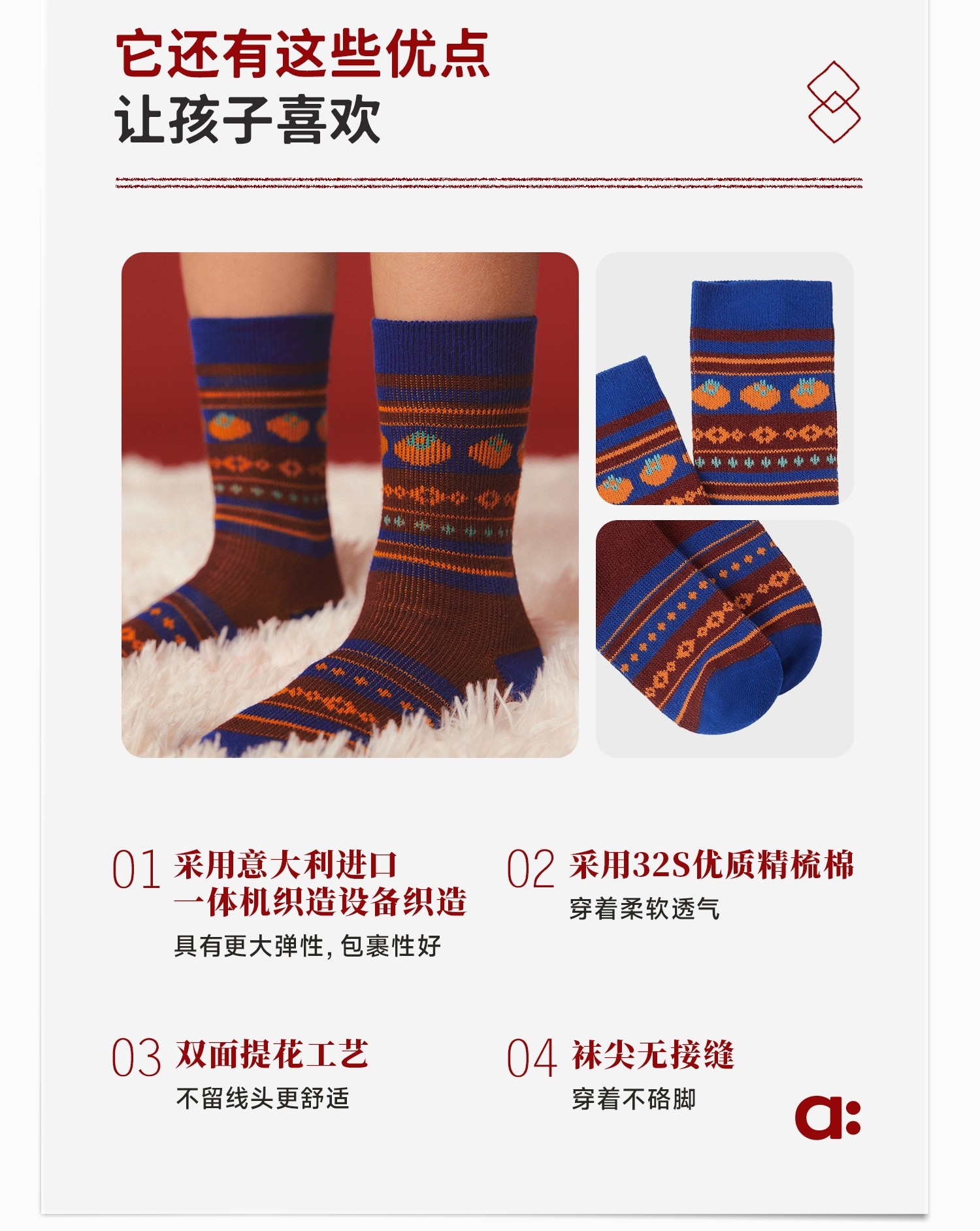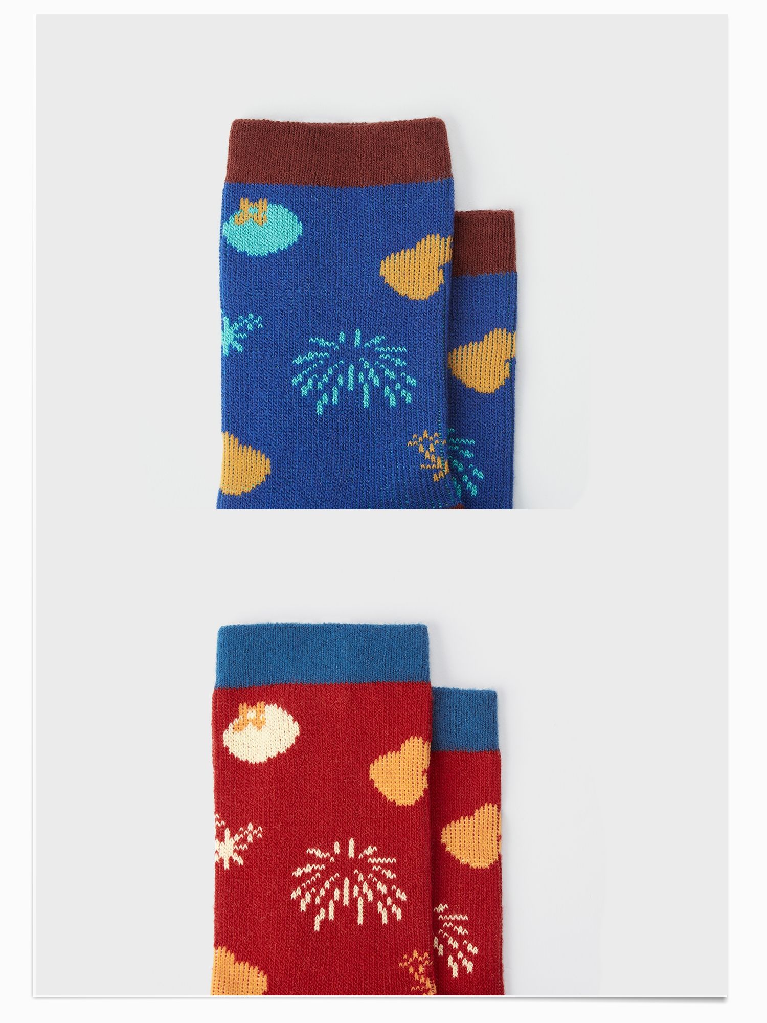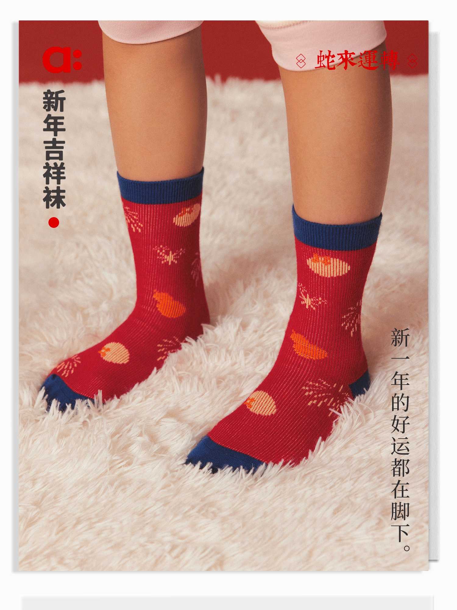 allblu幼岚儿童袜子男童女童加厚新款宝宝中筒袜新年吉祥袜子