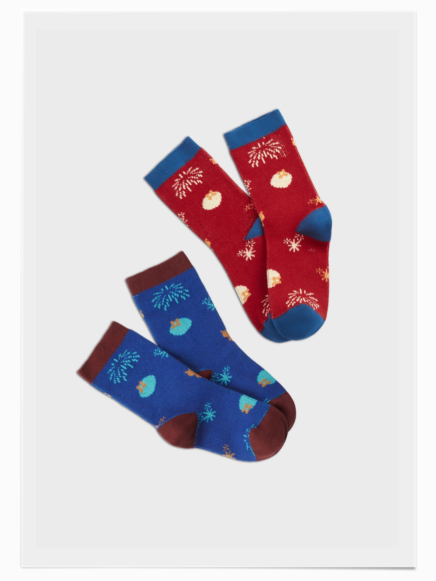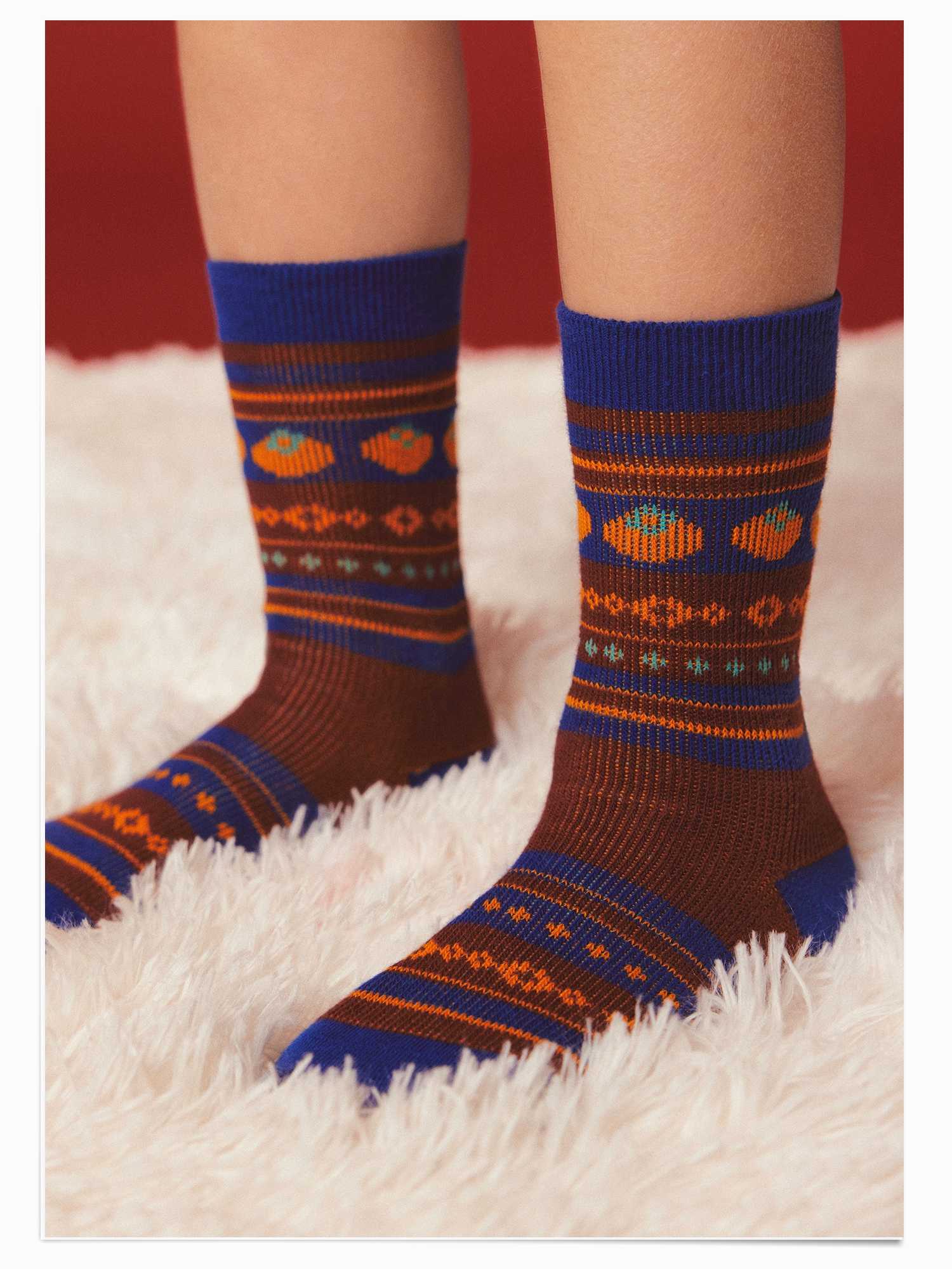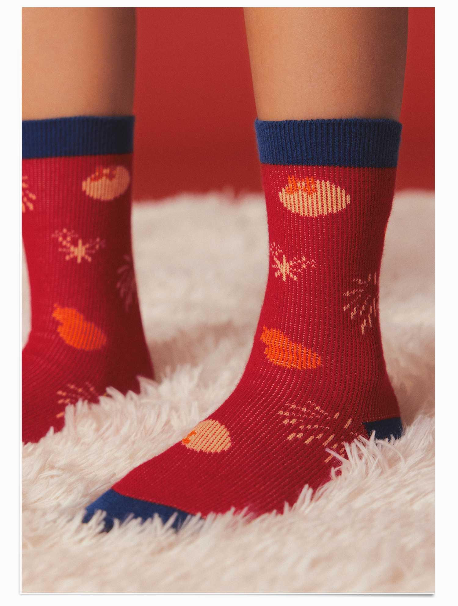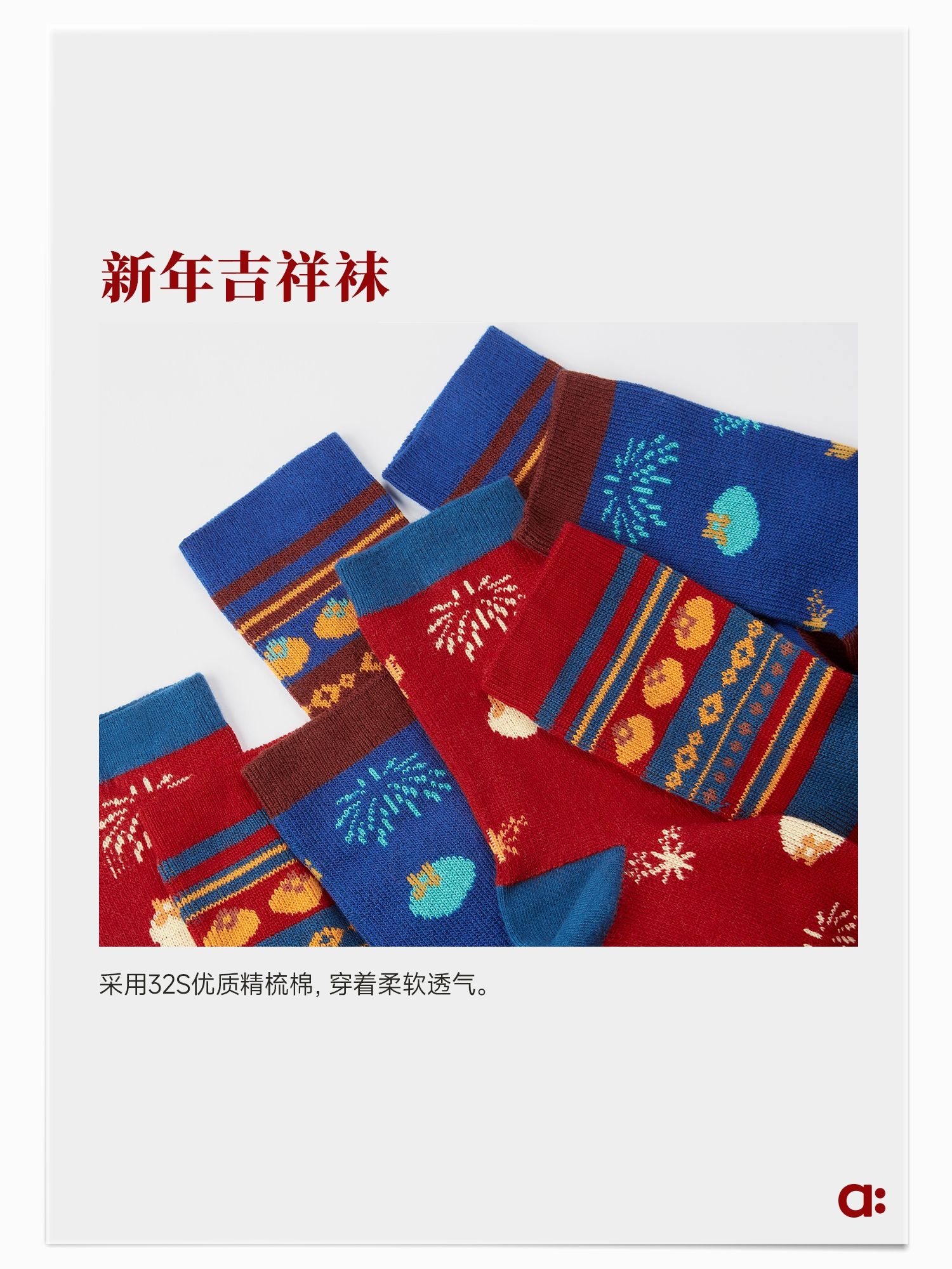 allblu幼岚儿童袜子男童女童加厚新款宝宝中筒袜新年吉祥袜子
