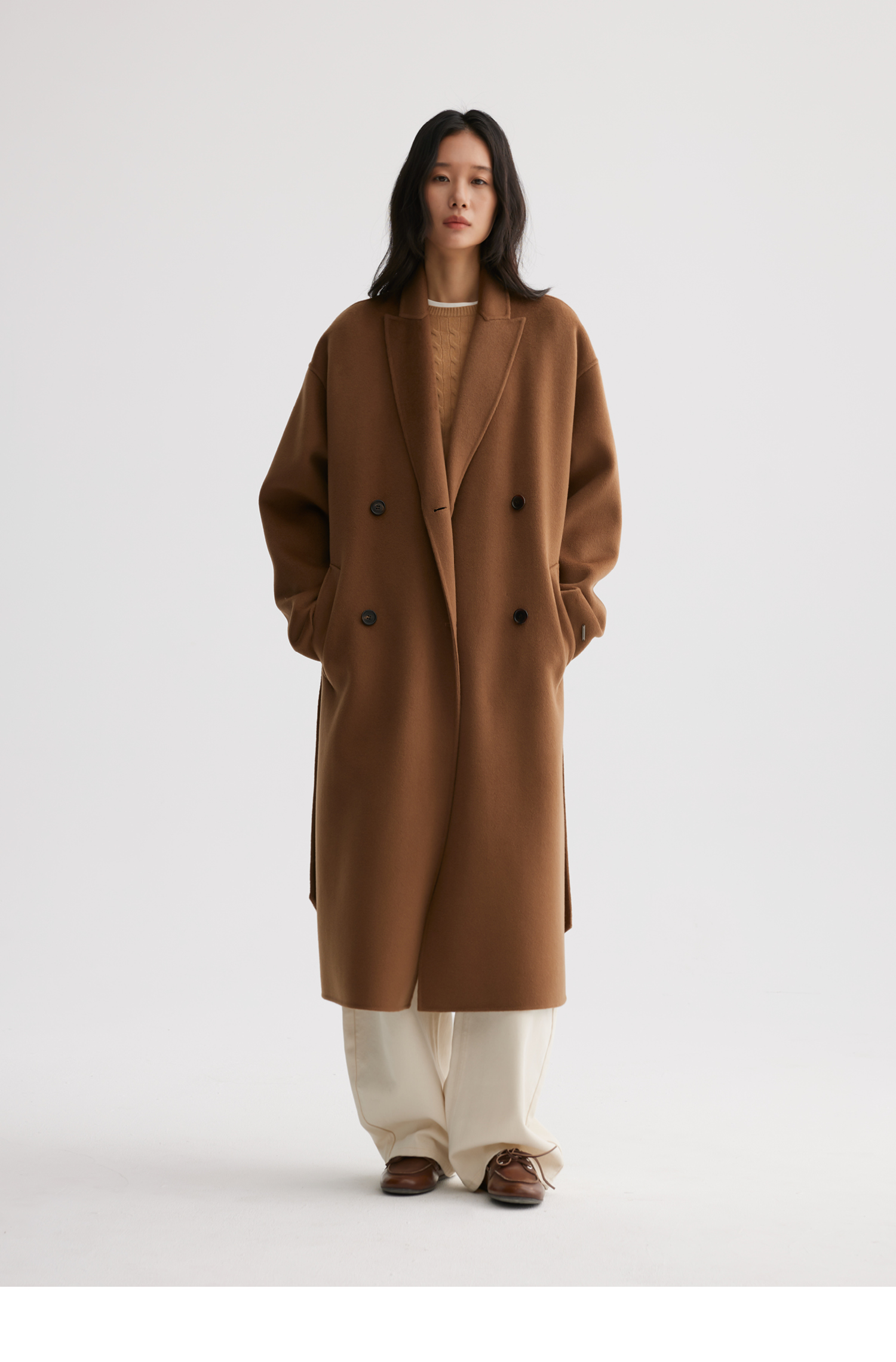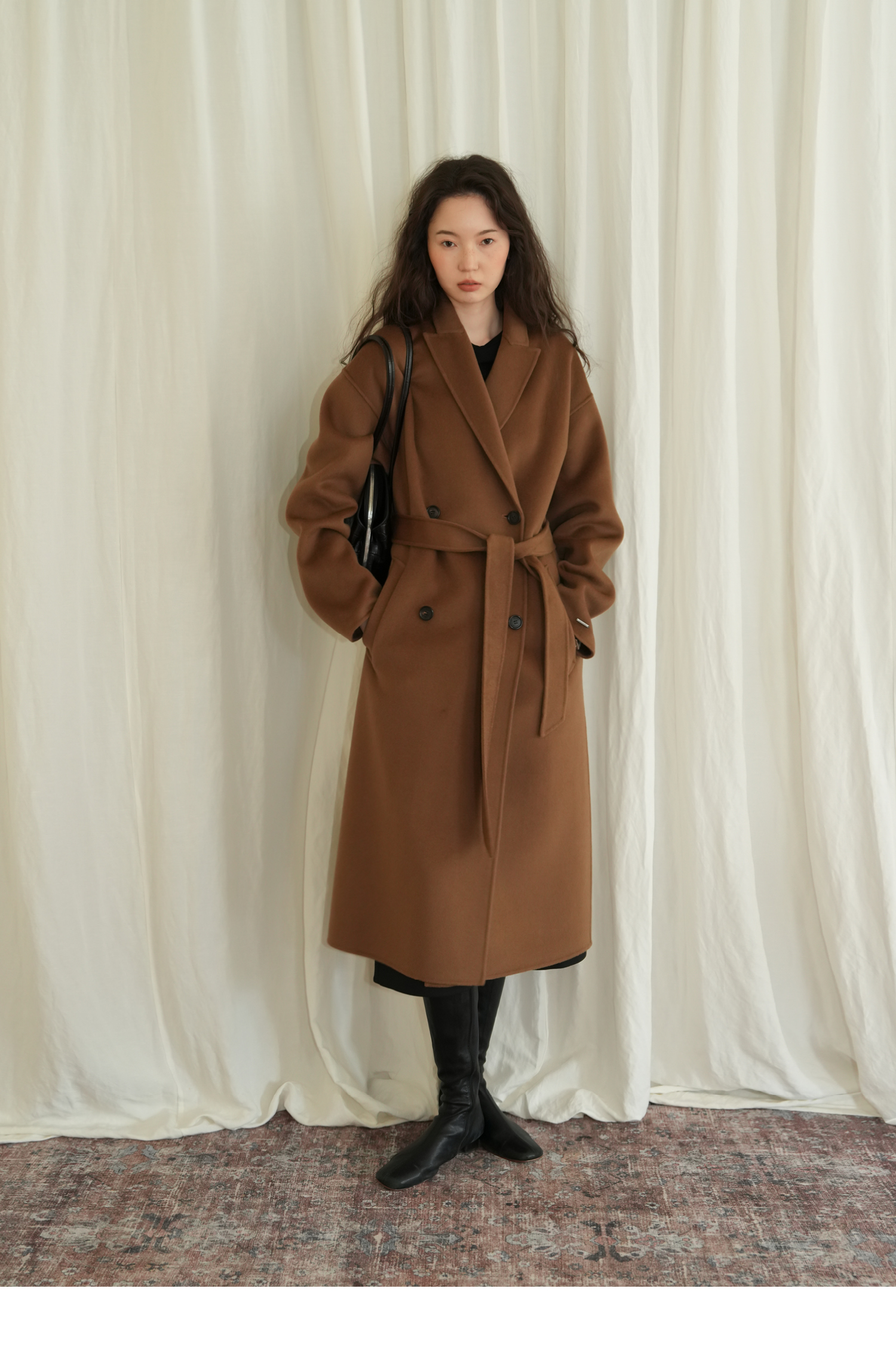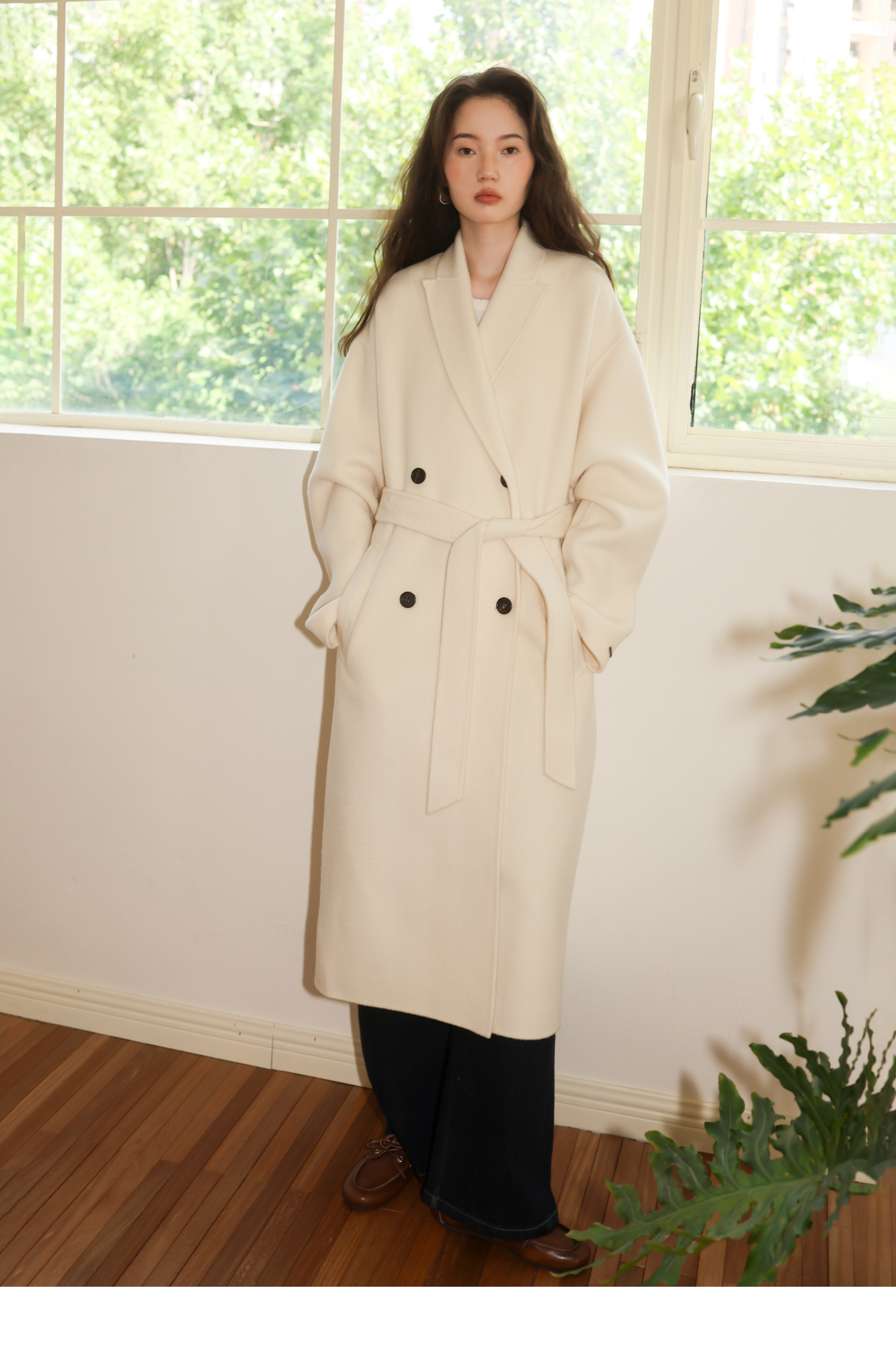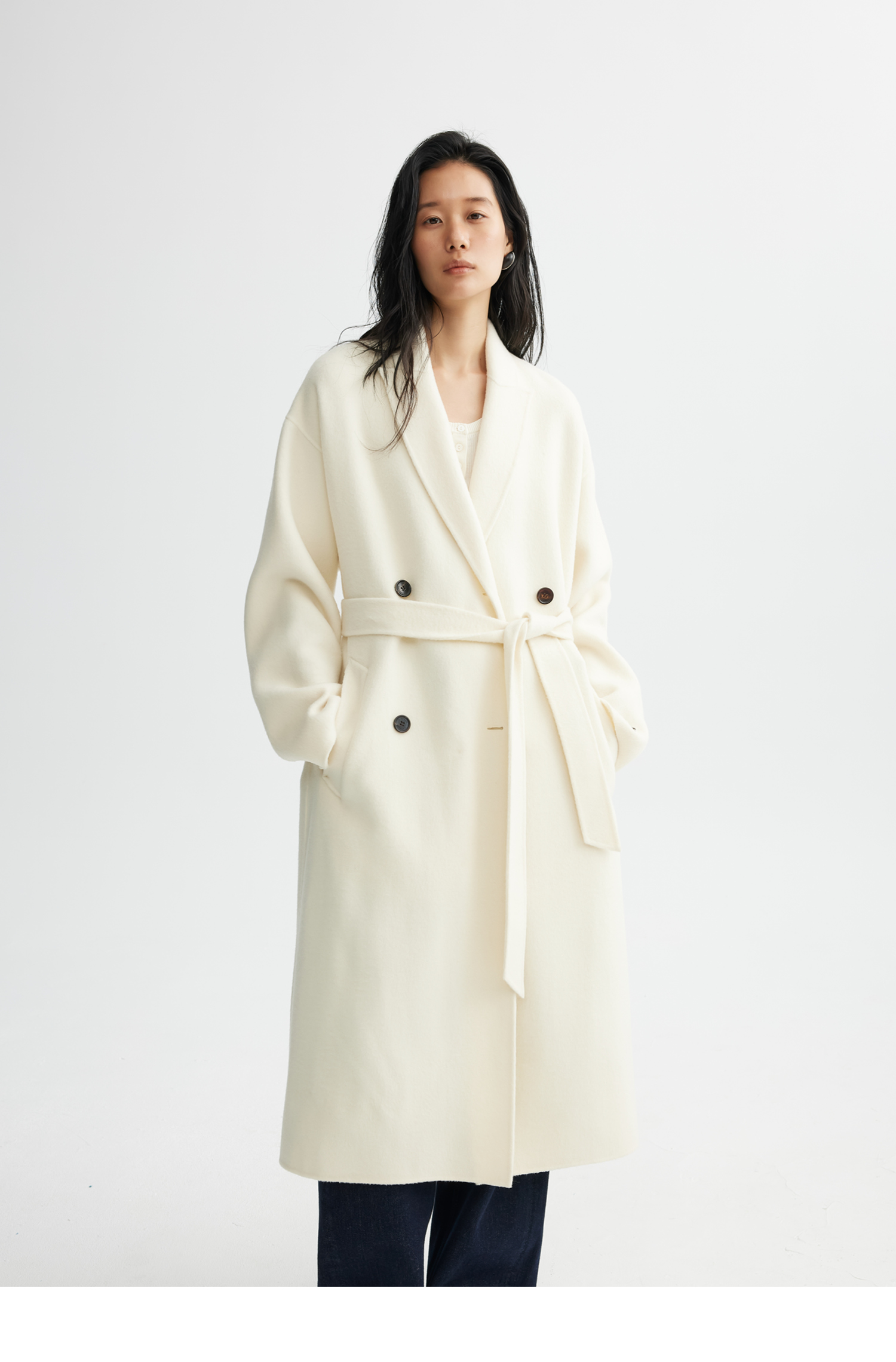 素舶 细支绵羊毛浴袍式长款双面呢大衣