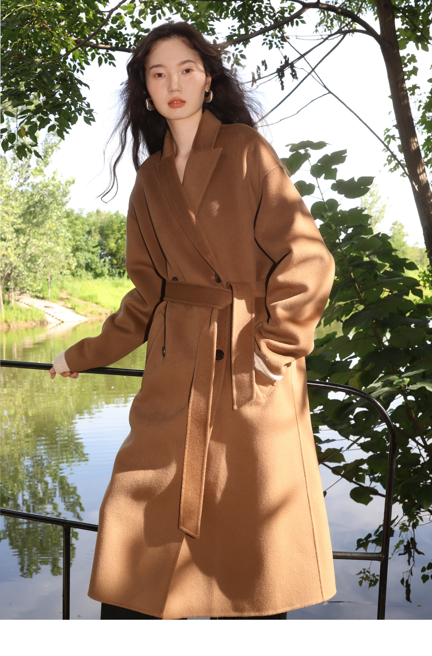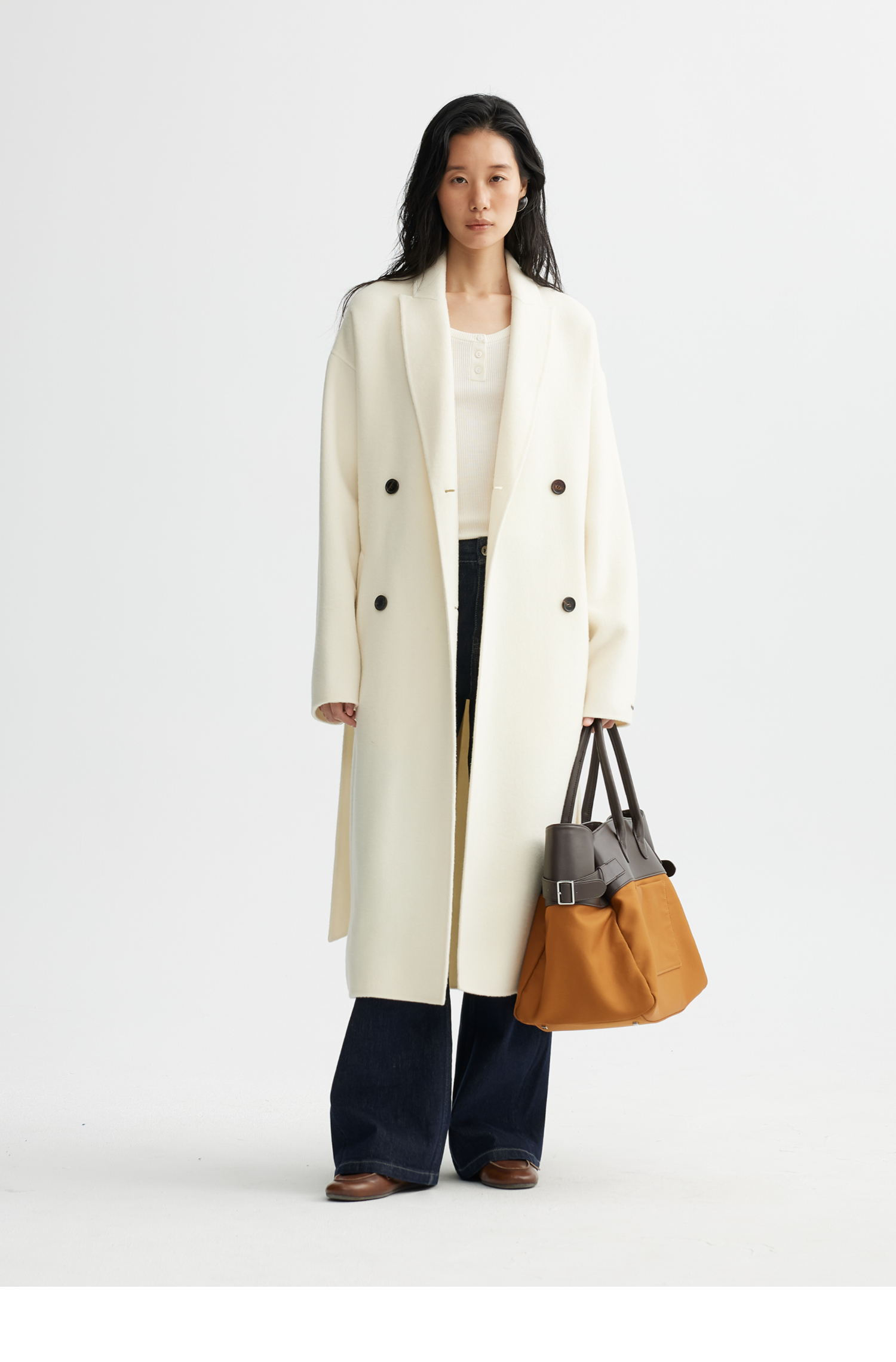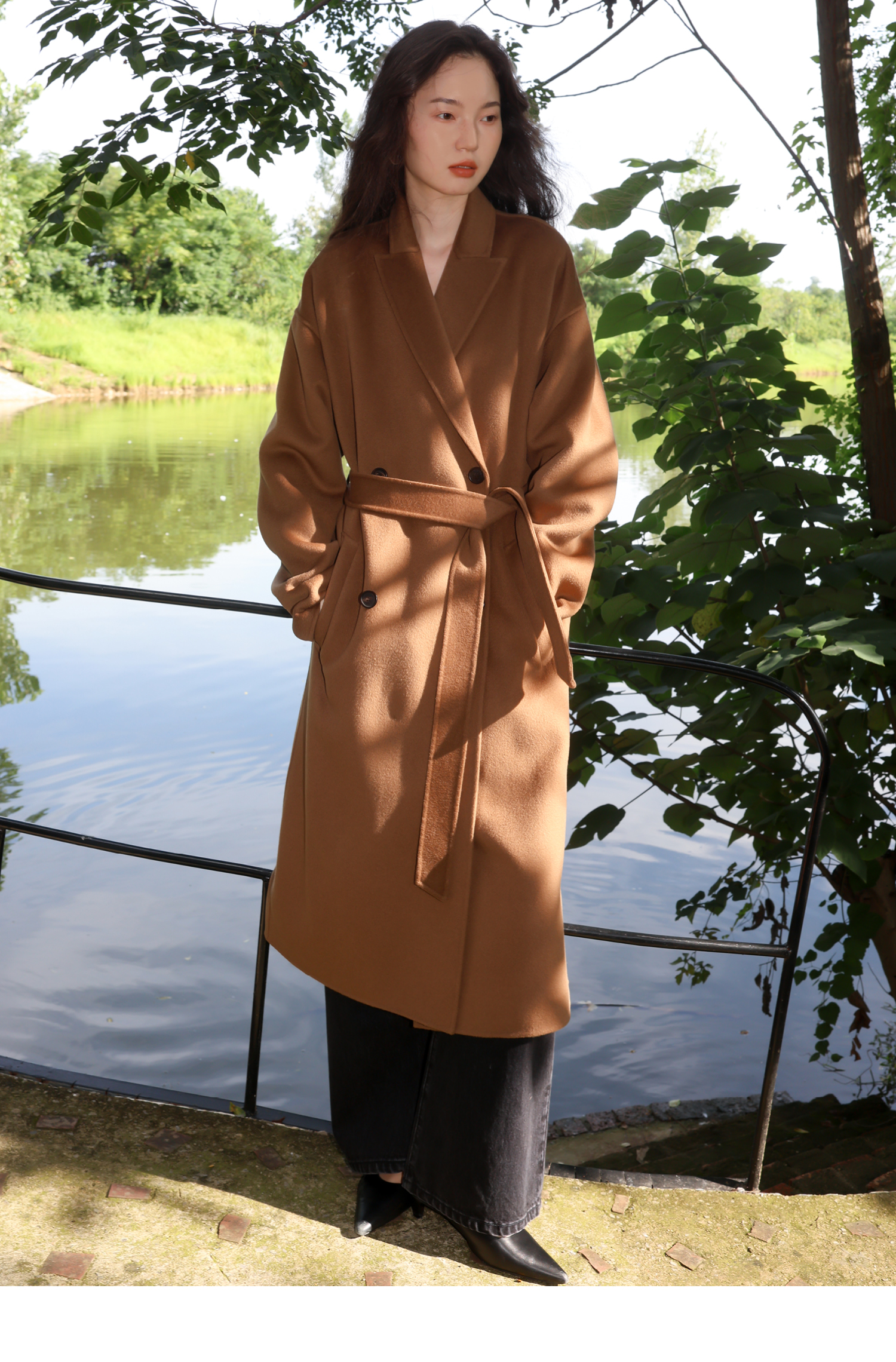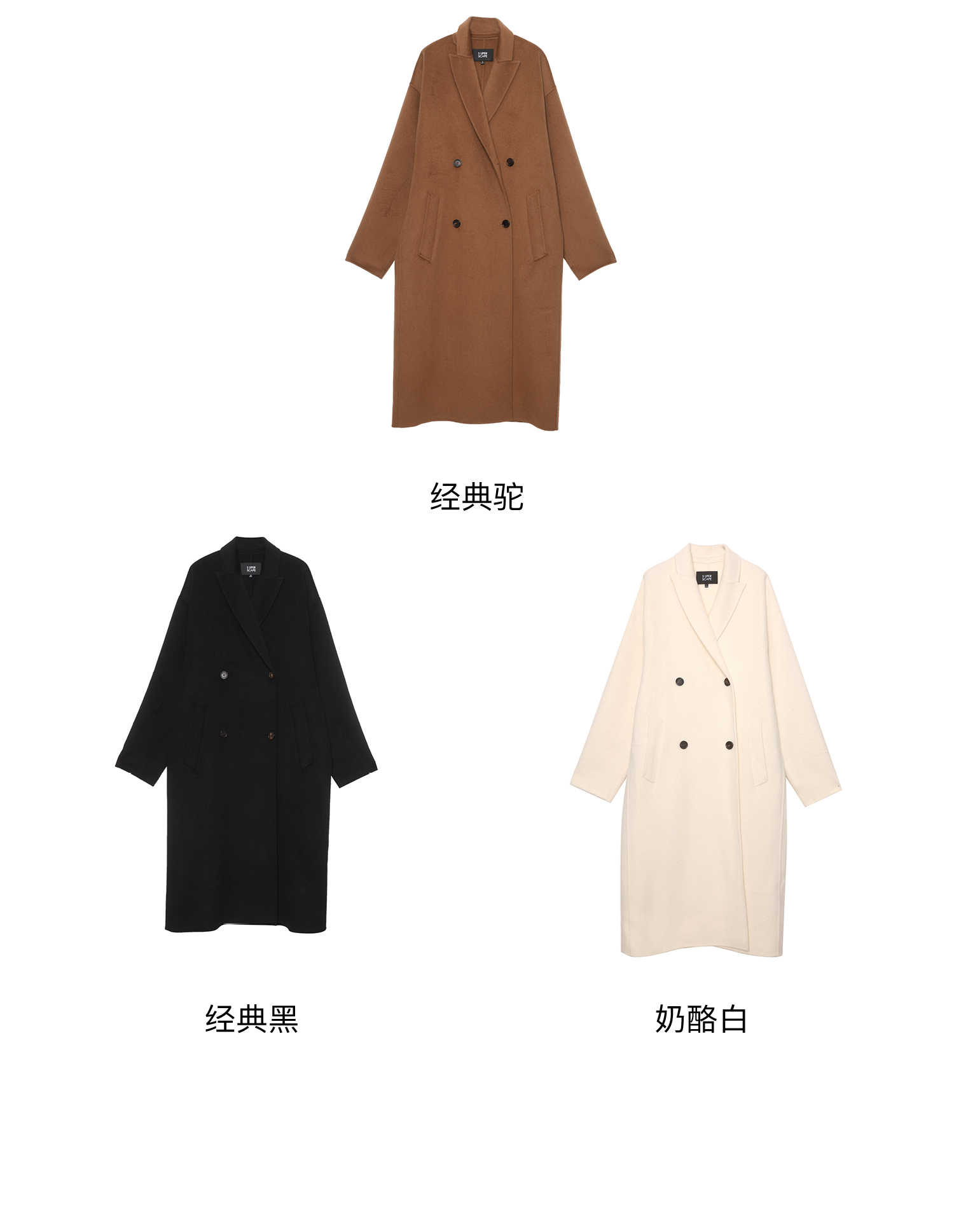 素舶 细支绵羊毛浴袍式长款双面呢大衣