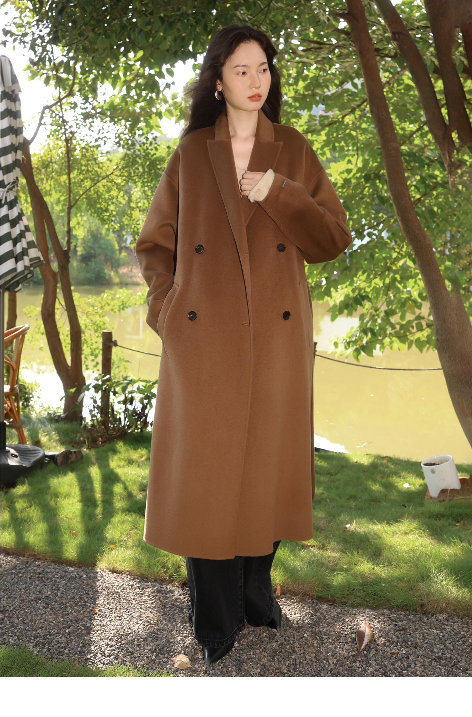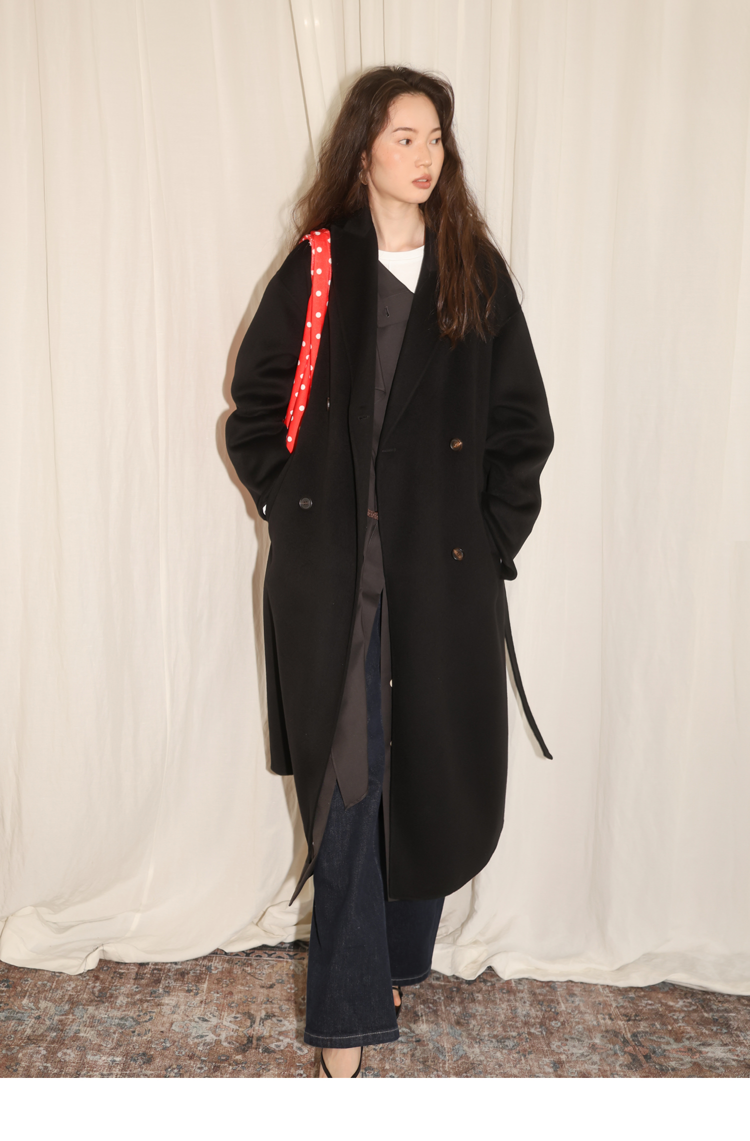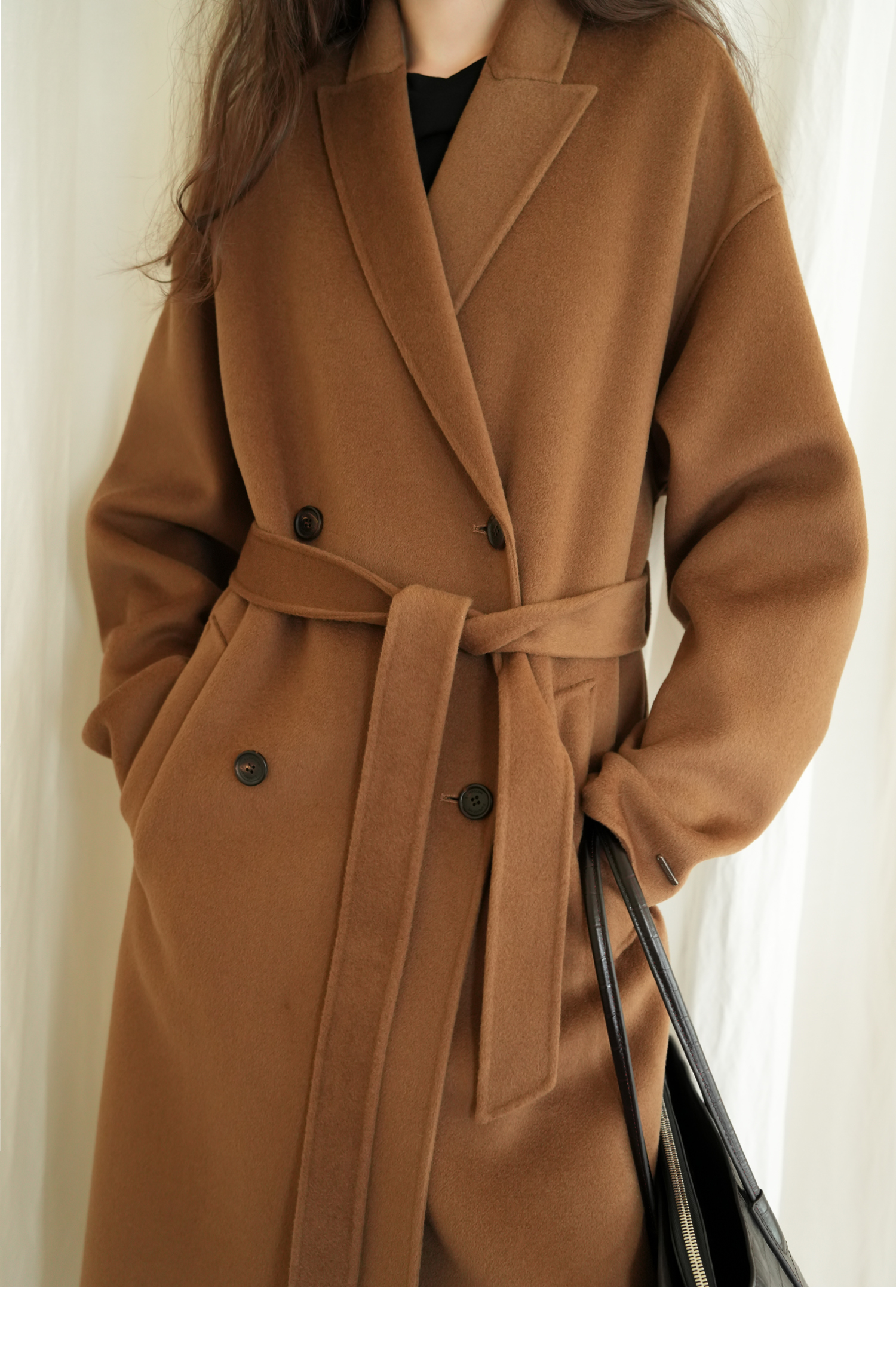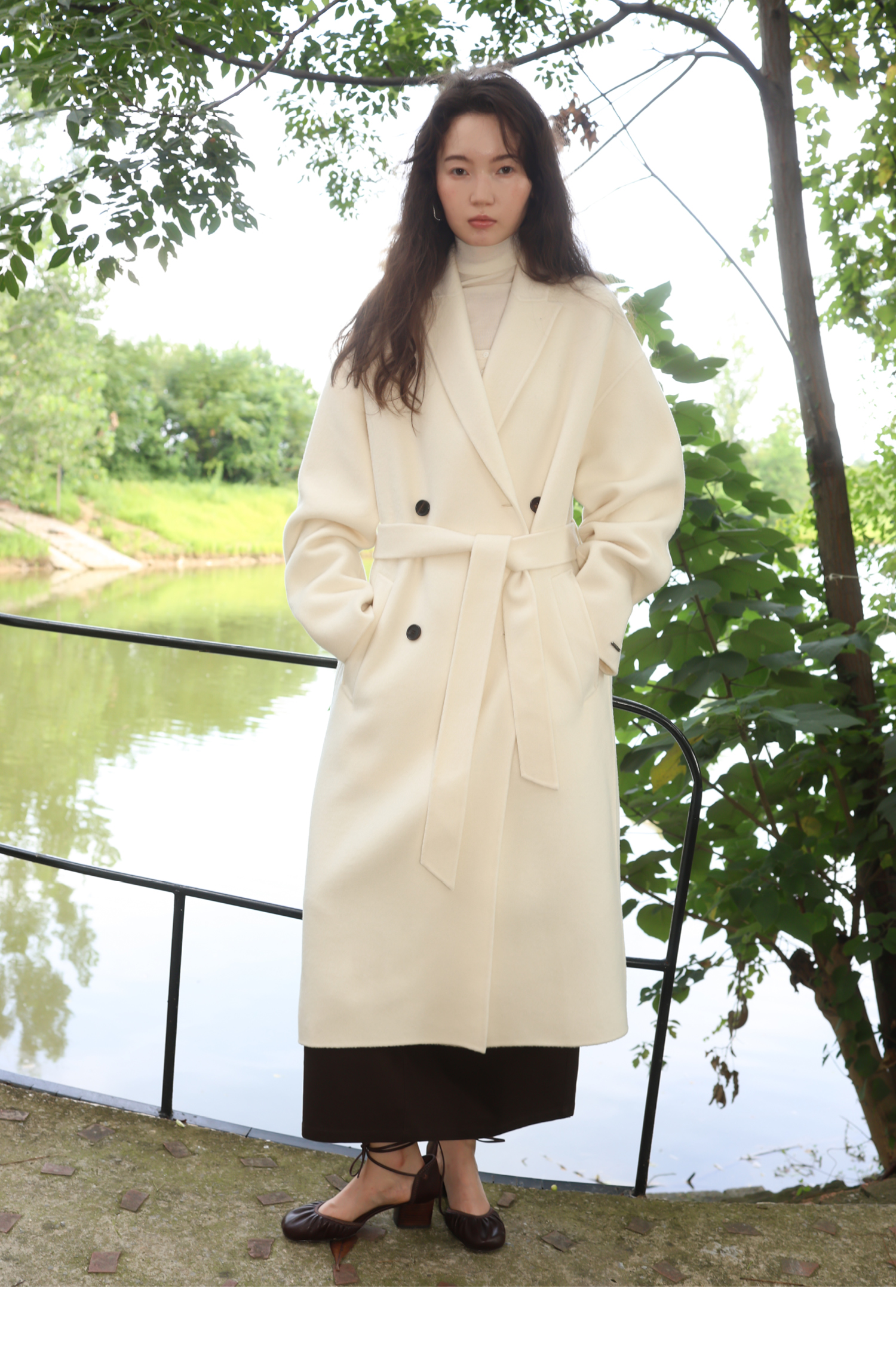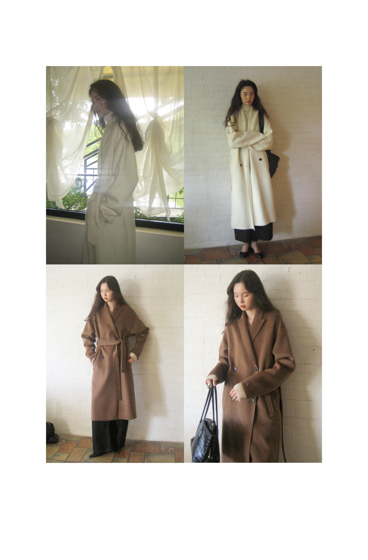 素舶 细支绵羊毛浴袍式长款双面呢大衣