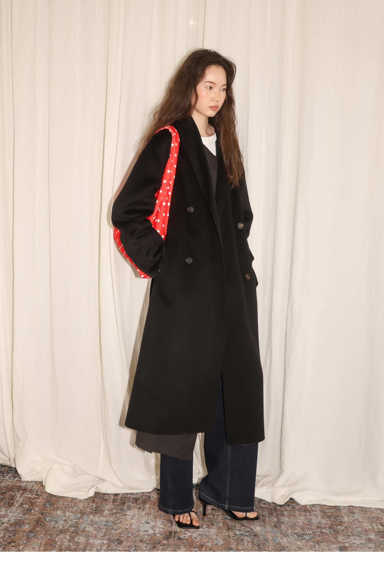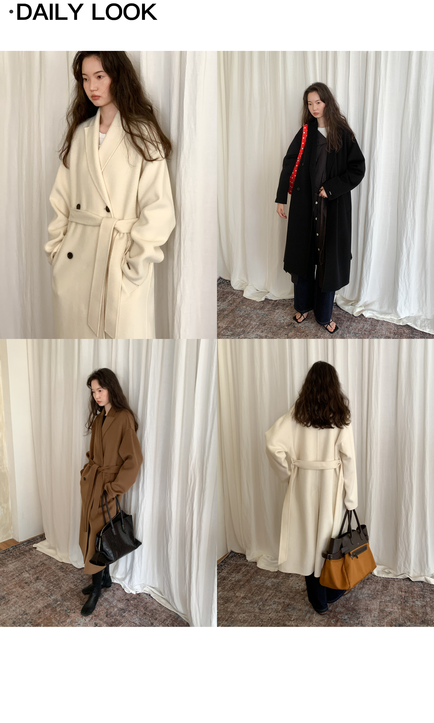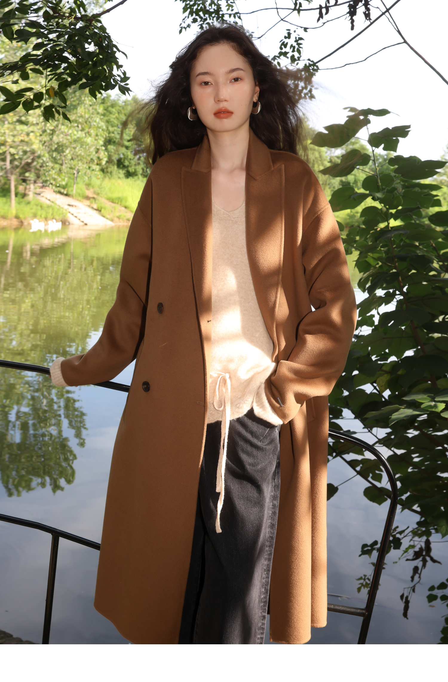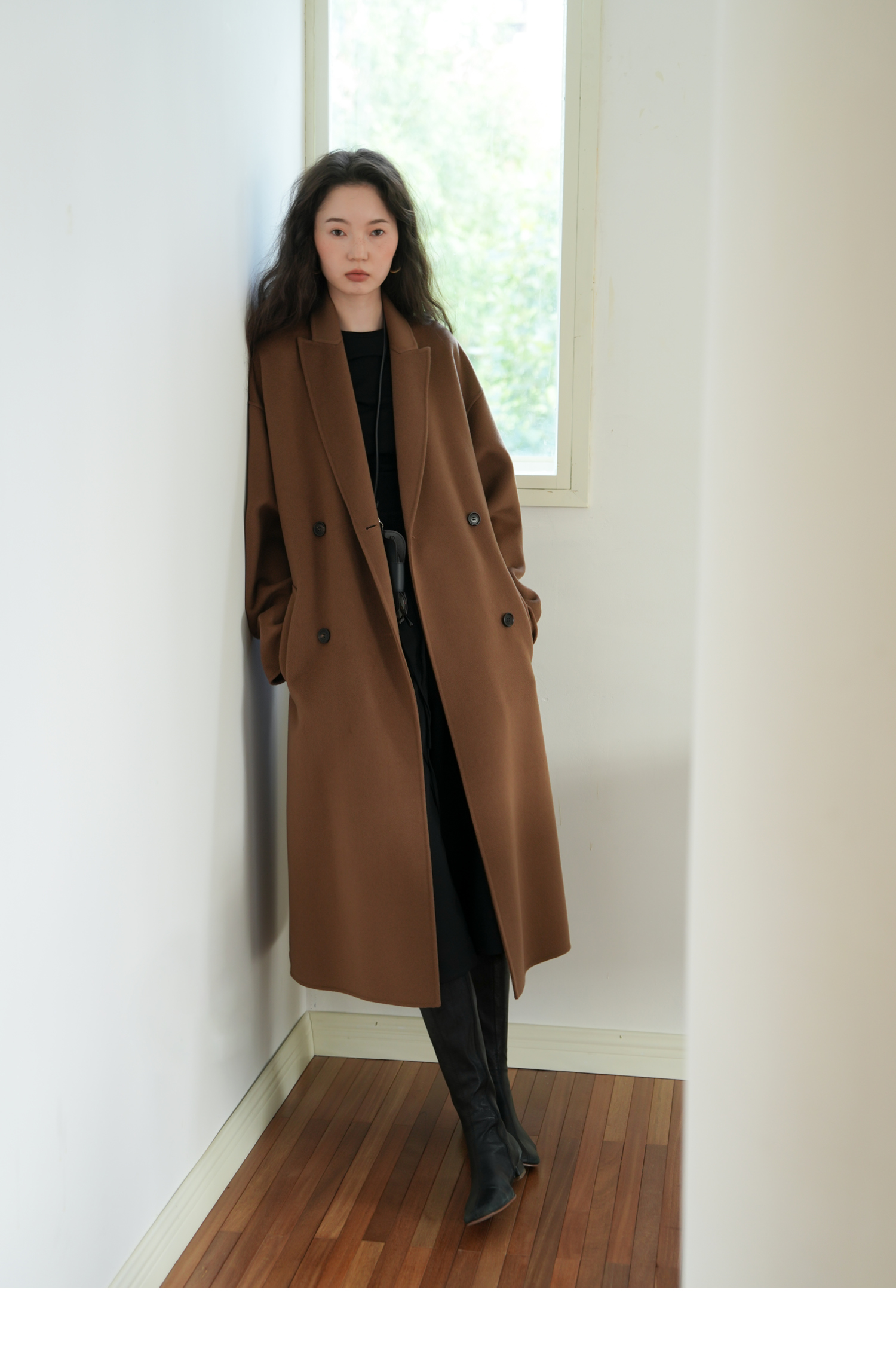 素舶 细支绵羊毛浴袍式长款双面呢大衣