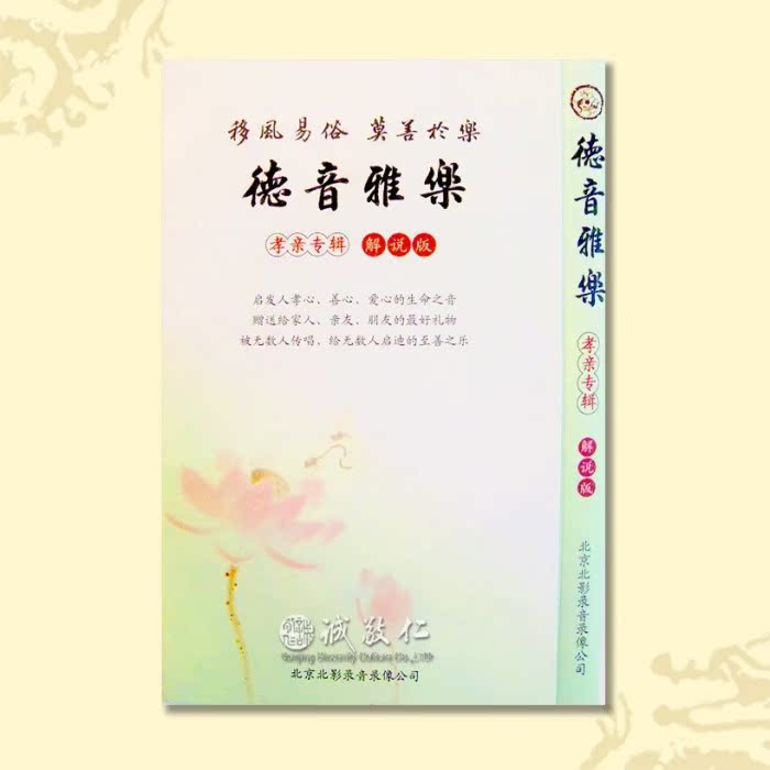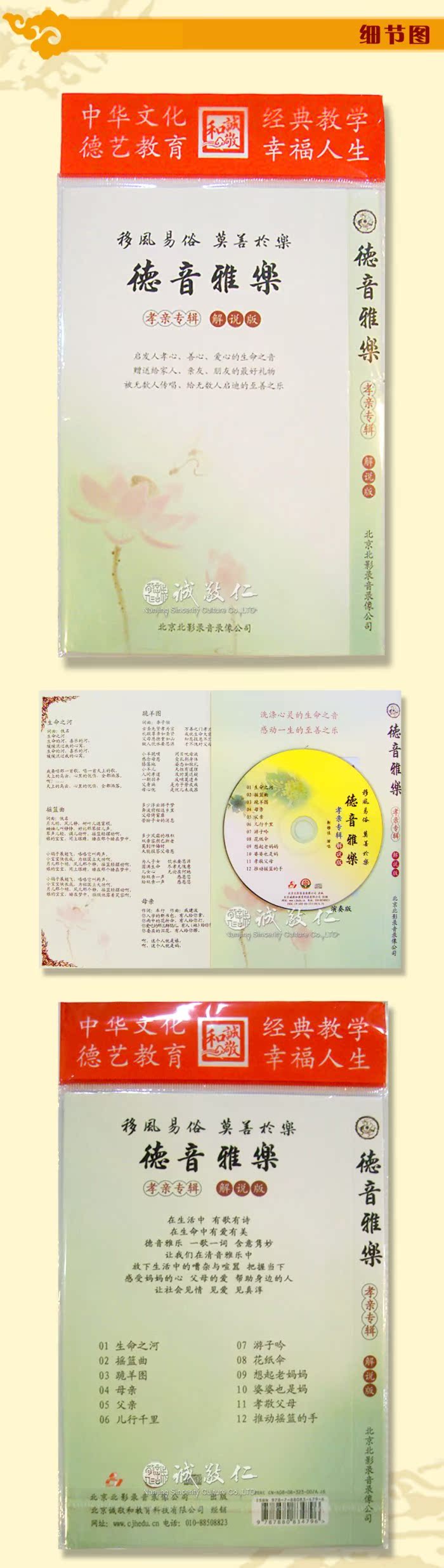 【基本信息】 产品名称:德音雅乐:孝亲专辑(解说版)(简装CD) 碟 片 数:1 介 质:CD 出 版 社:北京北影录音录像公司 I S R C :9787880834796 地 区:大陆 原 价:15元 特 价:10.5元,为您节省4.5元! 【产品文化】 启发人孝心、善心、爱心的生命之音 用途:赠送给家人、亲友、朋友的最好礼物(被无数人传唱、给无数人启迪的至善之道)。 【内容简介】 在生活中,有歌有诗,在生命中有爱有美,德音雅乐,一歌一词,含意隽妙,让我们在清音雅乐中放下生活中的嘈杂与喧嚣,把握当下,感受妈妈的心,父母的爱,帮助身边的人,让社会见情,见爱,见真淳。 在生活中,有歌有诗,在生命中有爱有美,德音雅乐,一歌一词,含意隽妙,让我们在清音雅乐中放下生活中的嘈杂与喧嚣,把握当下,感受妈妈的心,父母的爱,帮助身边的人,让社会见情,见爱,见真淳。 【编辑推荐】 启发人孝心、善心、爱心的生命之音,赠送给家人、亲友、朋友的最好礼物,被无数人传唱、给无数人启迪的至善之乐。 【目 录】: 01生命之河 02摇篮曲 03跪羊图 04母亲 05父亲 06儿行千里 07游子吟 08花纸伞 09想起老妈妈 10婆婆也是妈妈 11孝敬父母 12推动摇篮的手 |