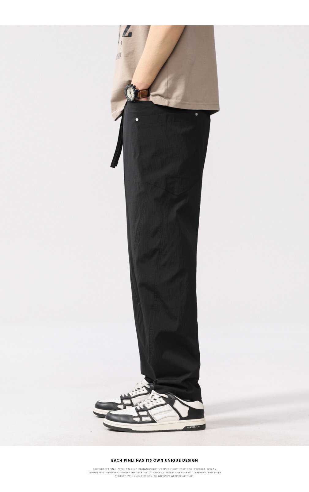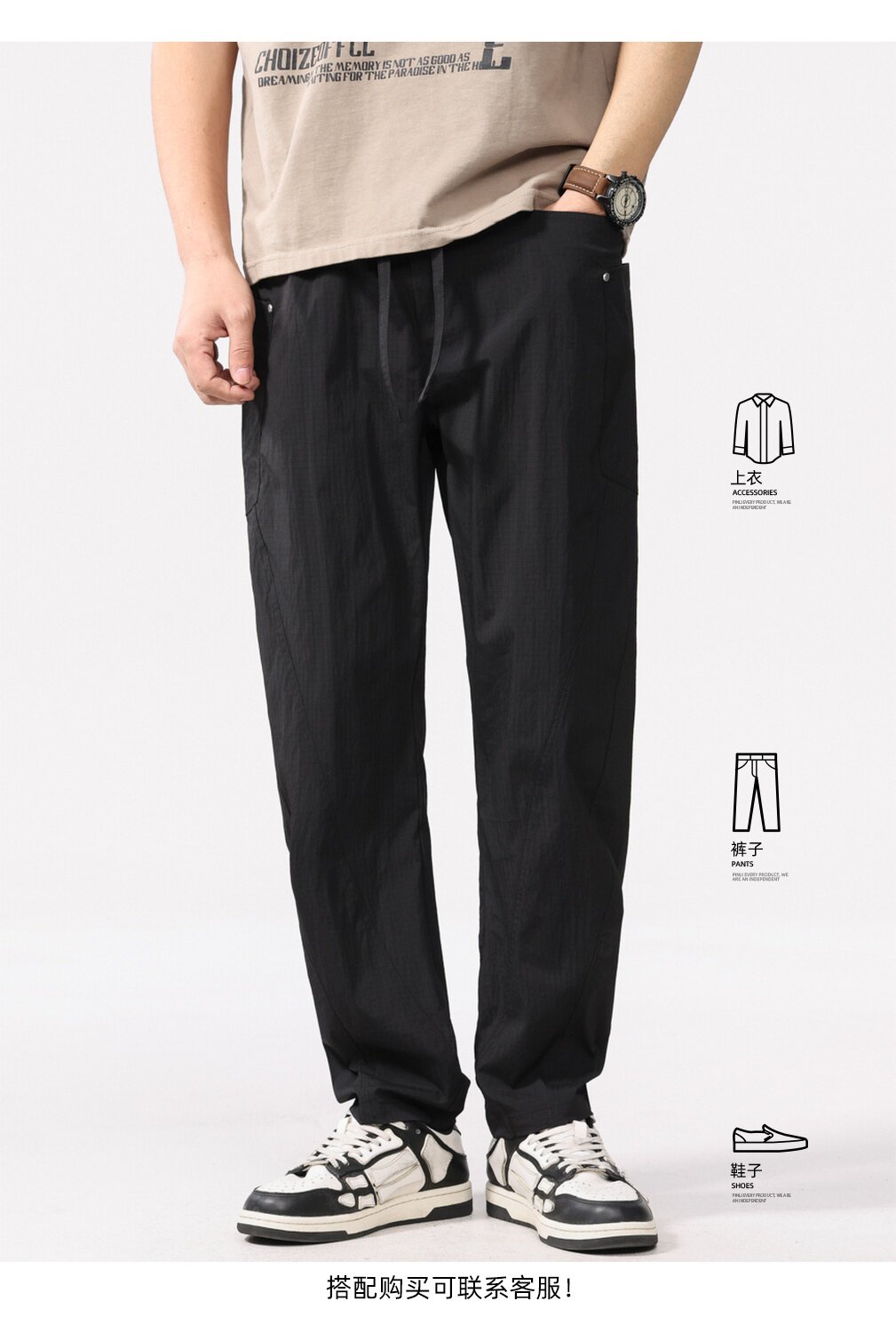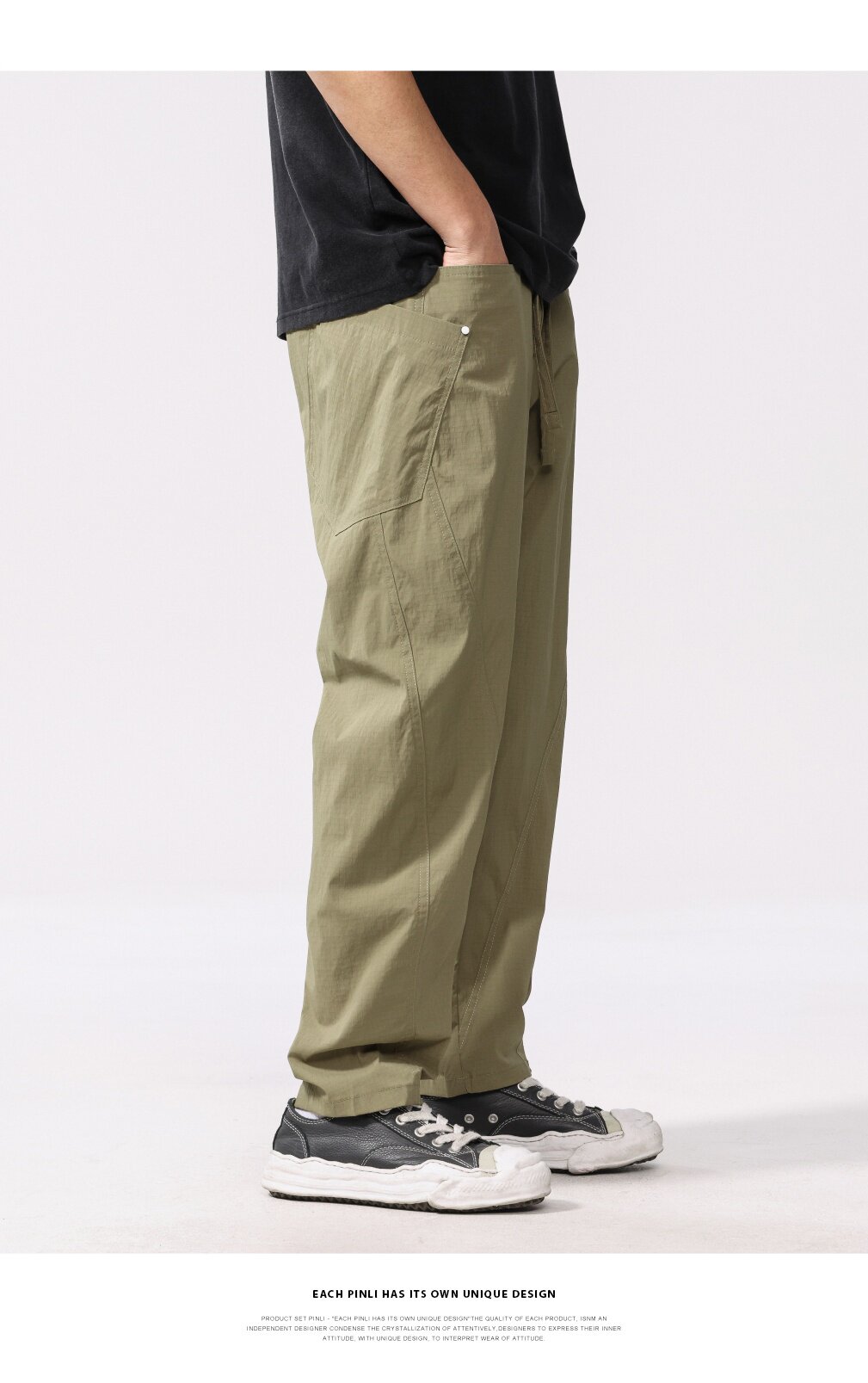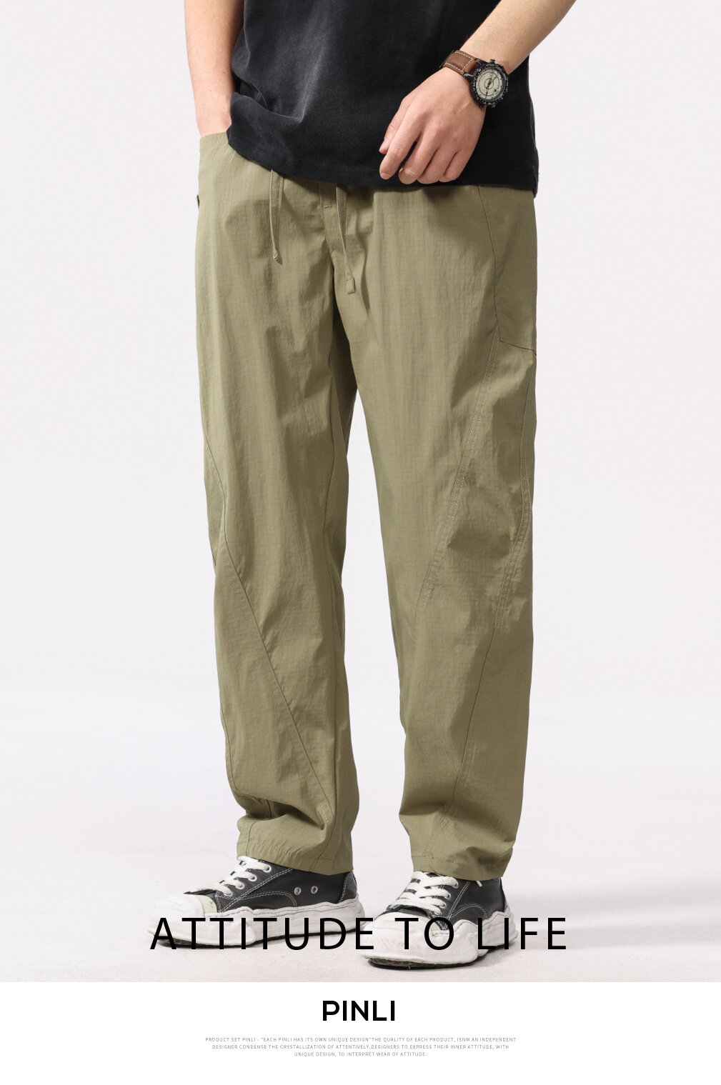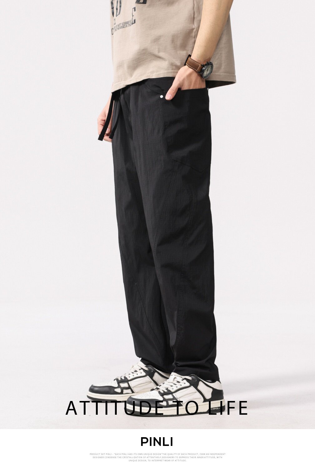PINLI品立2026春季新款男纯色百搭松紧腰直筒休闲长裤GD262117034