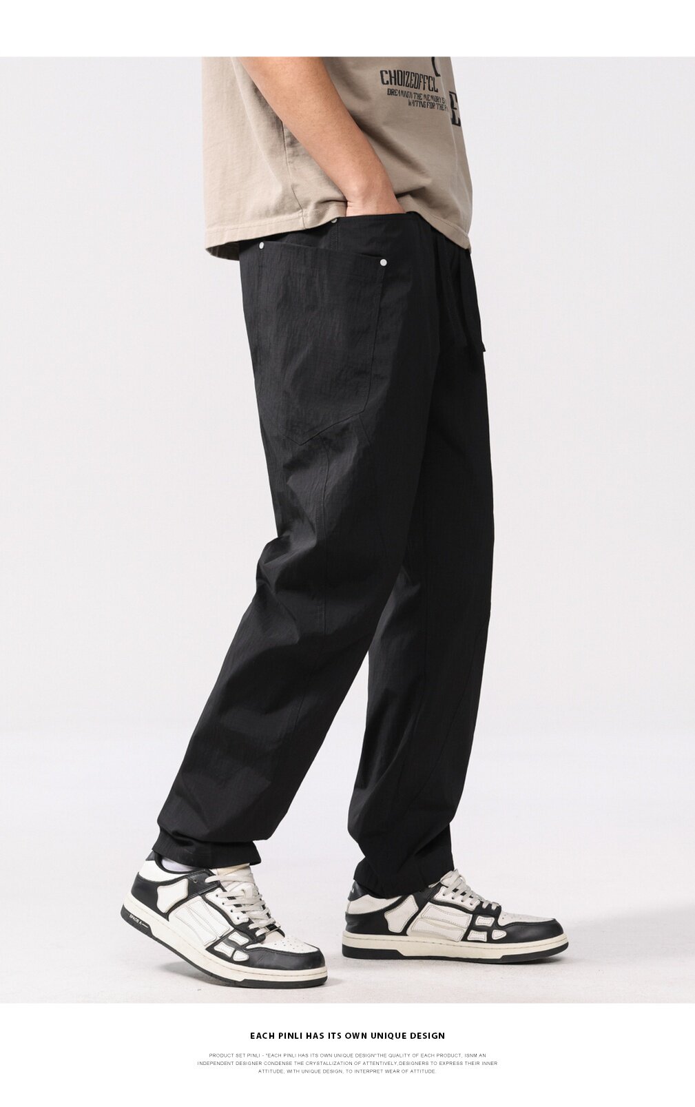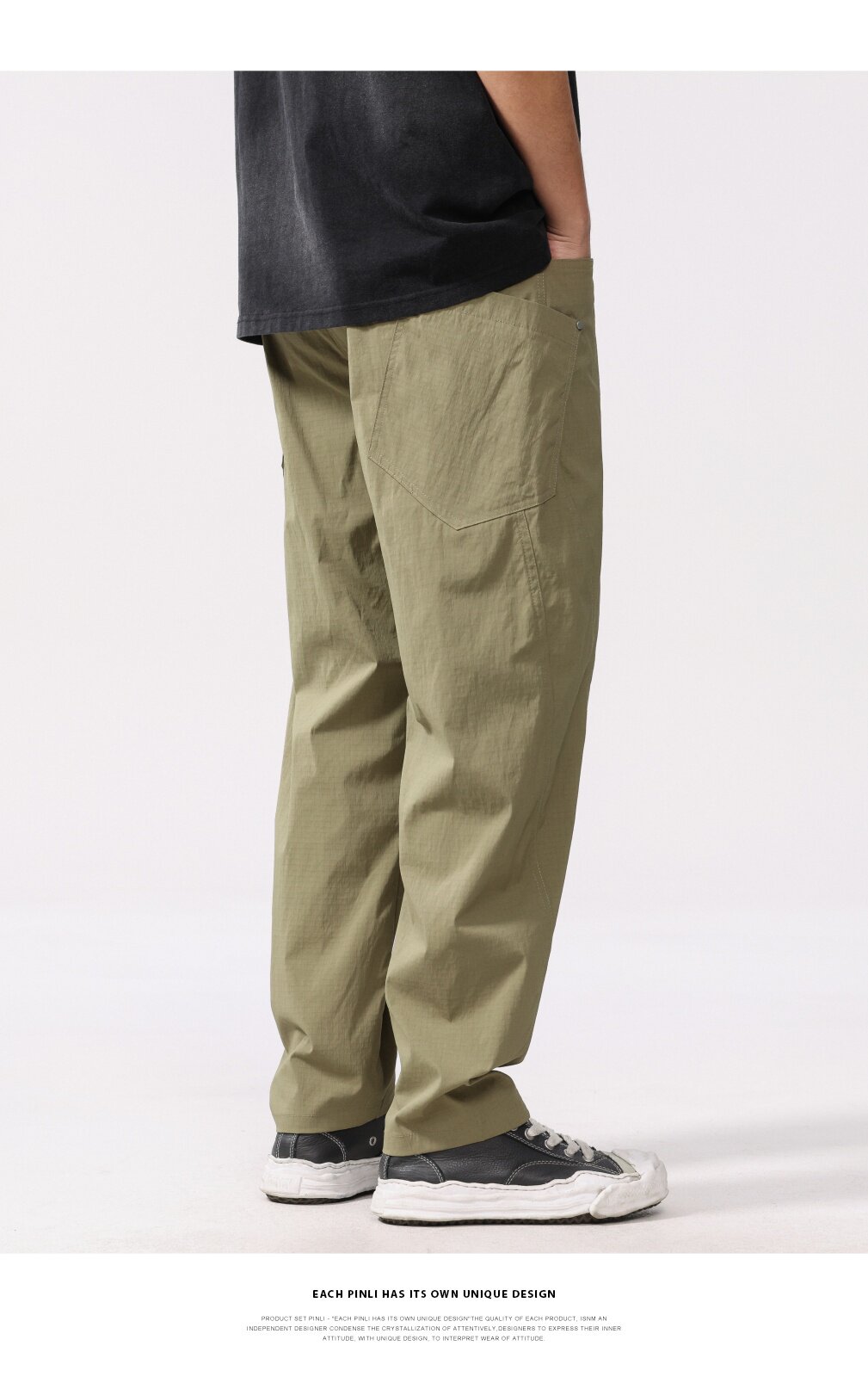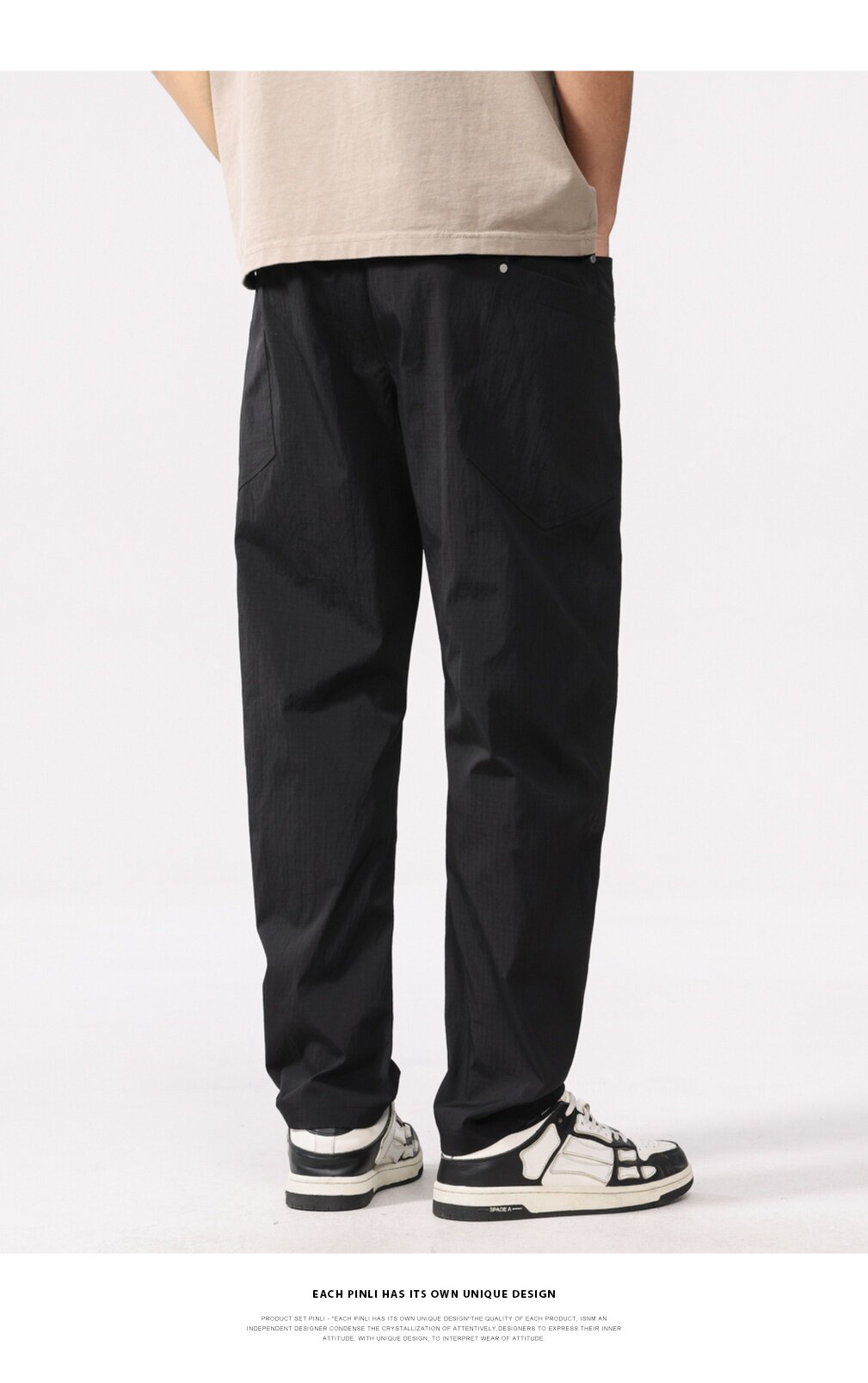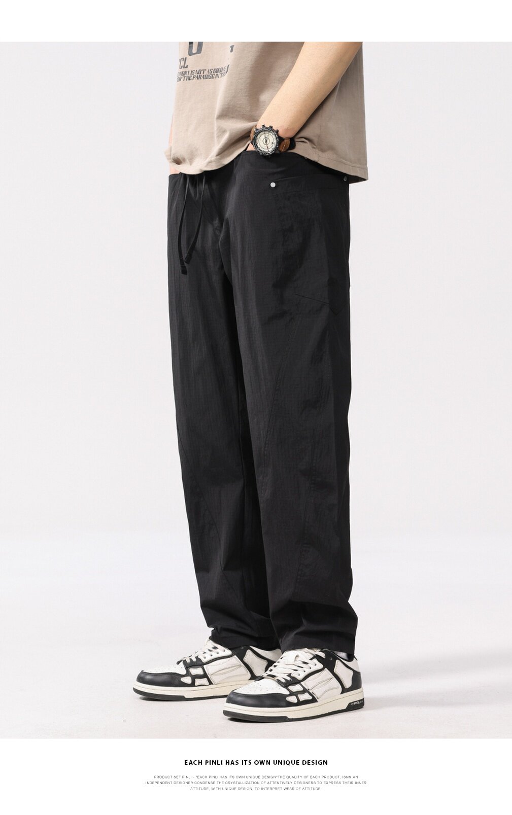 PINLI品立2026春季新款男纯色百搭松紧腰直筒休闲长裤GD262117034