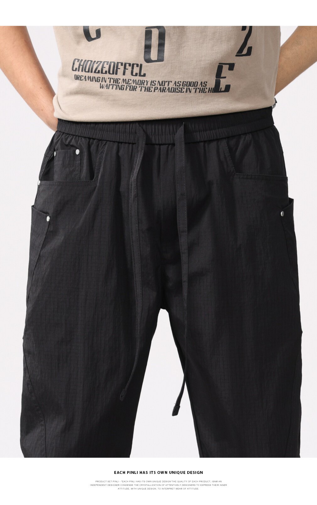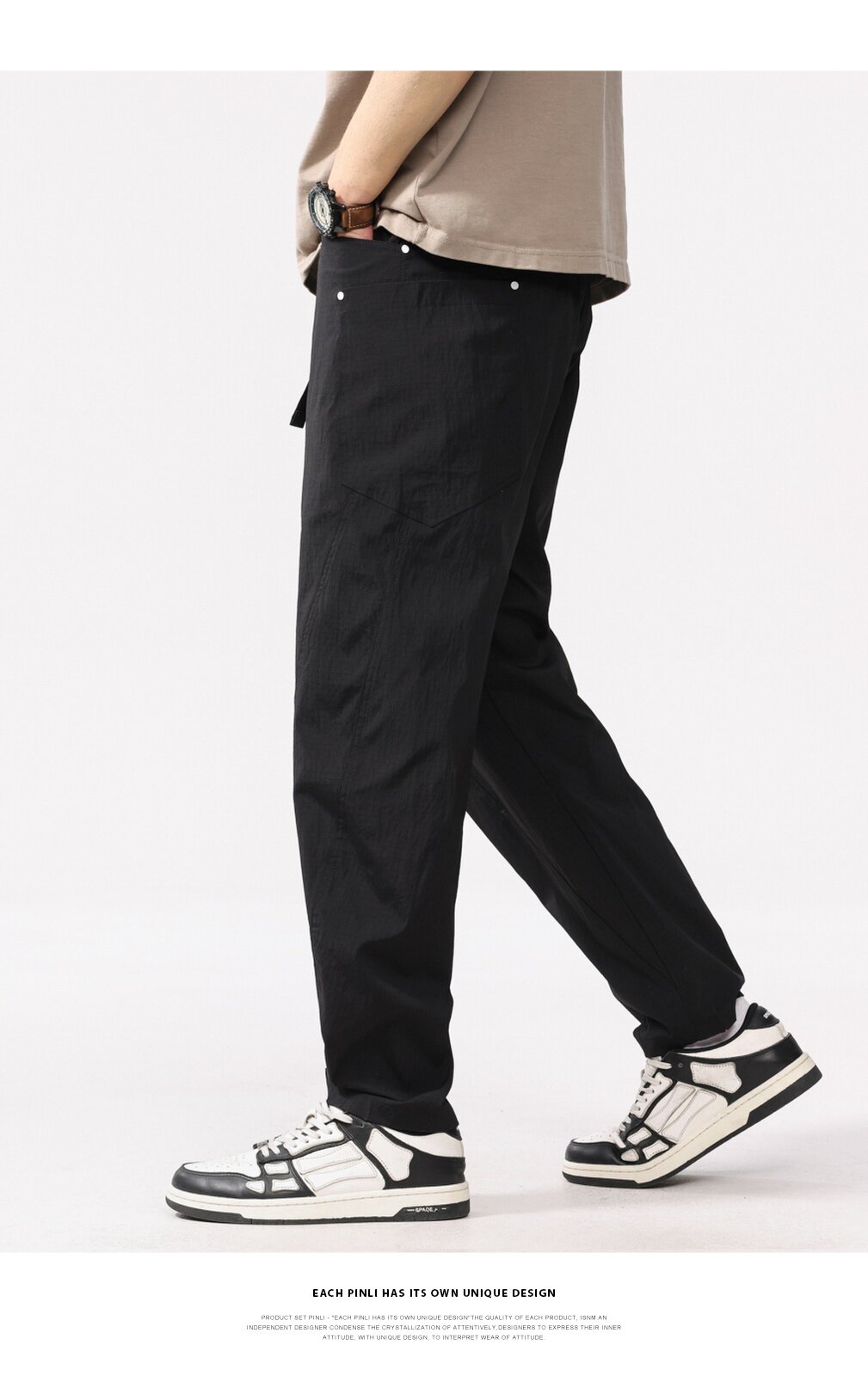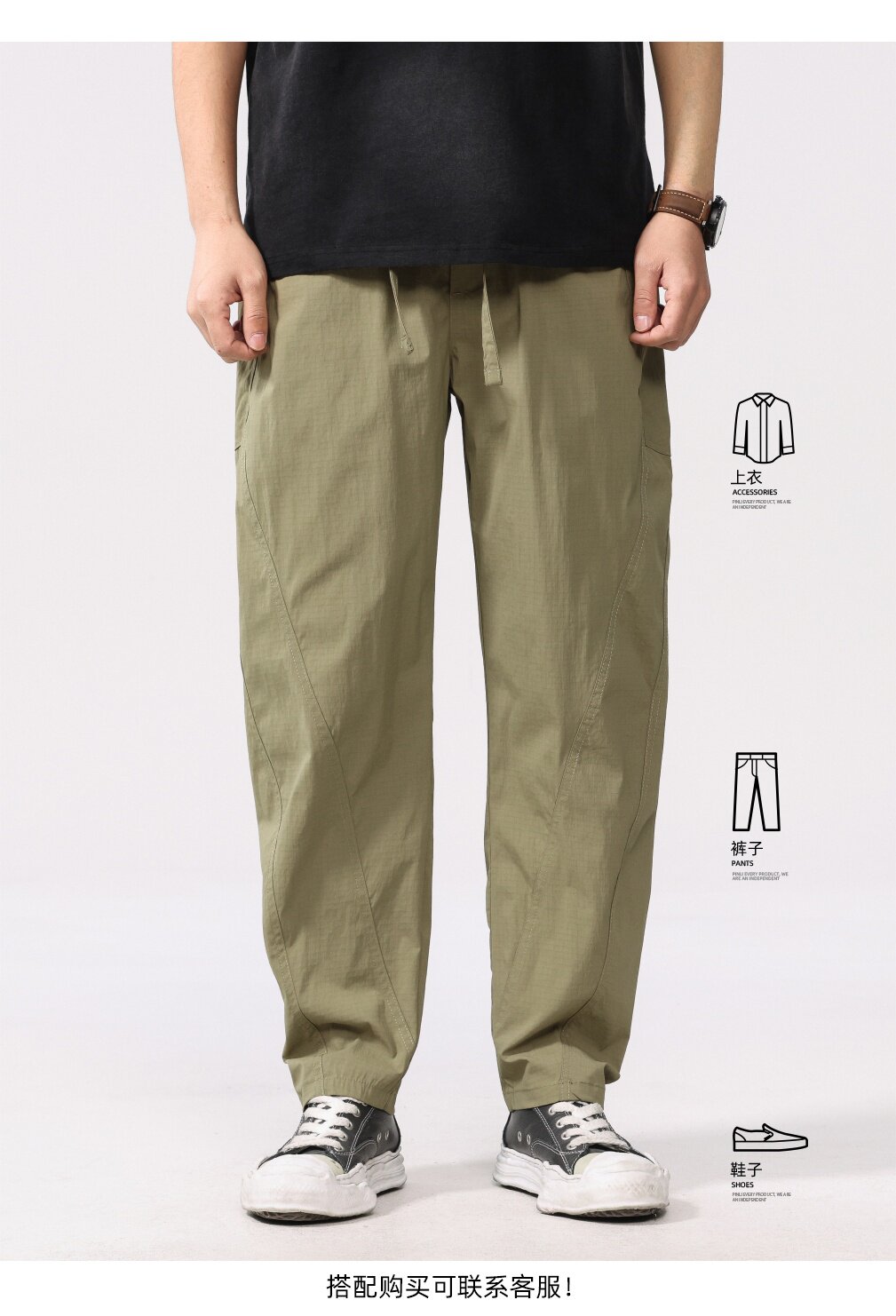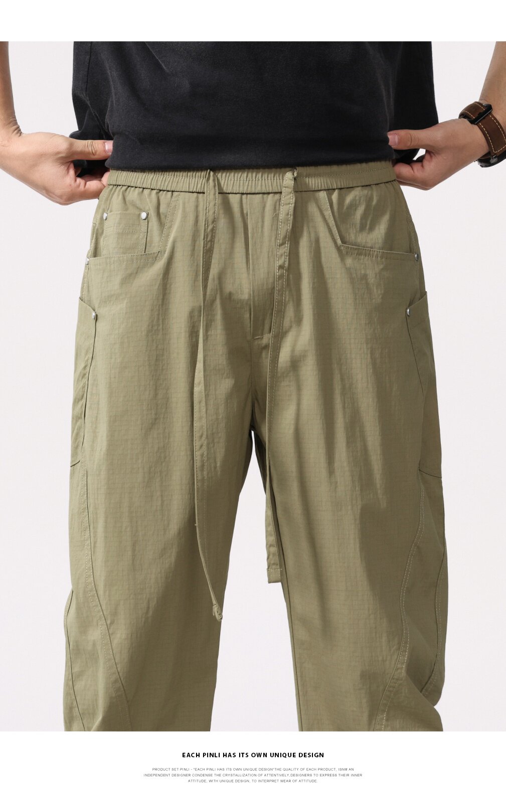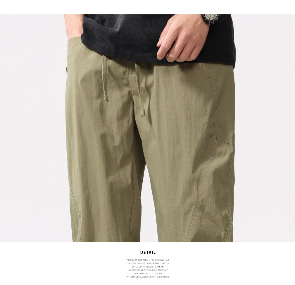 PINLI品立2026春季新款男纯色百搭松紧腰直筒休闲长裤GD262117034