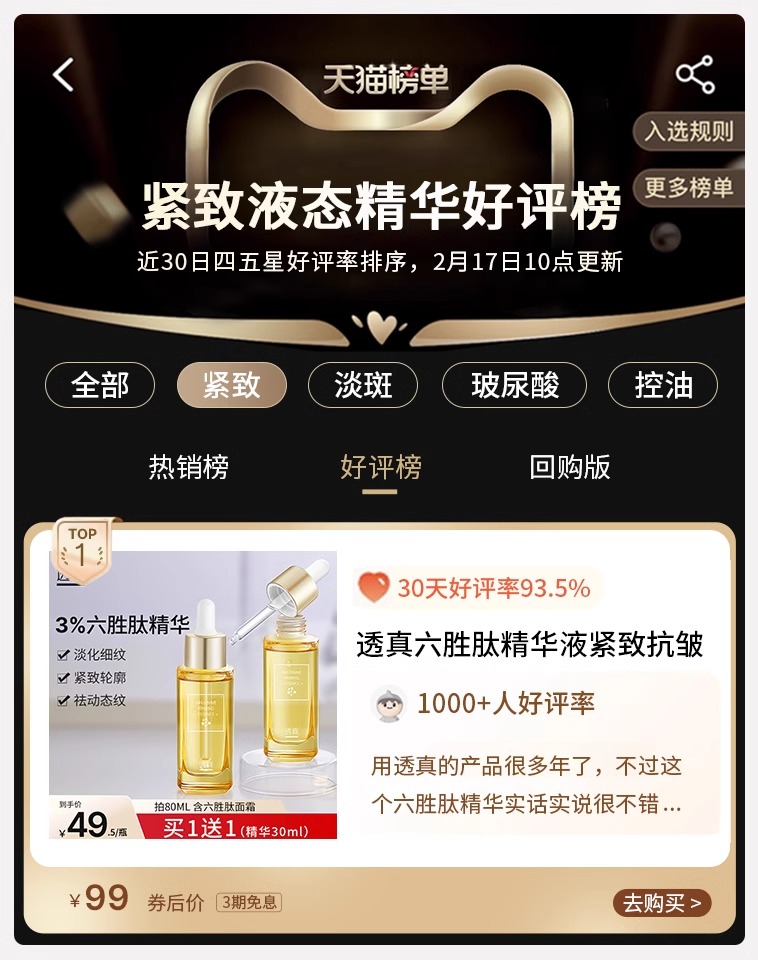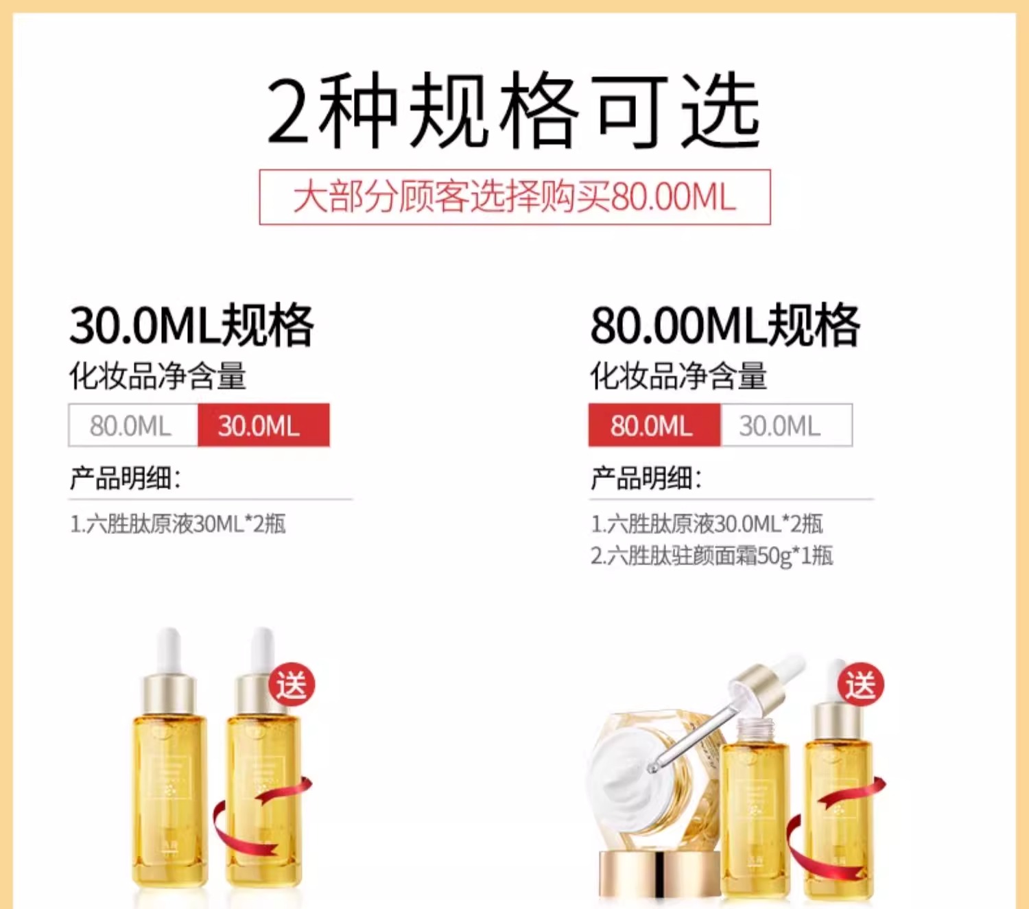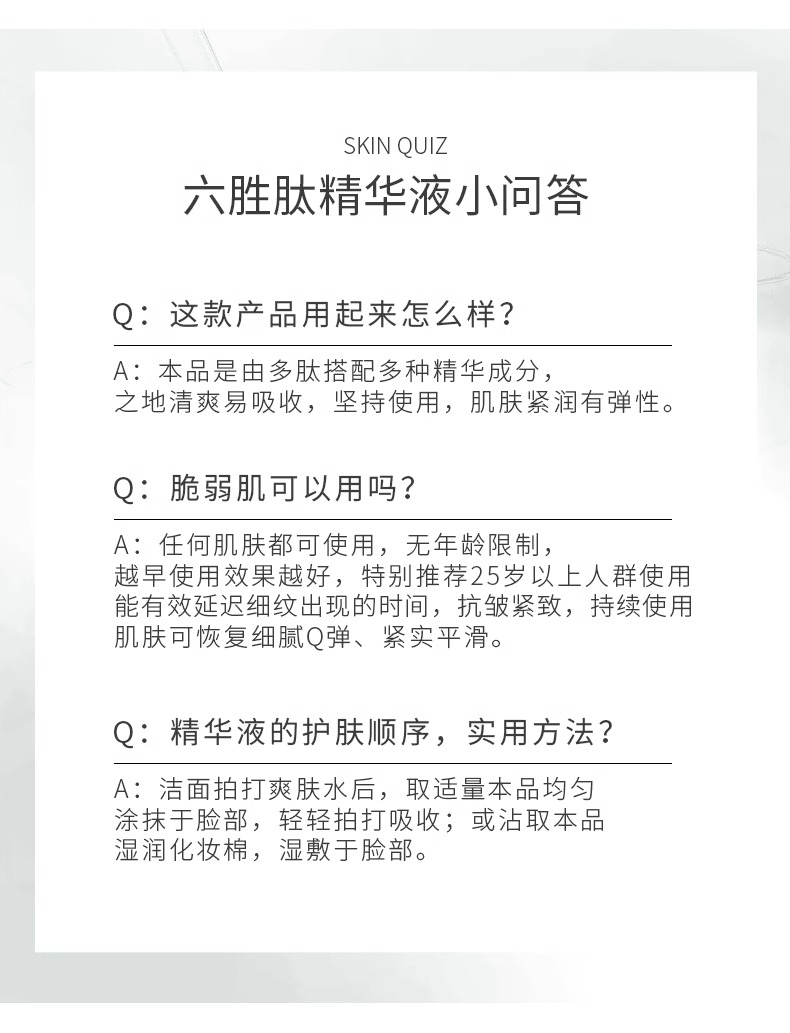 【紧致上扬 年轻不见纹】六胜肽紧致精华液 30ml#六胜肽精华液提拉紧致脸部肌肤浓缩精华原液护肤女淡化细纹