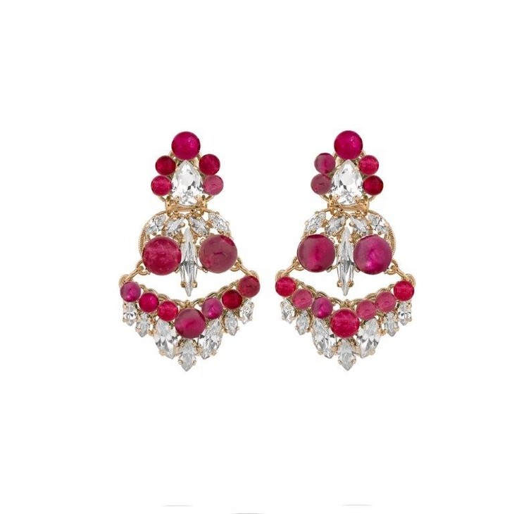 此款耳环镶嵌了石榴石英和施华洛世奇水晶。