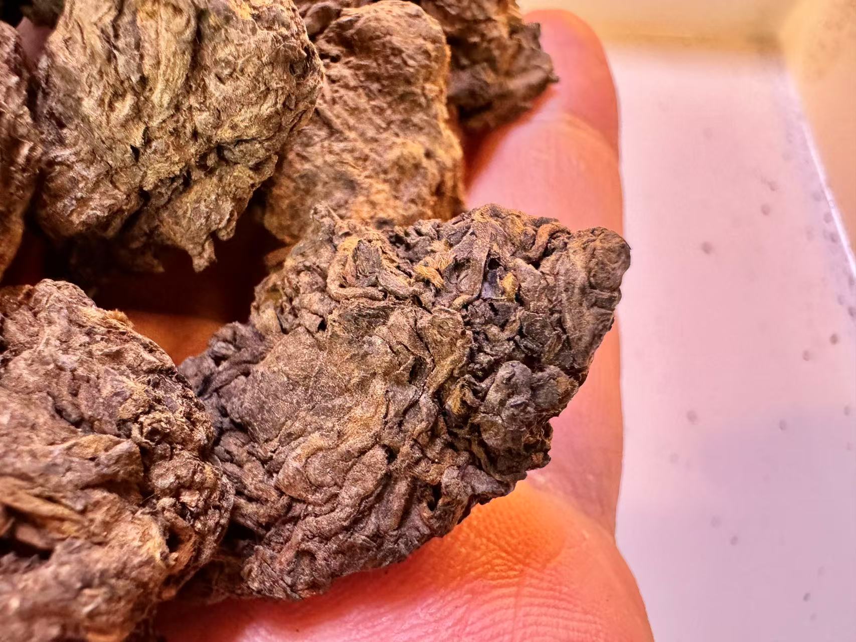 因为是老茶头,所以凝结成块的都是芽头为主,大家细看就能发现;