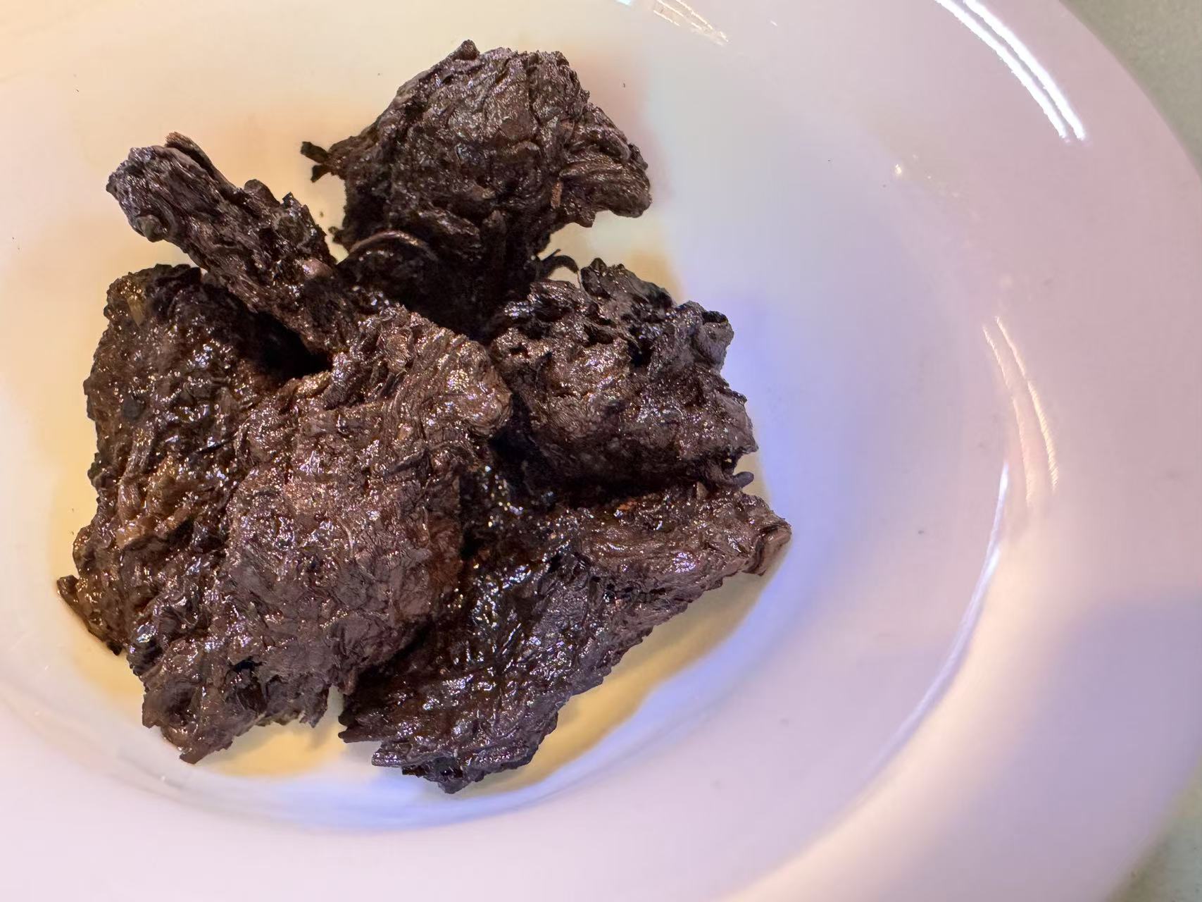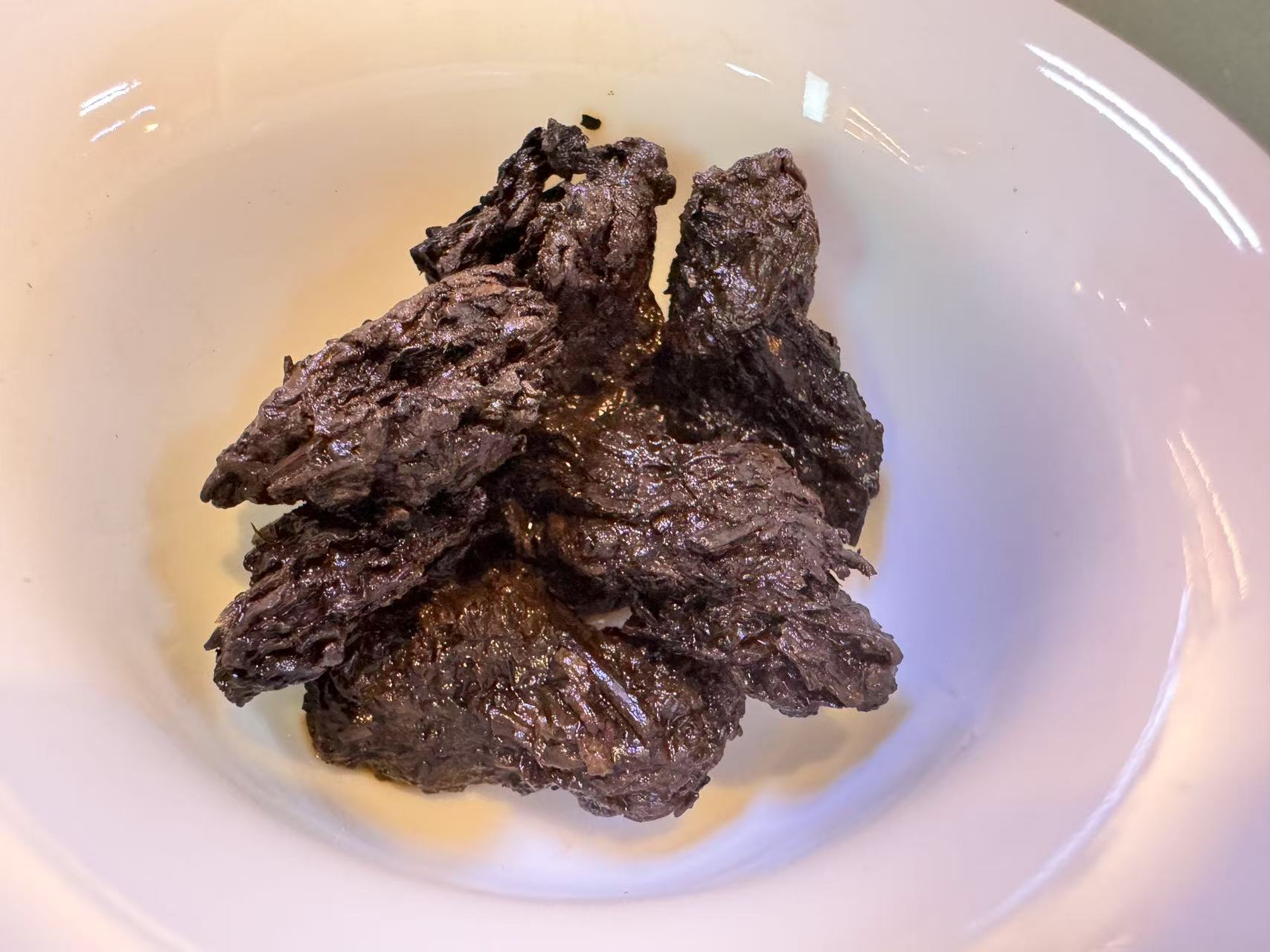 汤色如上,滋味醇厚,带有一定的粘稠感,入口厚重感明显,汤中有一种聚而不散的紧实感。