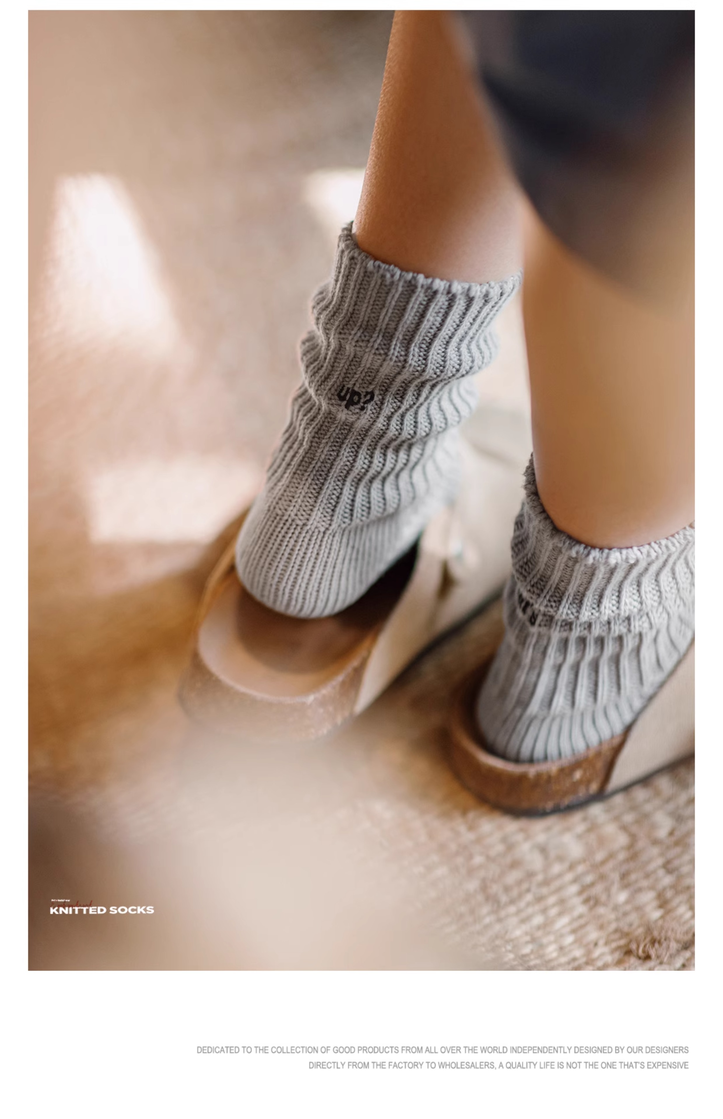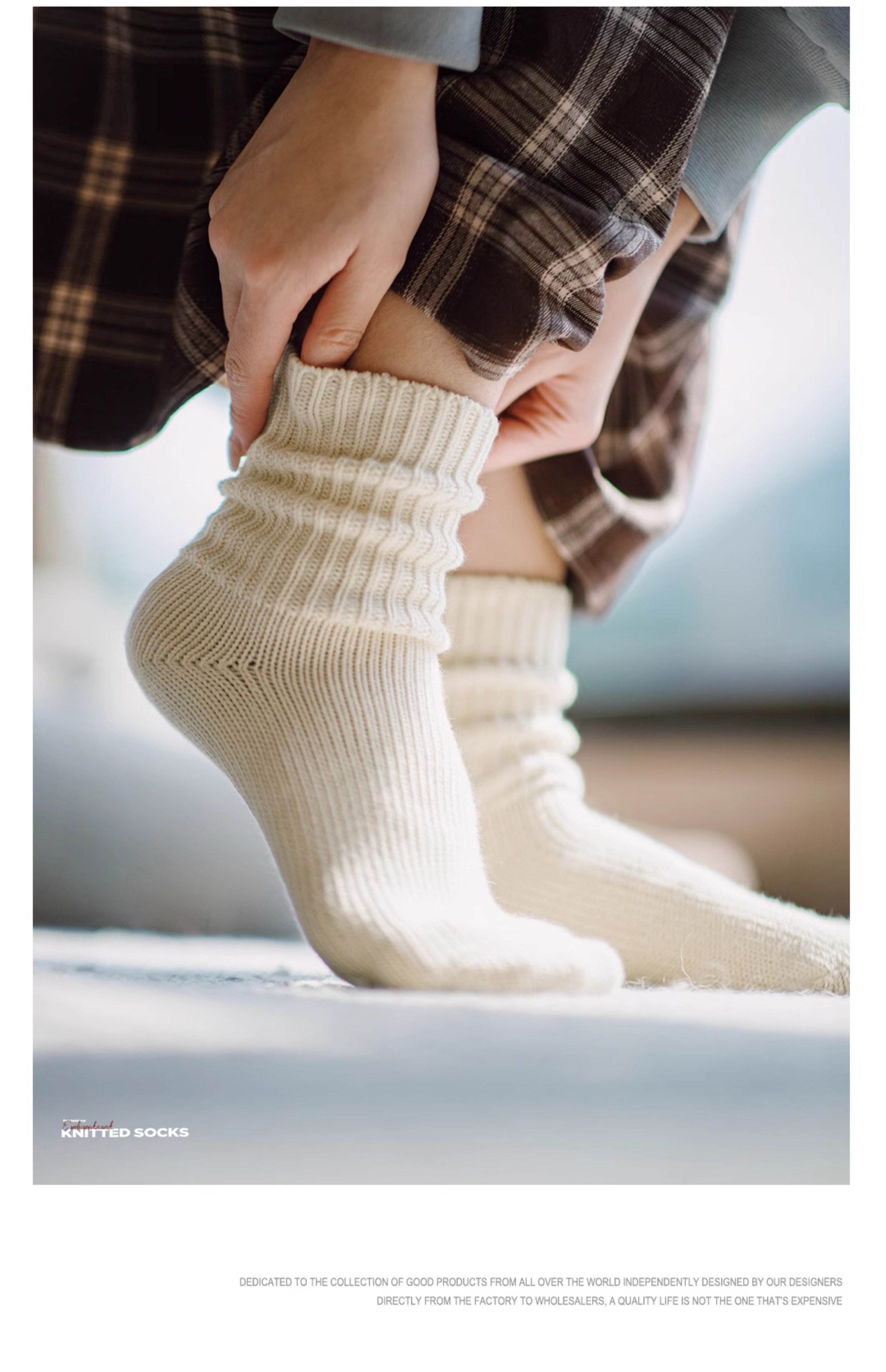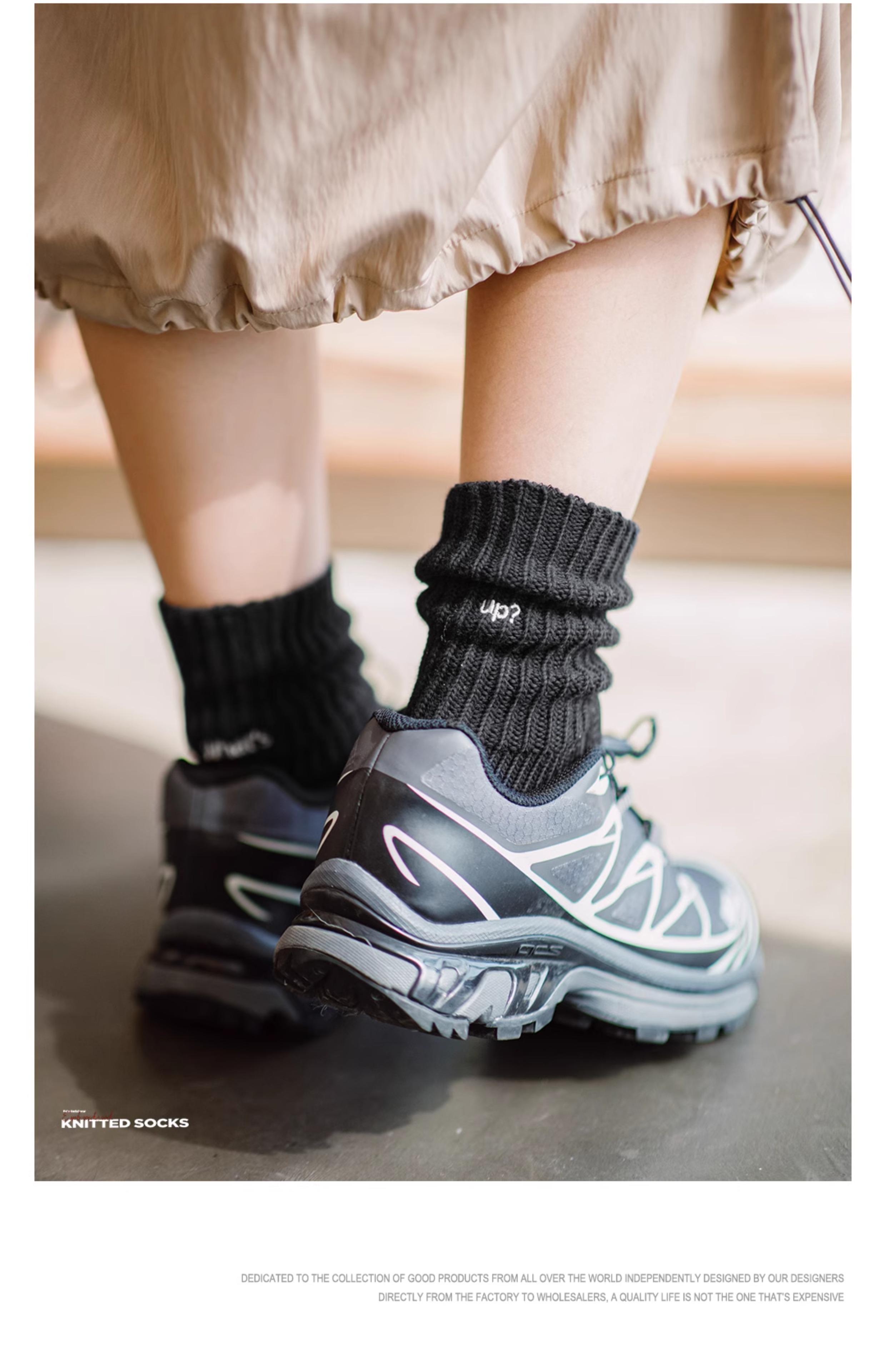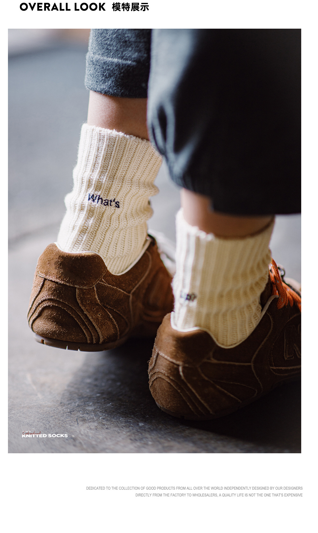 马登粗线刺绣针织袜复古堆堆袜子中筒毛线袜配穆勒鞋秋冬长袜女