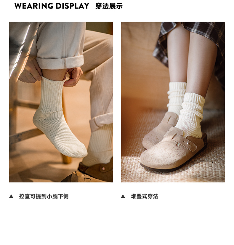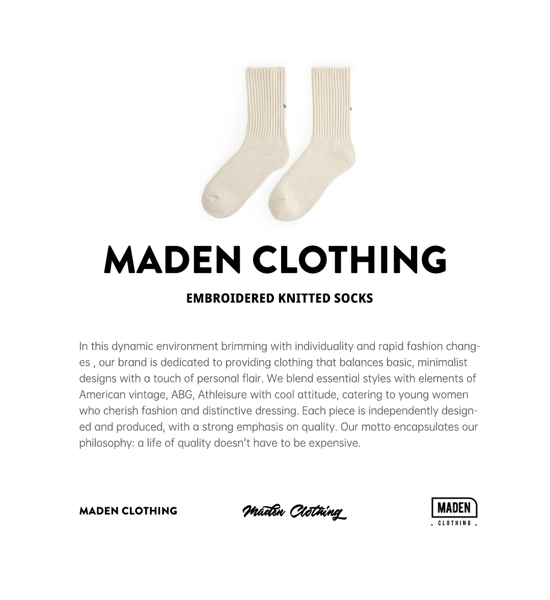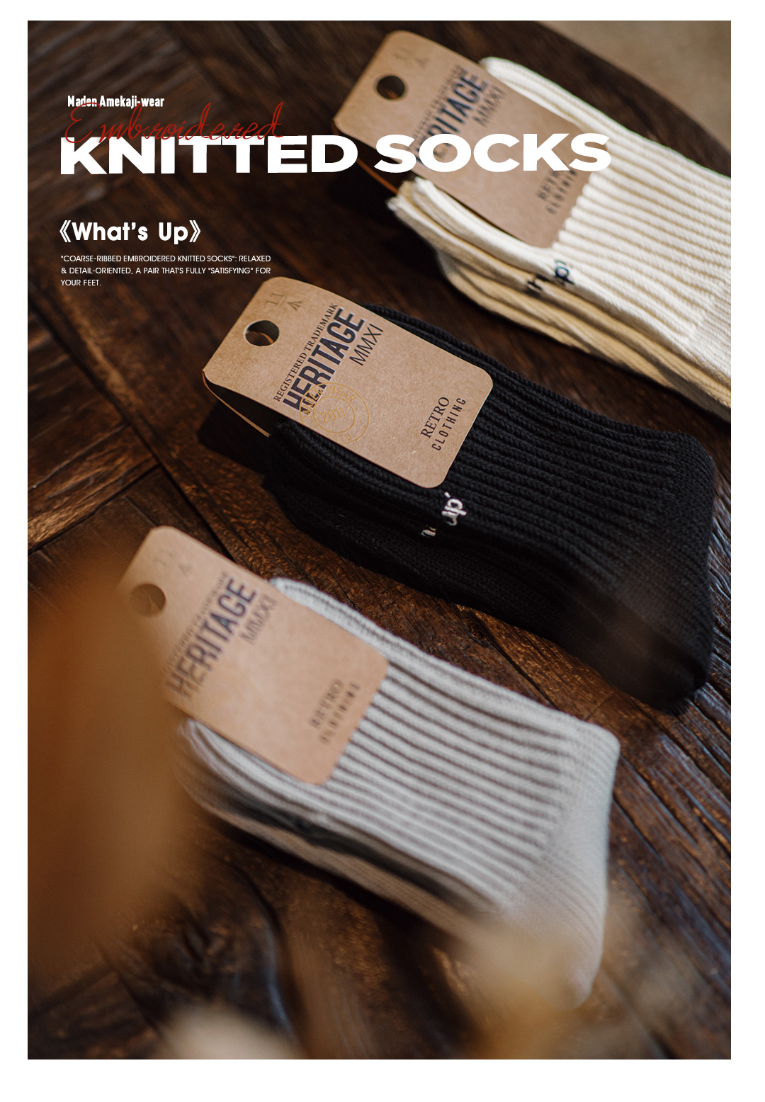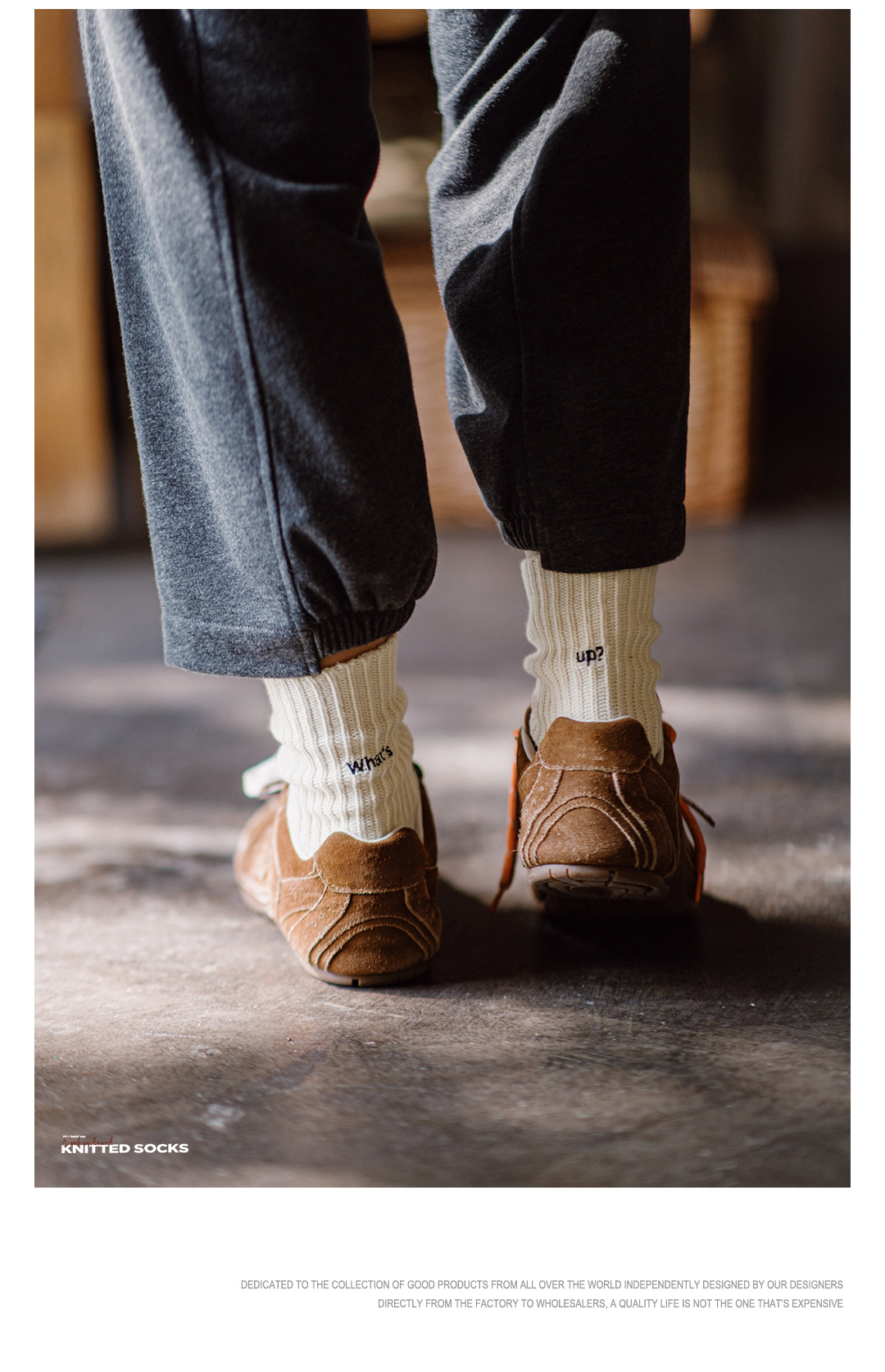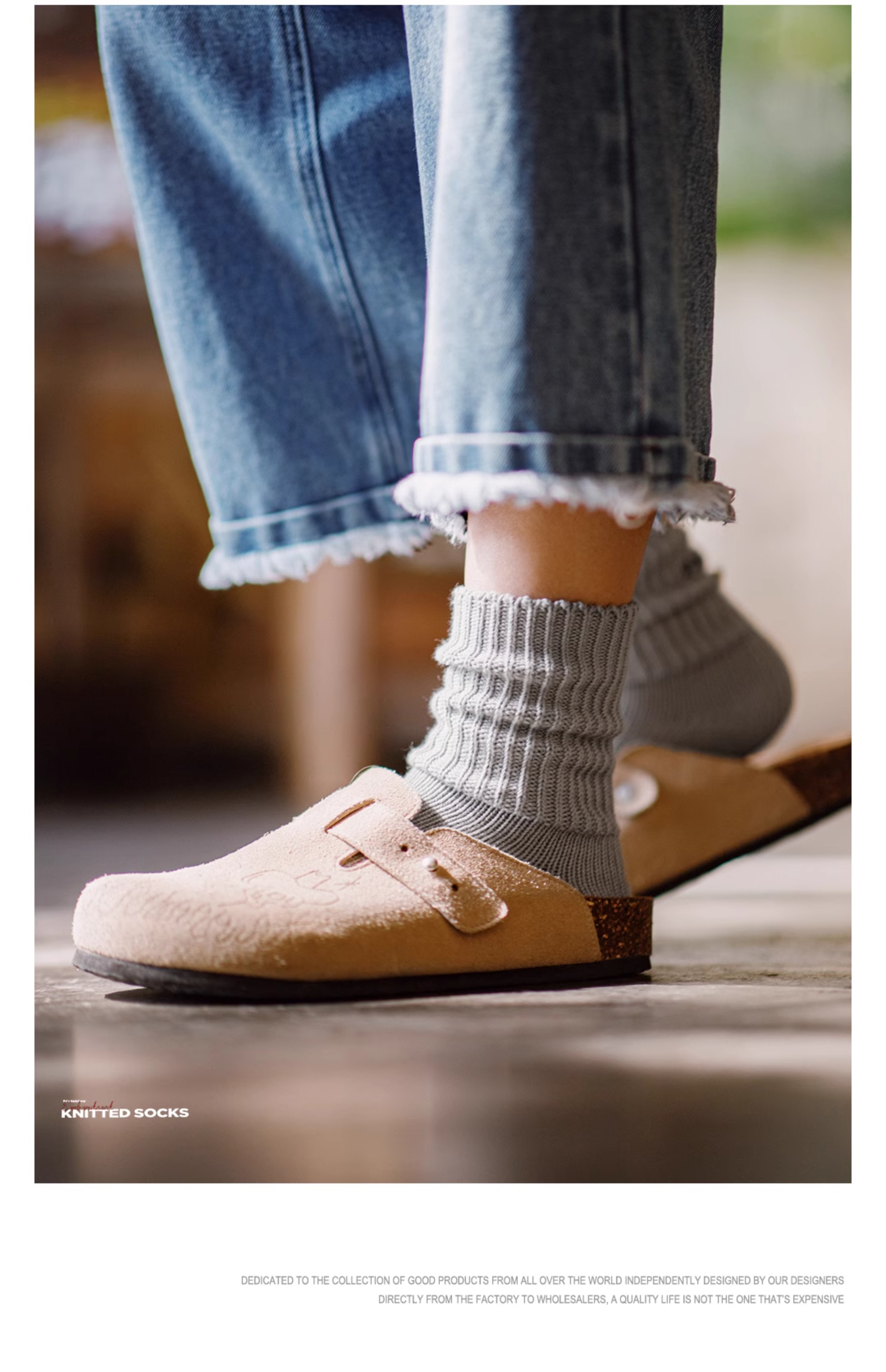 马登粗线刺绣针织袜复古堆堆袜子中筒毛线袜配穆勒鞋秋冬长袜女