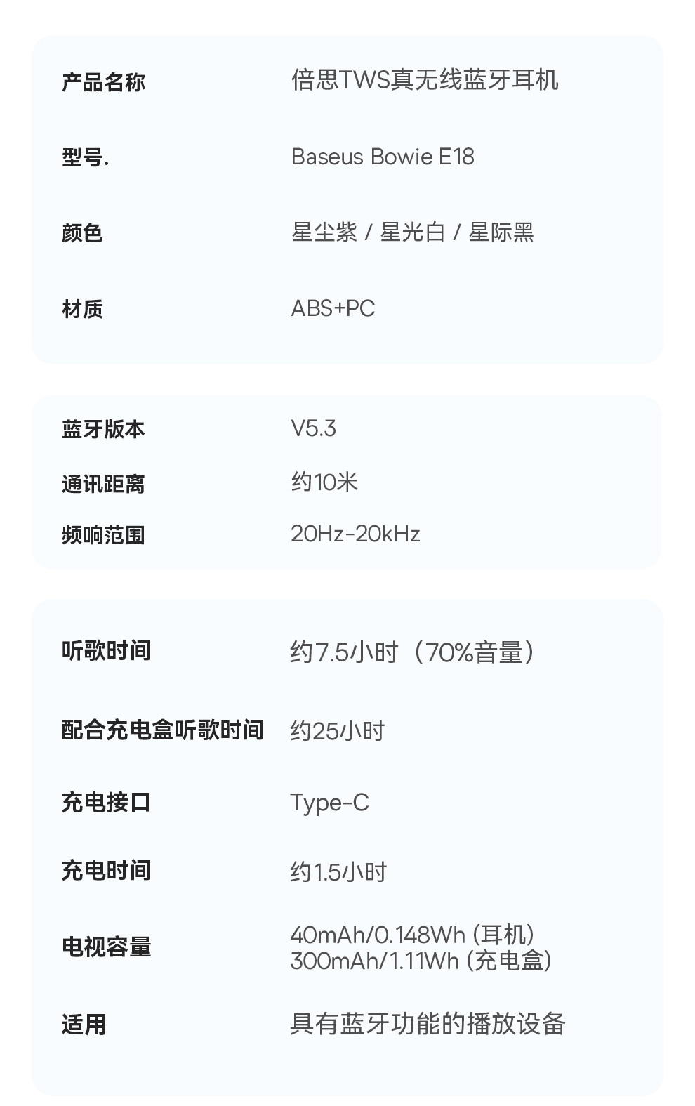 【积分兑换】倍思 Bowie系列 E18 TWS真无线蓝牙耳机