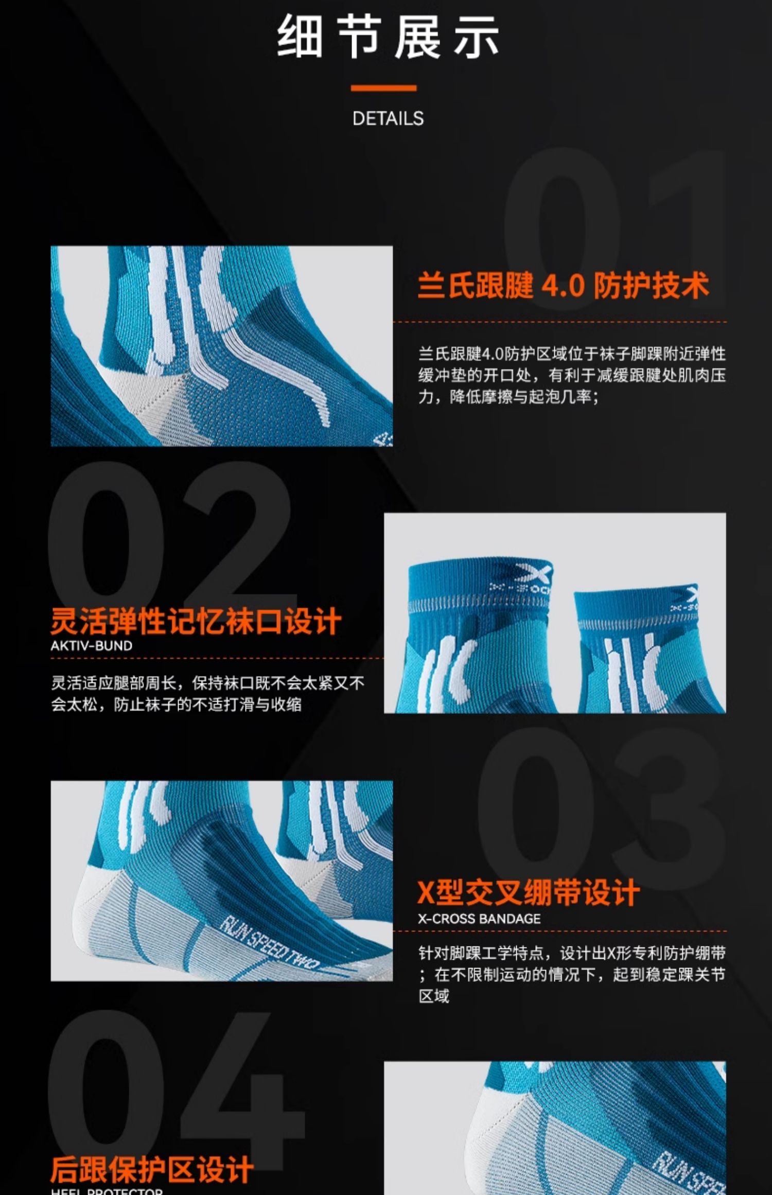 X-SOCKS 速跑二代技术系列运动袜 竞技专业越野登山篮球跑步袜XS-RS16S19U