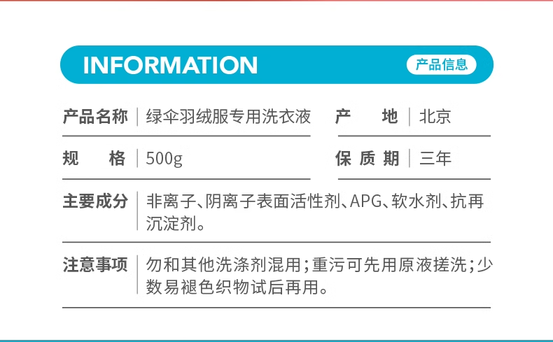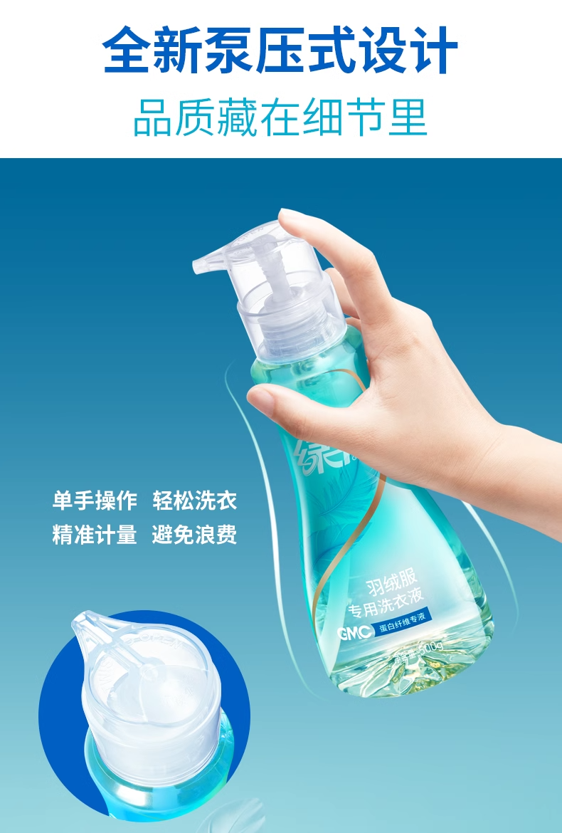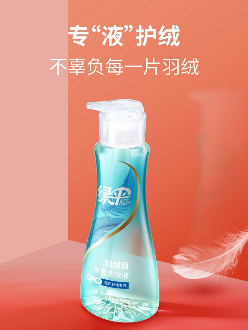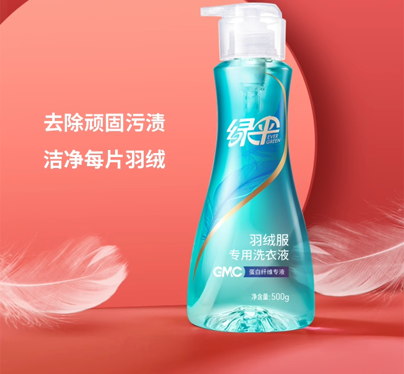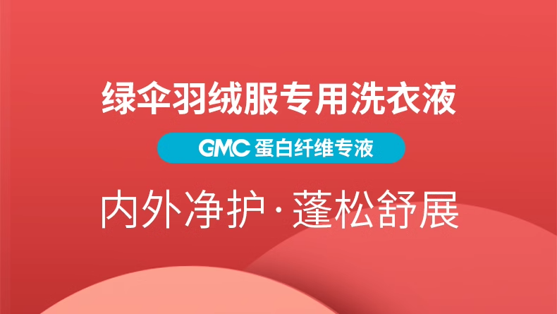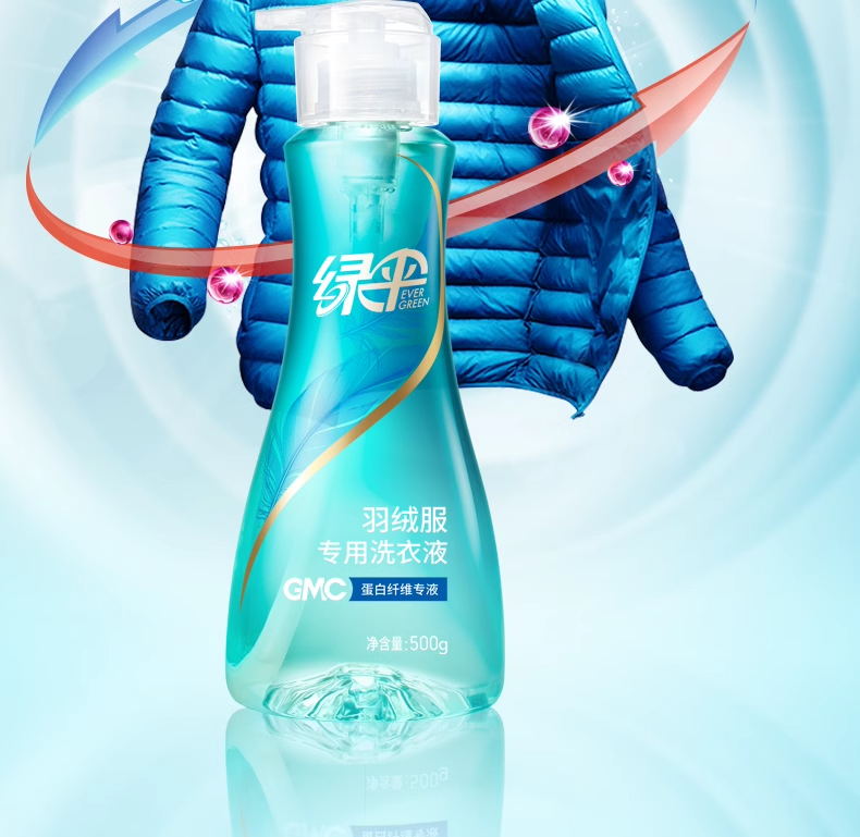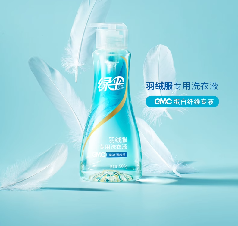 绿伞GMC高端羽绒服专用洗衣液500g机洗去污渍洗涤剂洗羽绒服的洗衣液
