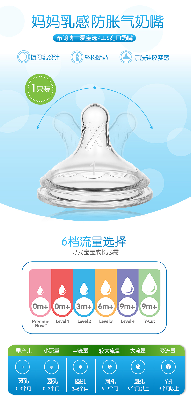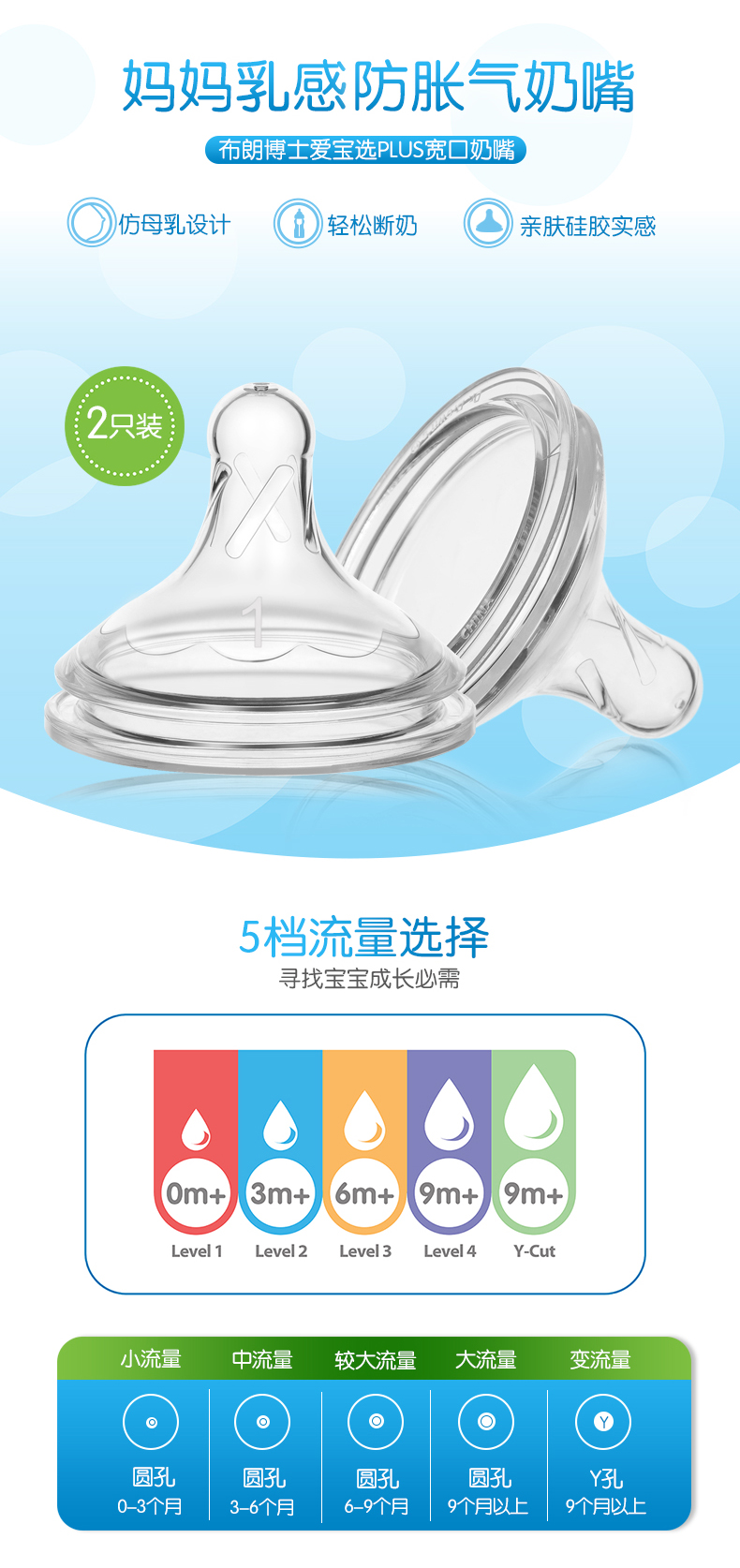 【2个装】布朗博士 爱宝选PLUS 流量1/2/3/4/Y宽口硅胶奶嘴