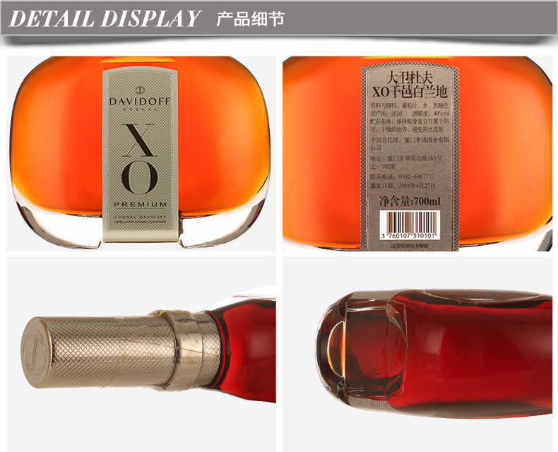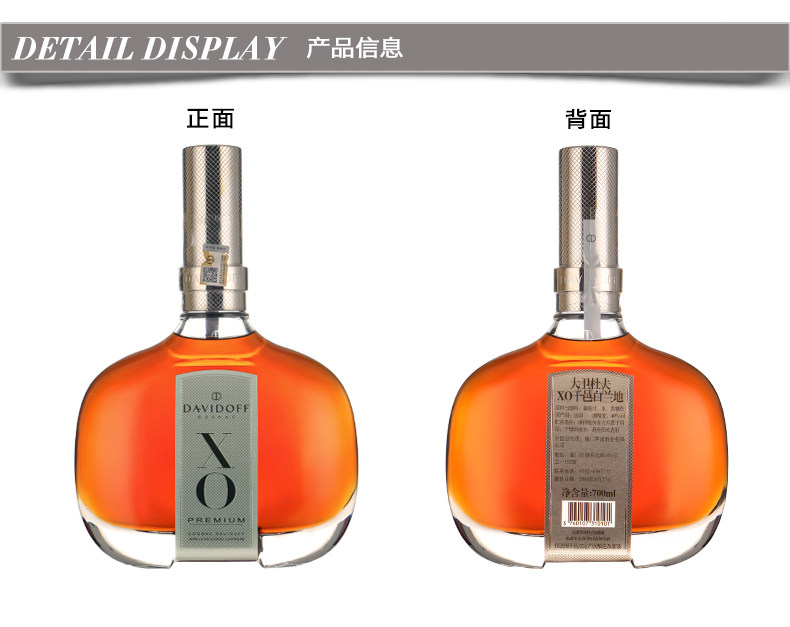 【整箱六支装】DaviDoff 大卫杜夫XO700ml*6 干邑白兰地法国进口洋酒