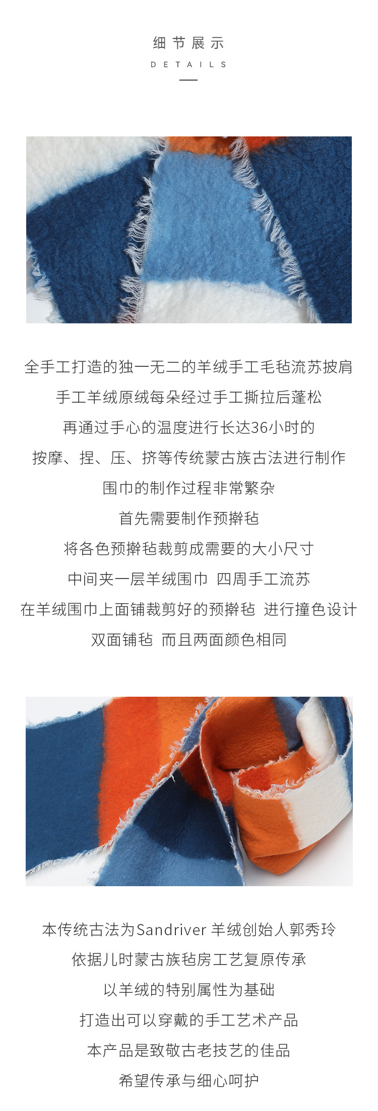 历年在巴黎时装周亮相,享誉世界的艺术羊绒品牌[Sandriver 沙涓]由羊绒布道者郭秀玲女士创立。阿拉善自有牧场纯种羔羊绒,日本国宝设计师小筱顺子,上海自有基地精工细作。承载羊绒情怀,坚持匠人品质。