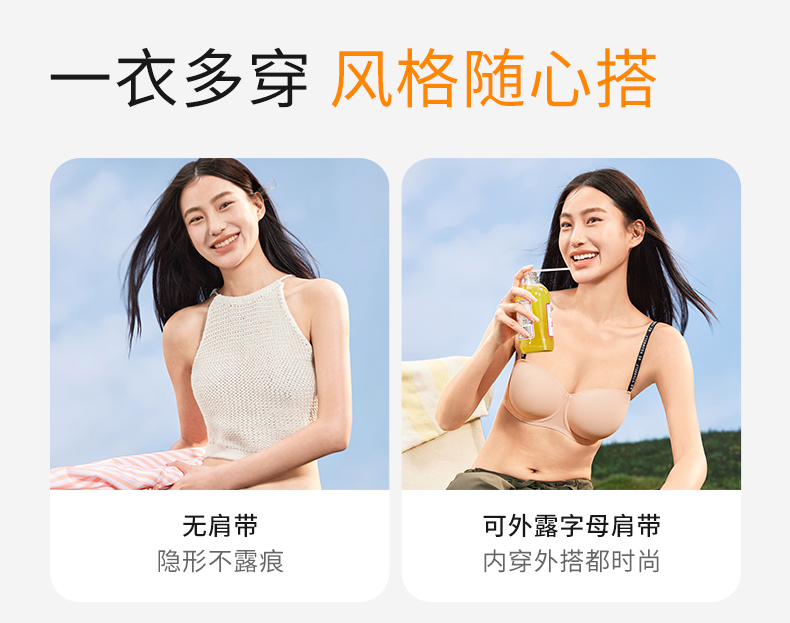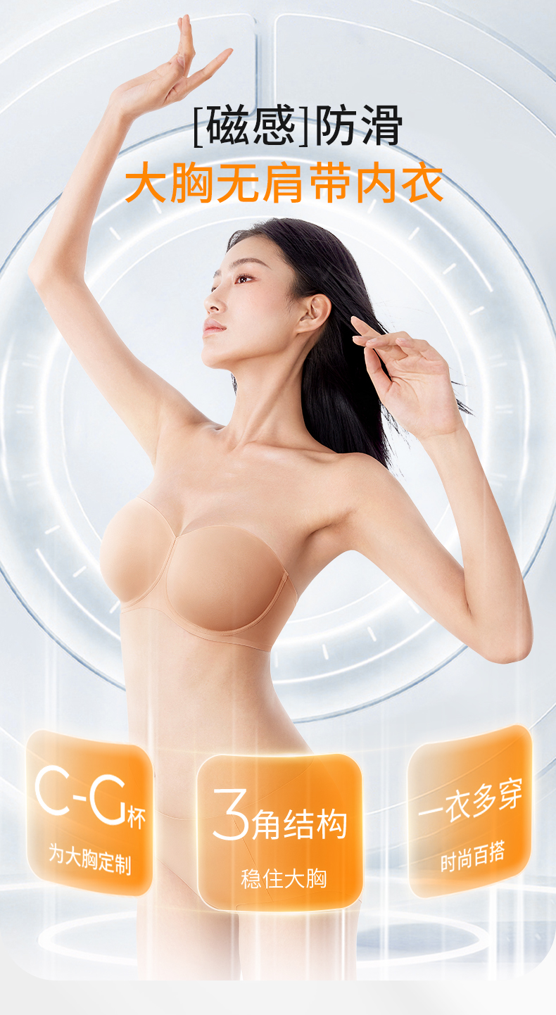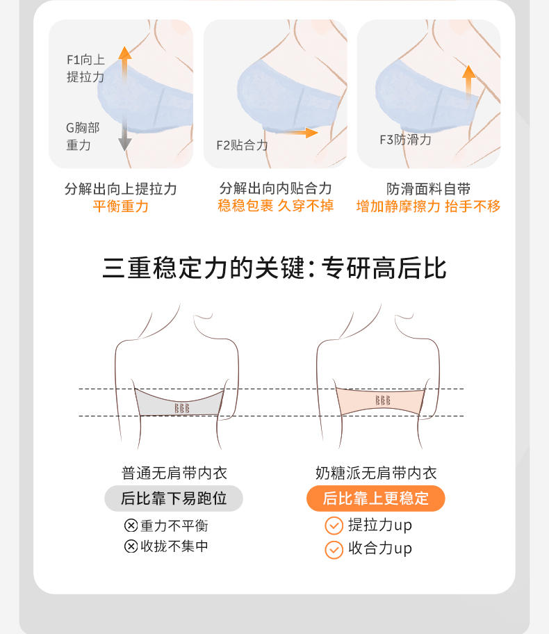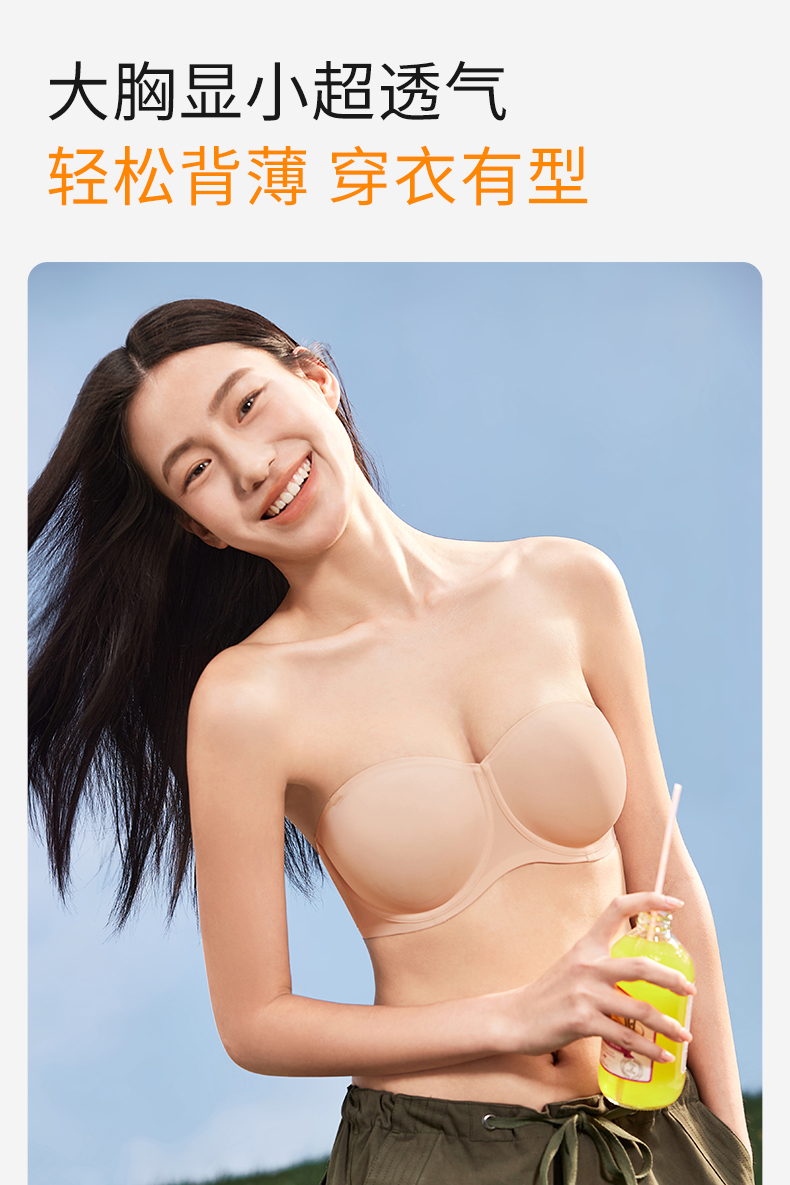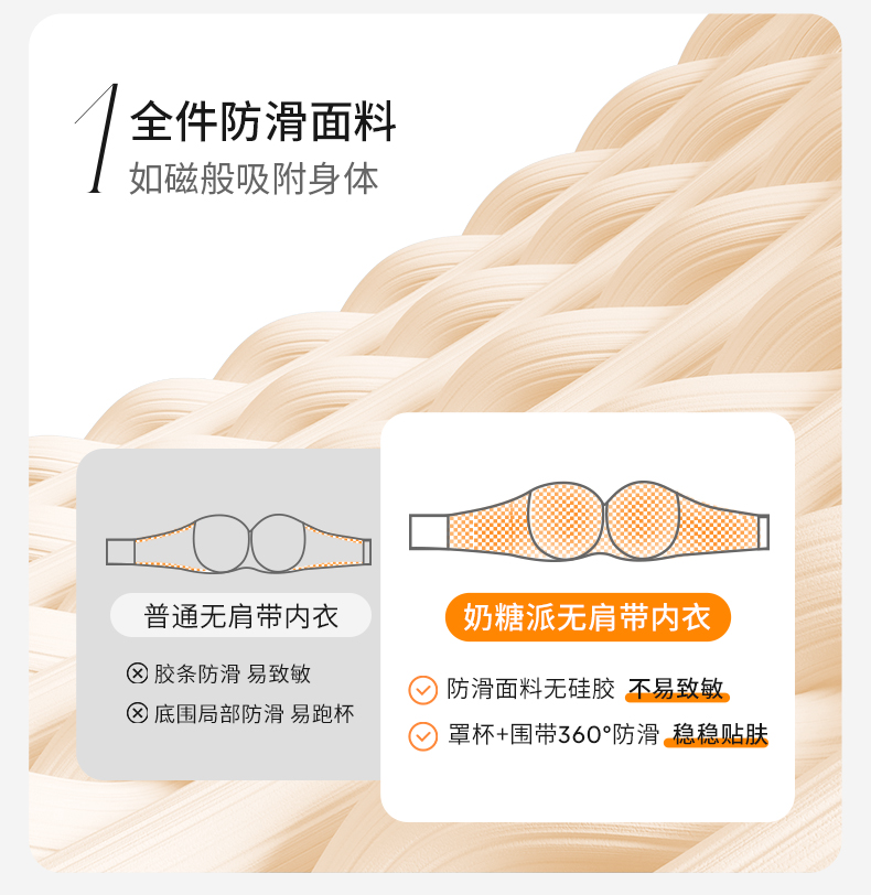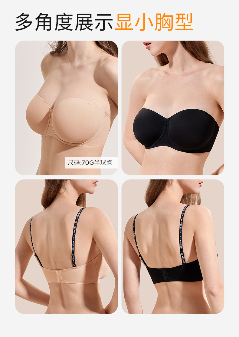 奶糖派防滑超薄无肩带2.0内衣大胸抹胸聚拢无痕美背可拆卸肩带