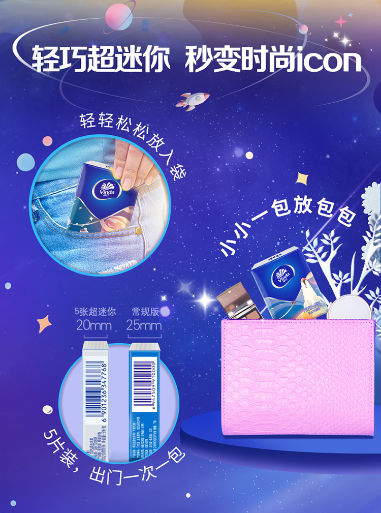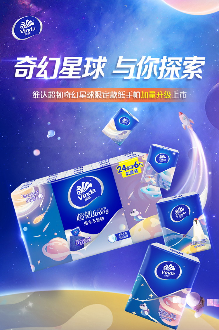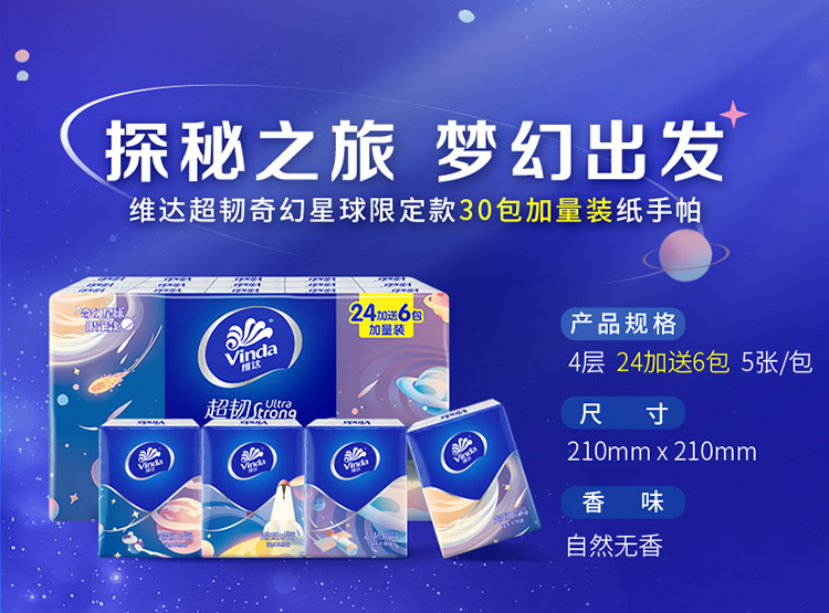 维达30包4层超韧迷你方形纸手帕纸