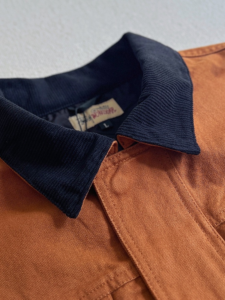 灯芯绒的领子,保暖舒适的同时,也增加了撞色的时尚元素。