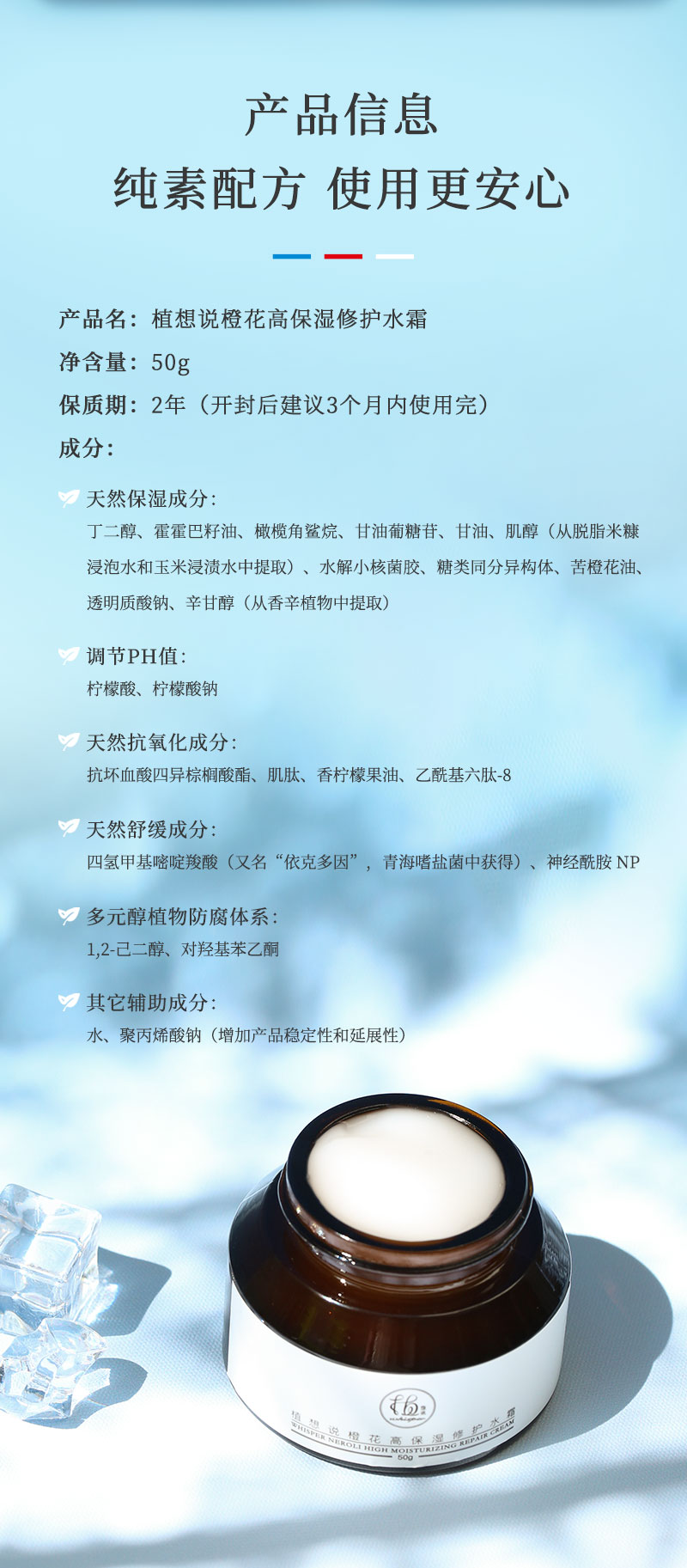 一抹化水 滋润如雨 | 植想说橙花高保湿修护水霜50g 保湿、纯素、缓解干燥面霜