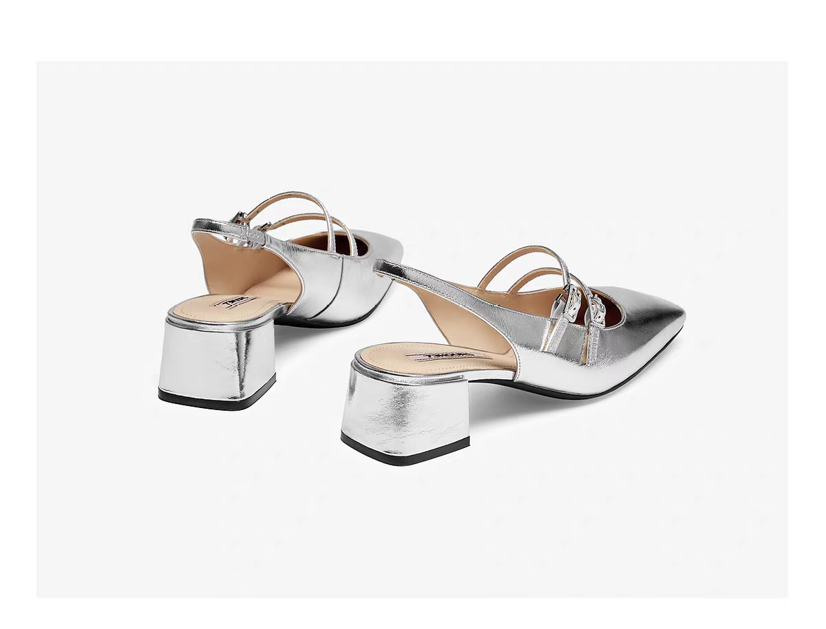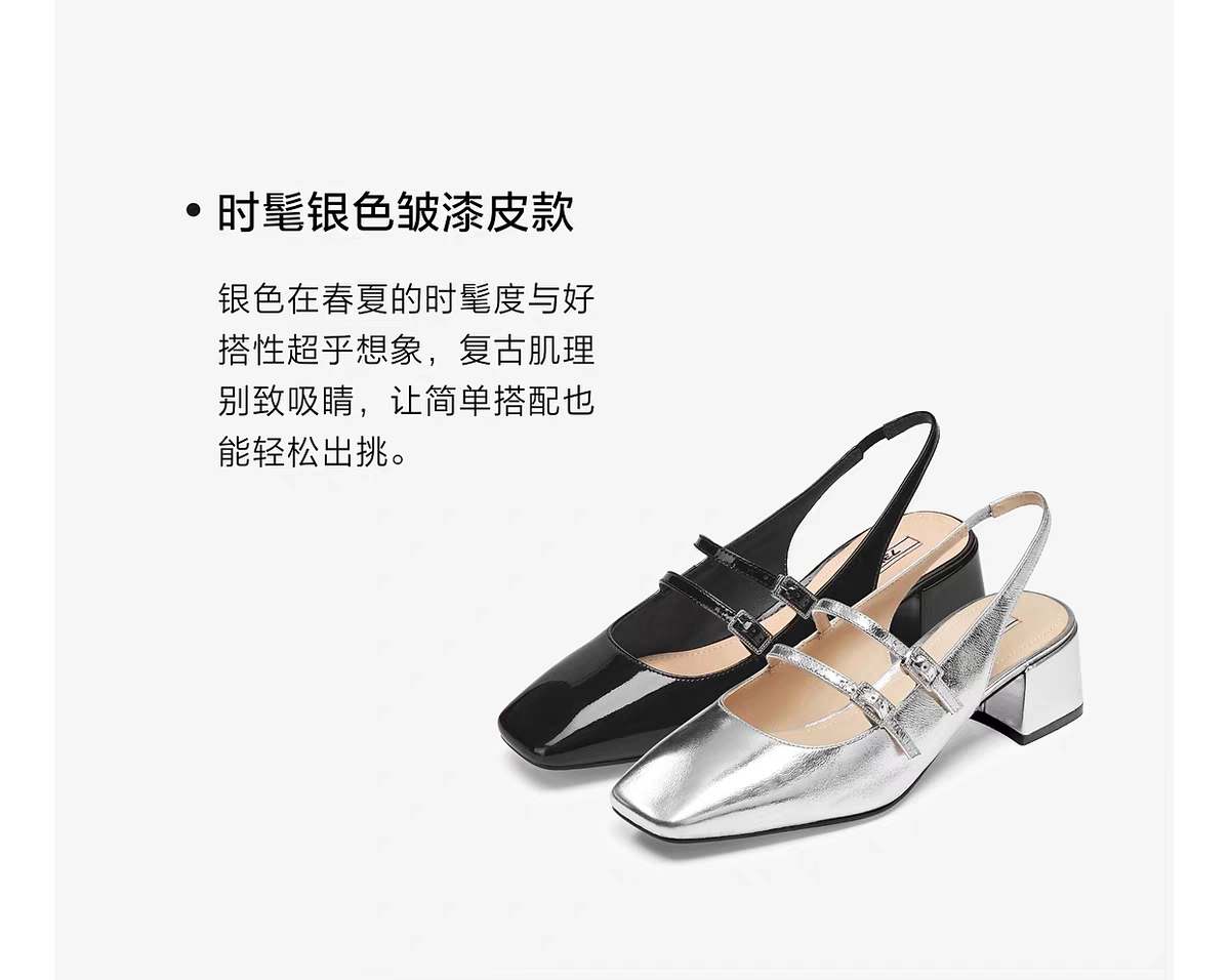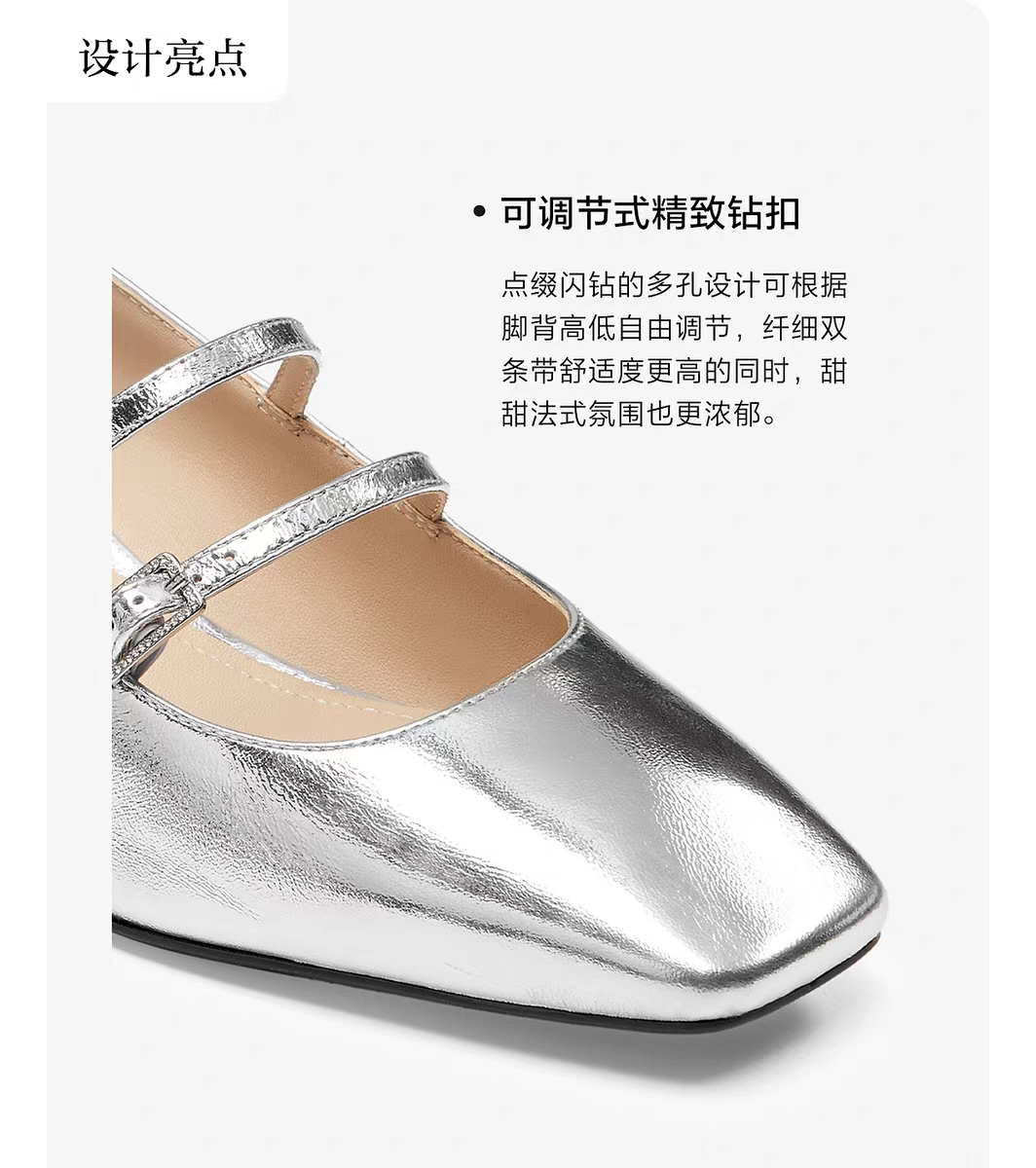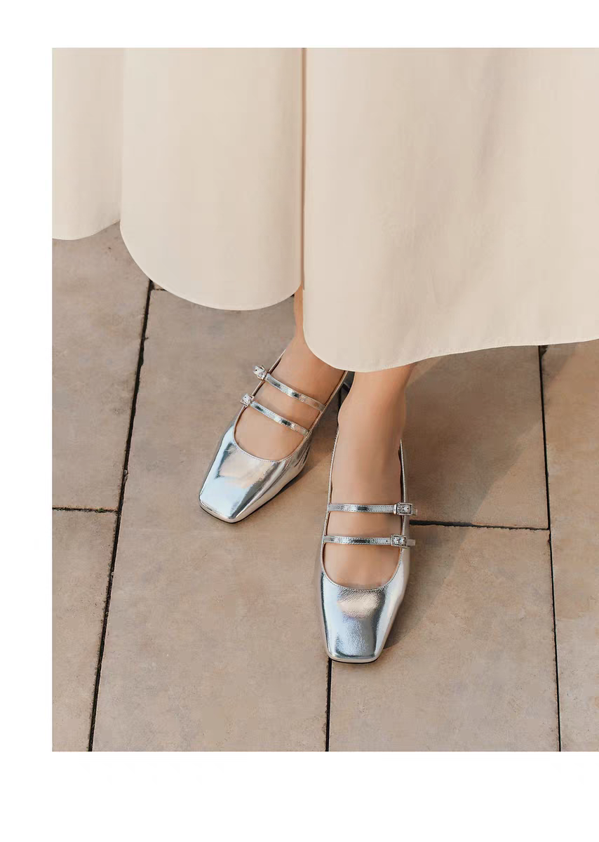 BF楼73Hours73hours女鞋Corrin2026春季新款法式银色复古钻扣粗跟玛丽珍凉鞋吊牌价1280活动价931
