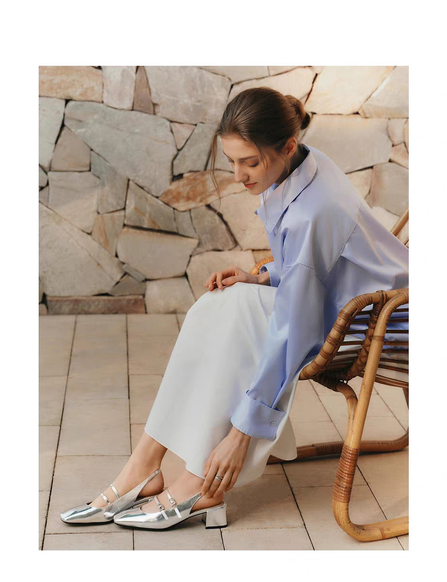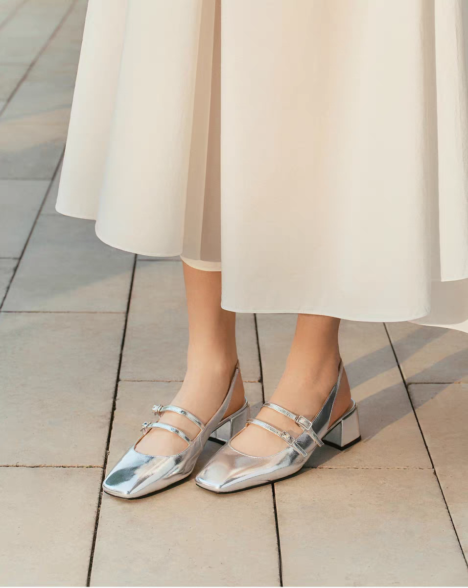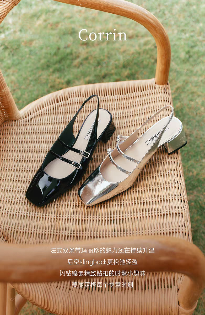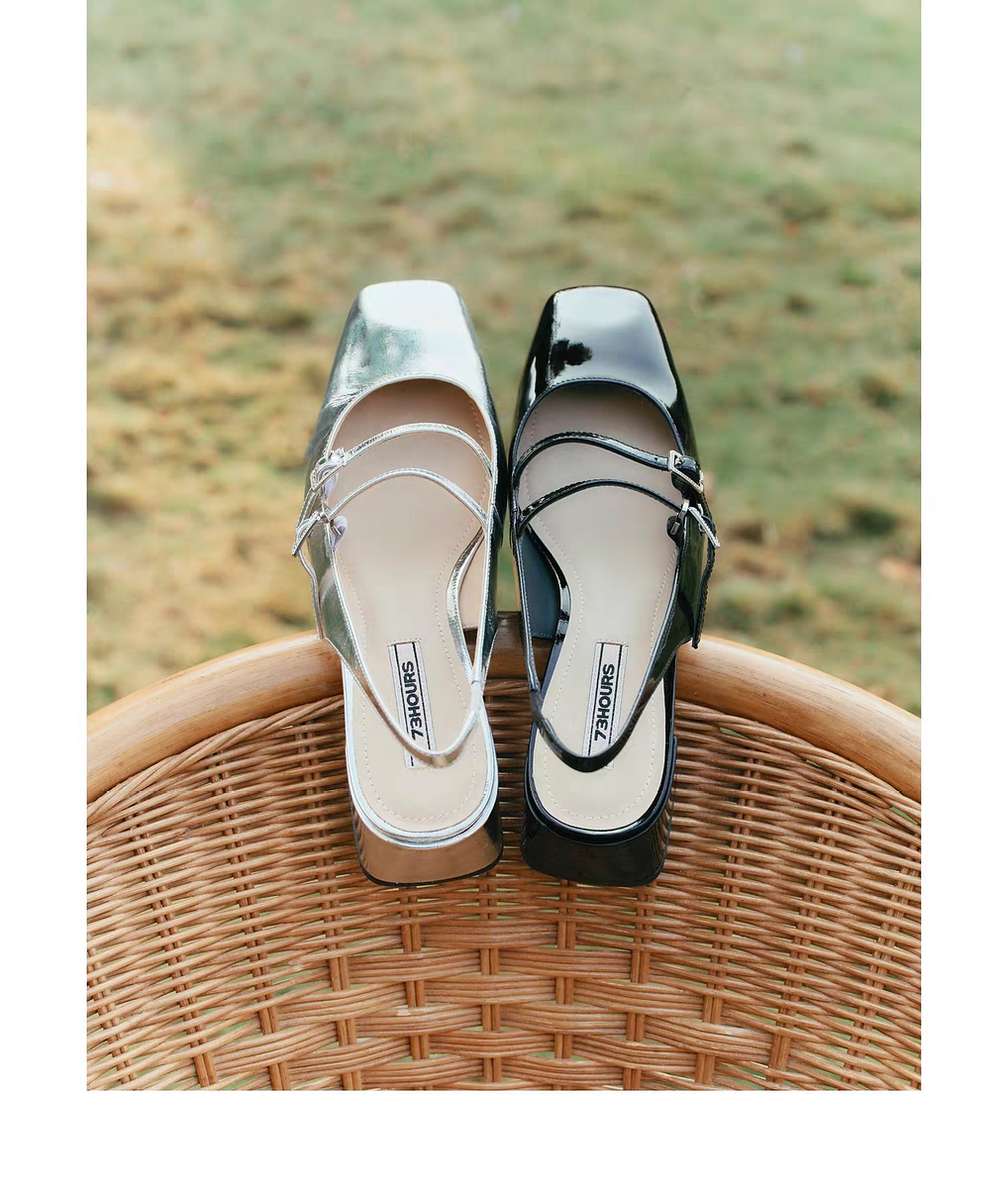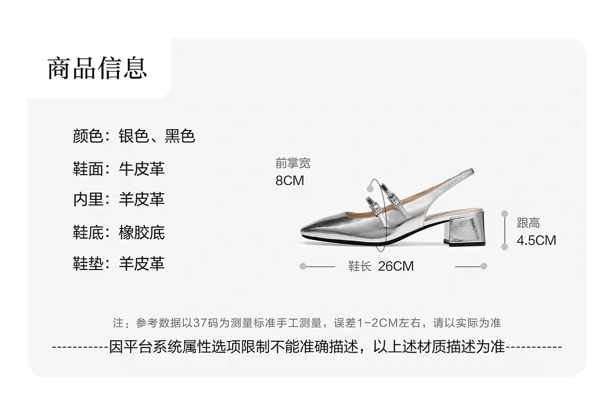 BF楼73Hours73hours女鞋Corrin2026春季新款法式银色复古钻扣粗跟玛丽珍凉鞋吊牌价1280活动价931