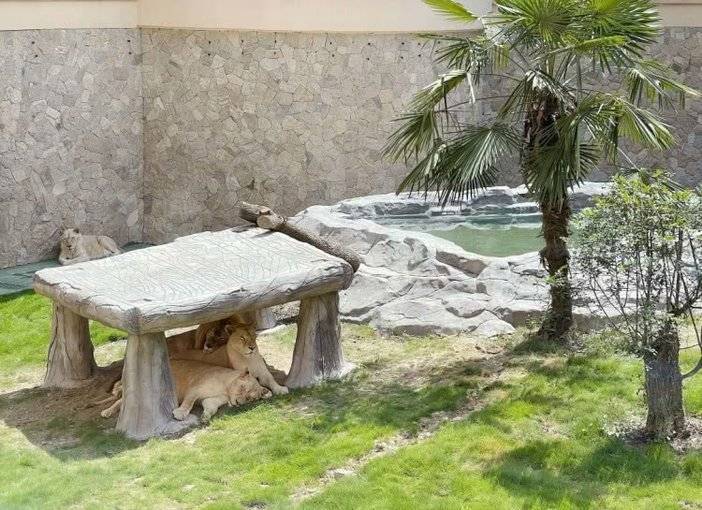 独特的圆形结构可以在四面八方观测到狮王在草地上闲庭信步。