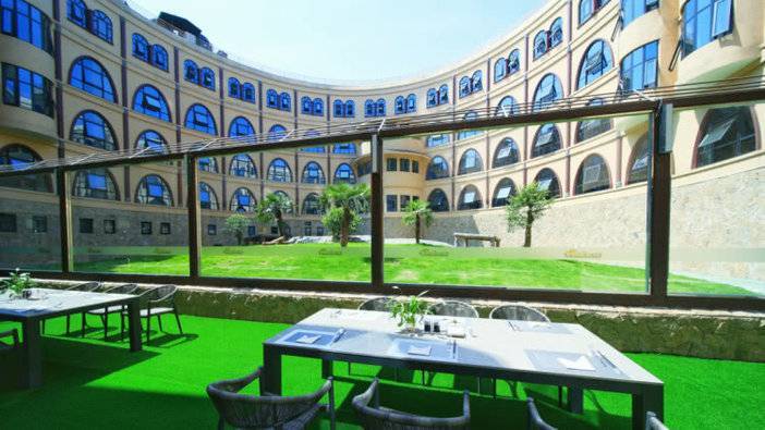 这里四周群山环抱风景秀美,是一座以古罗马斗兽场风格融入动物主题元素而设计,是集度假、住宿和餐饮为一体的休闲式亲子度假酒店。