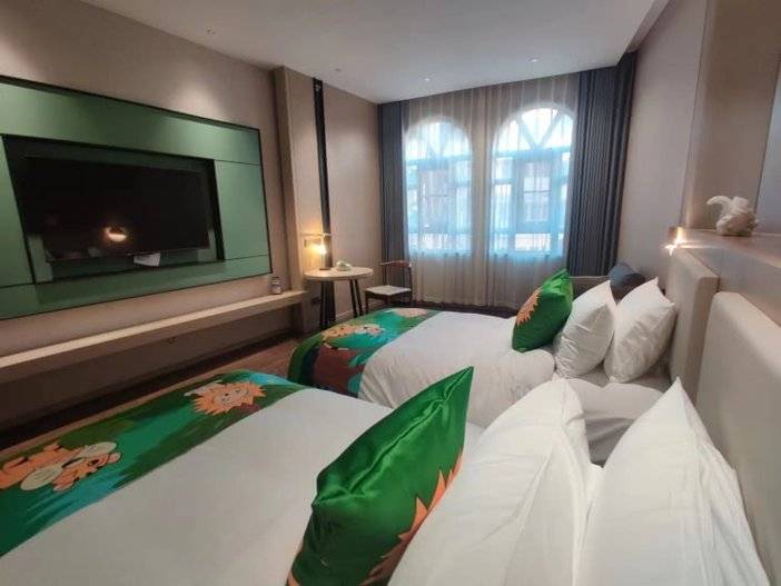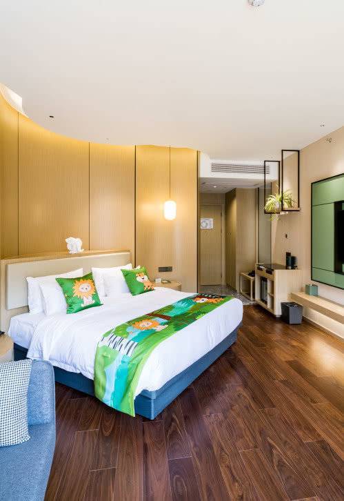 房间中满满的自然元素风格,棕黄的色调搭配绿色的细节点缀,给游客们带来满满的森林度假体验~