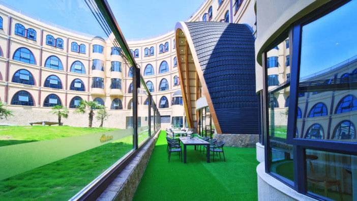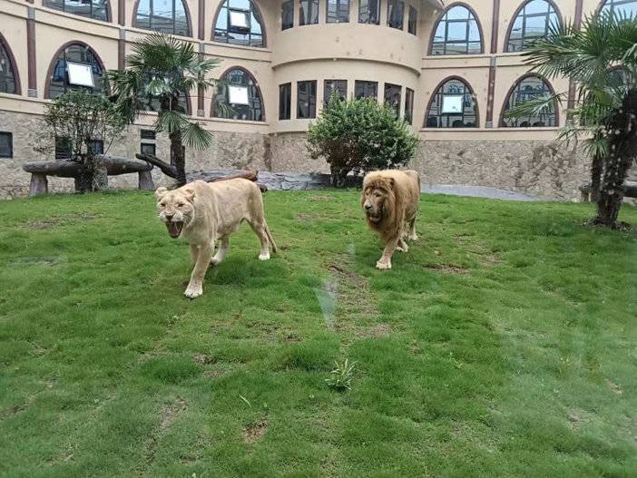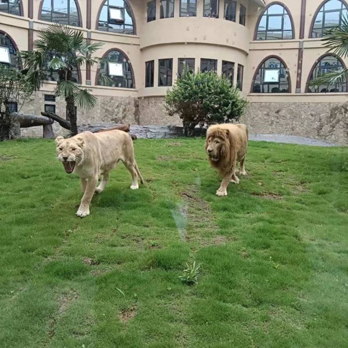 俯视酒店,可以看到一座椭圆形的建筑,圆圈的中间是一片绿油油的草地,这里住着酒店的主角“狮子”