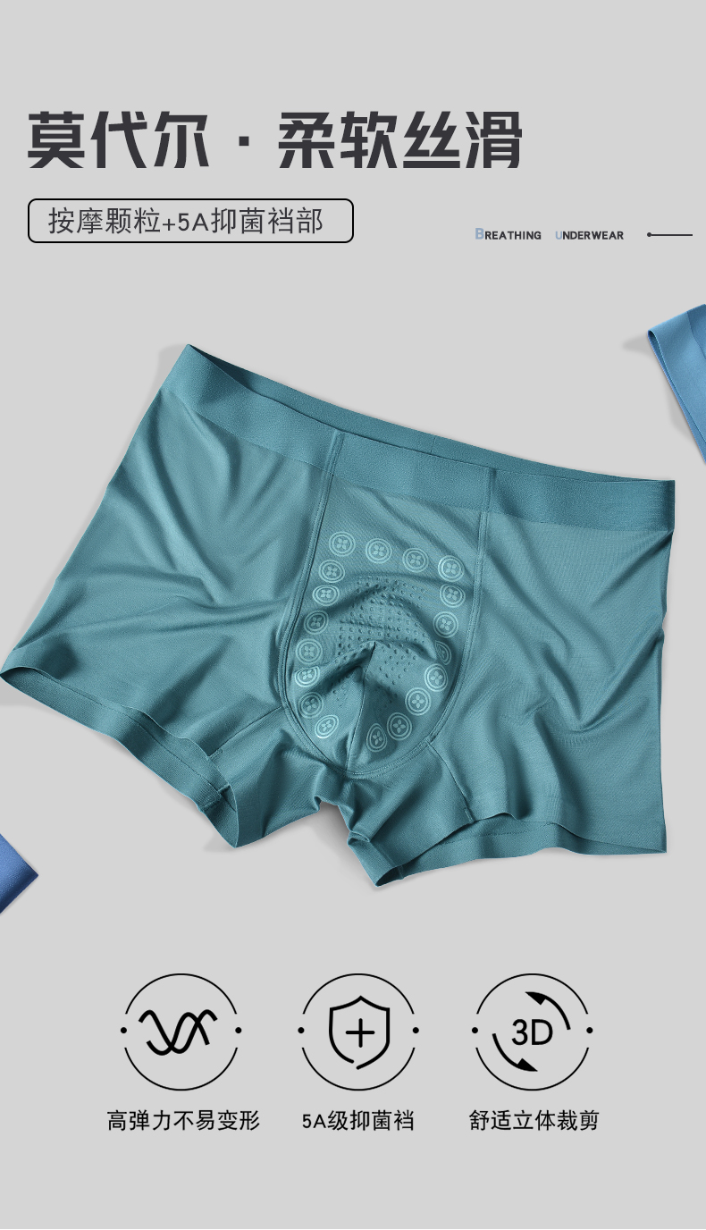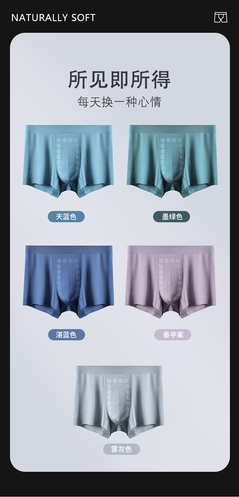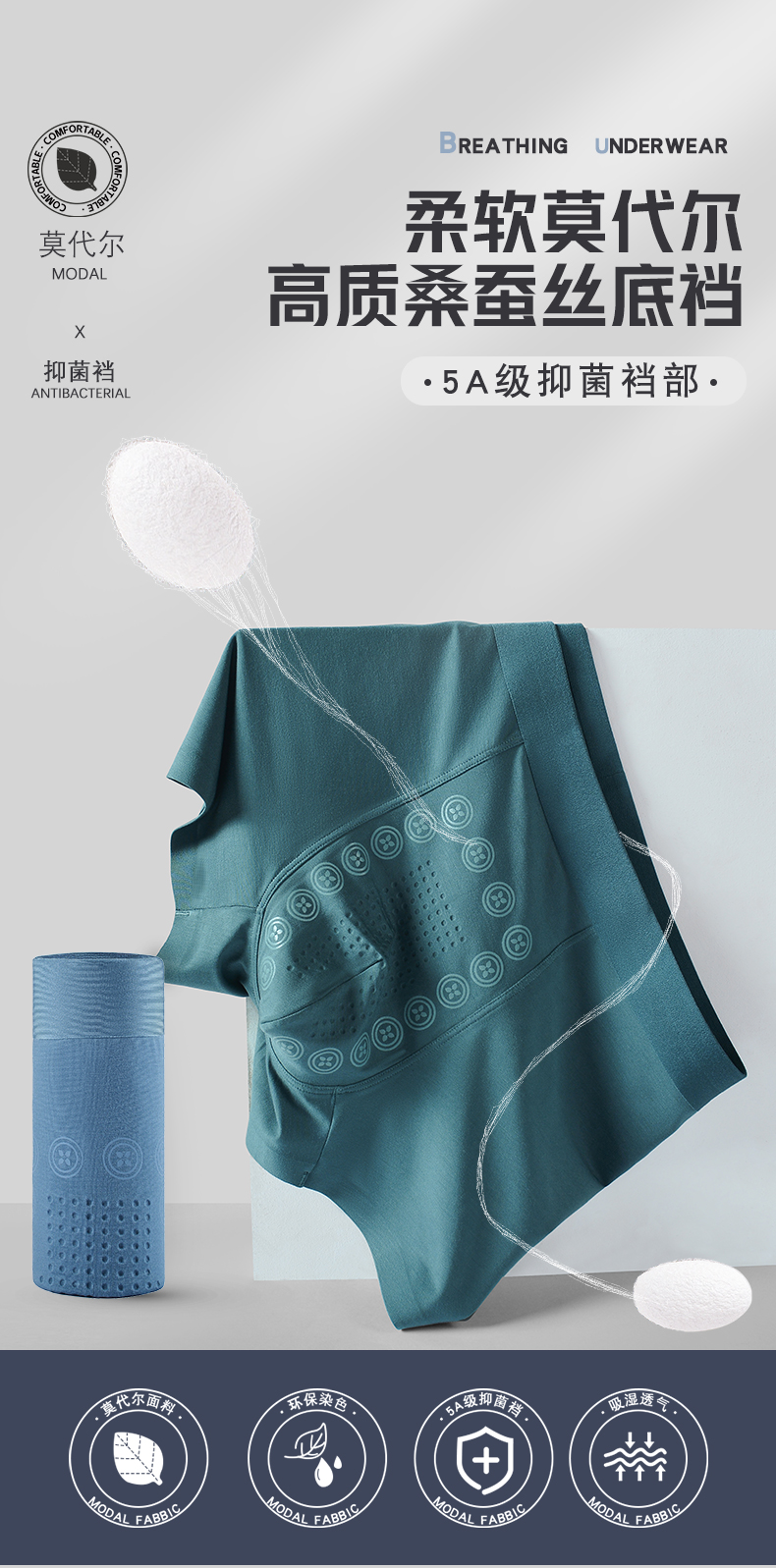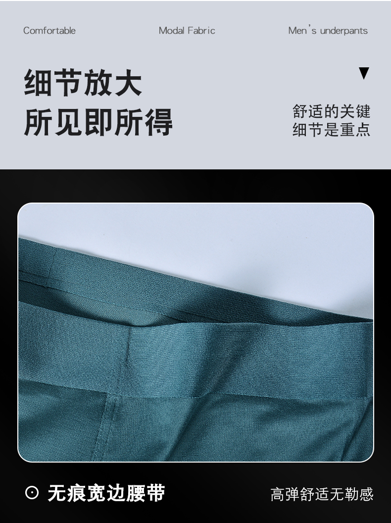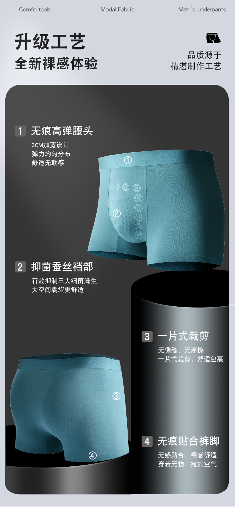 三条优惠装 秋冬男士60支莫代尔内裤 桑蚕丝底档 无痕平角裤 亲肤舒适四角裤