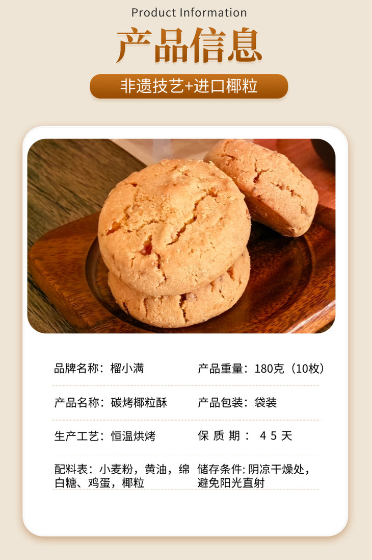 [屁侠推荐]榴小满非遗美食 碳烤椰粒酥 0反式脂肪酸 高膳食纤维 焦香酥脆 轻甜不腻