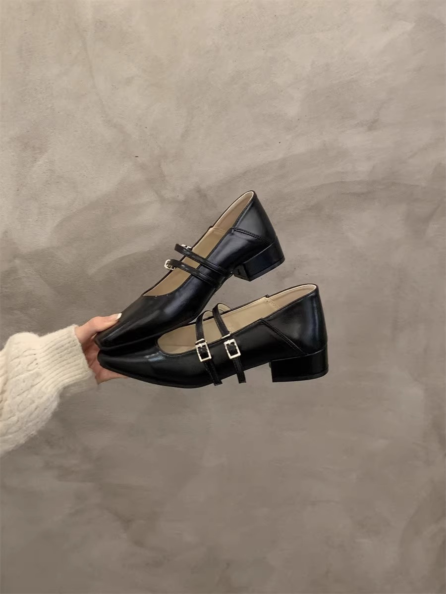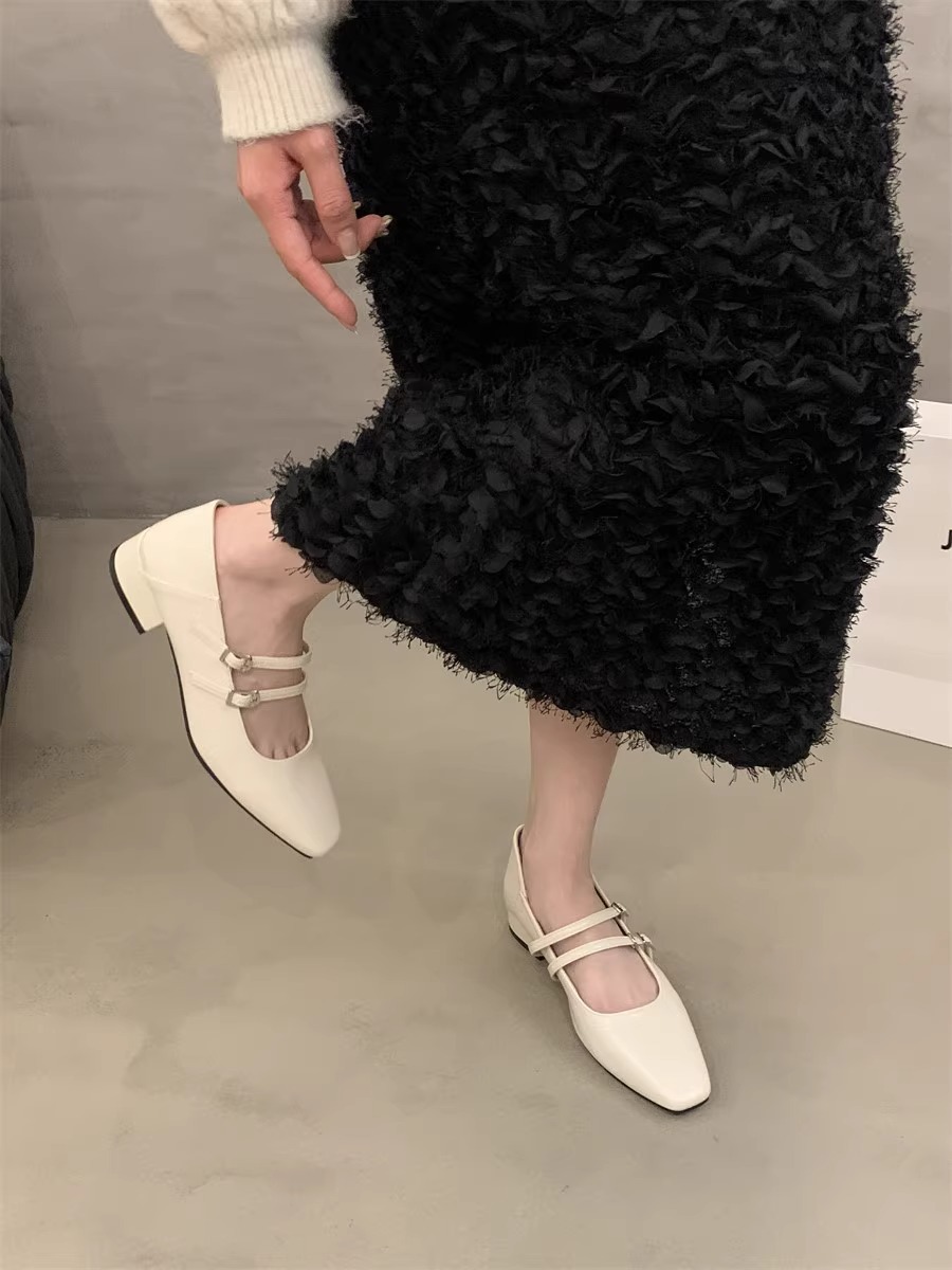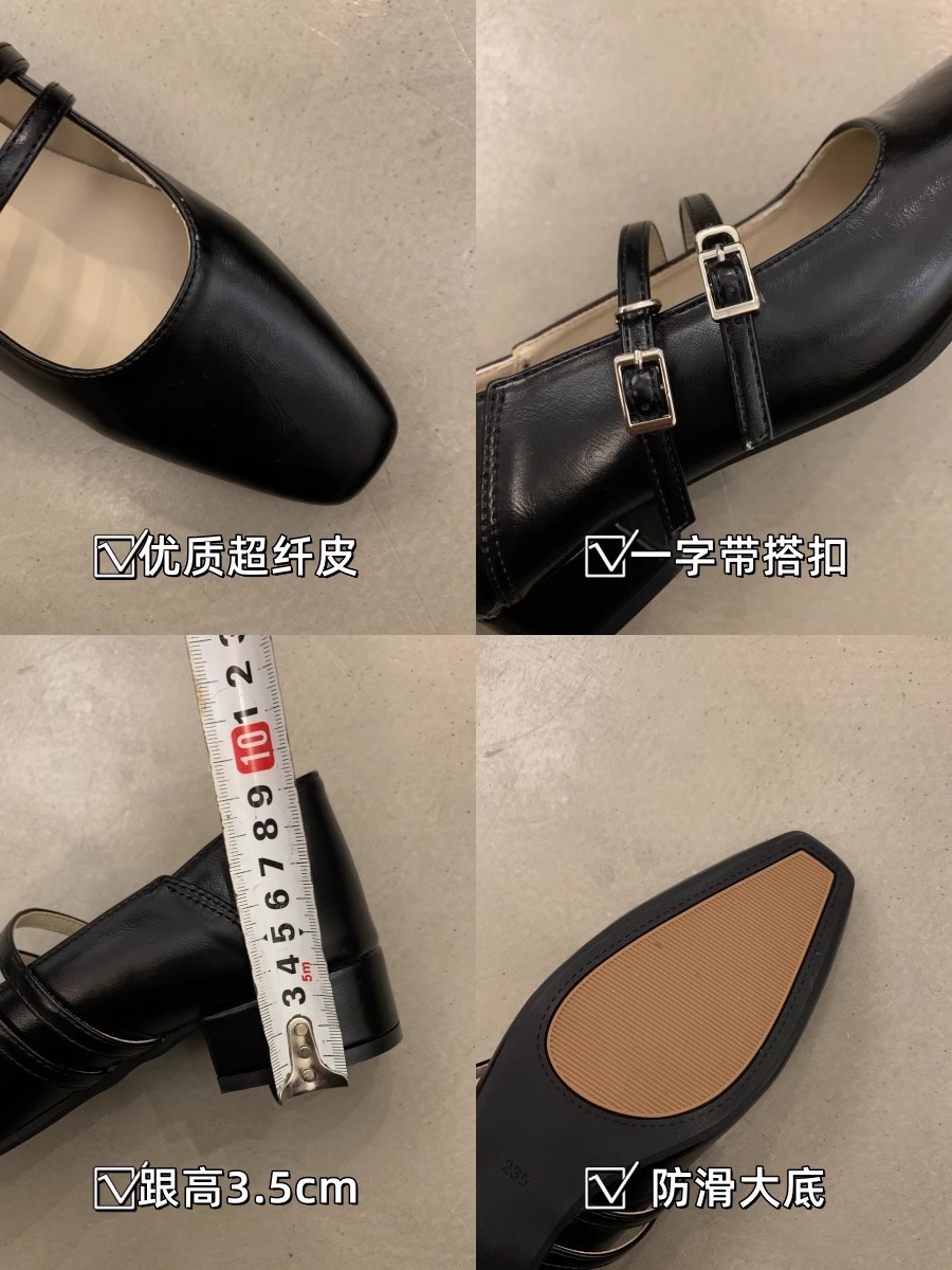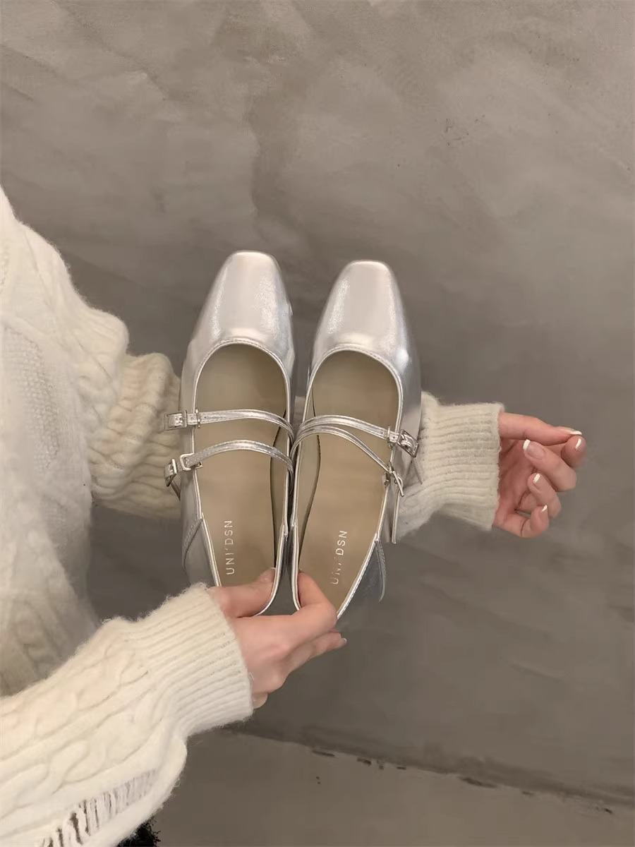 粗跟银色玛丽珍鞋浅口2024年春季新款一字带配裙子气质单鞋女鞋子_ym