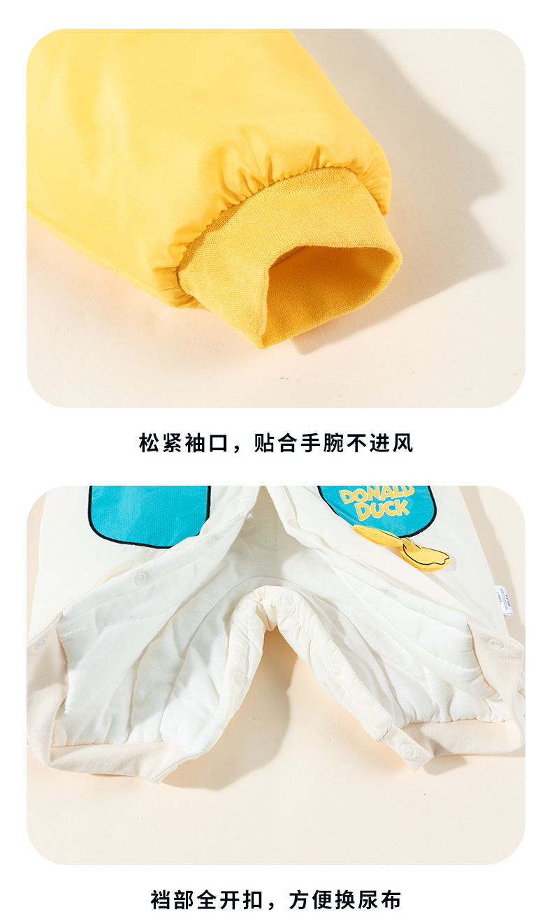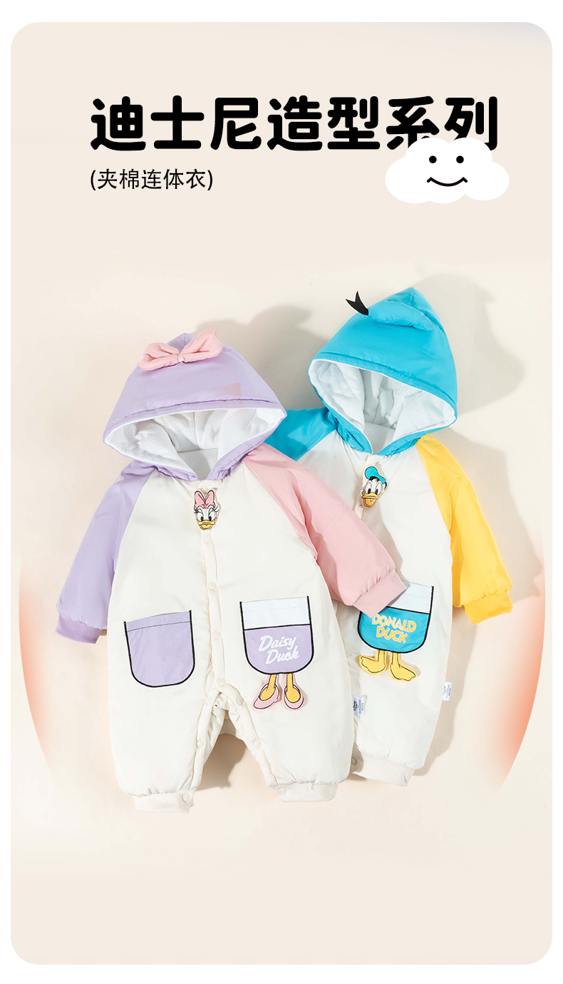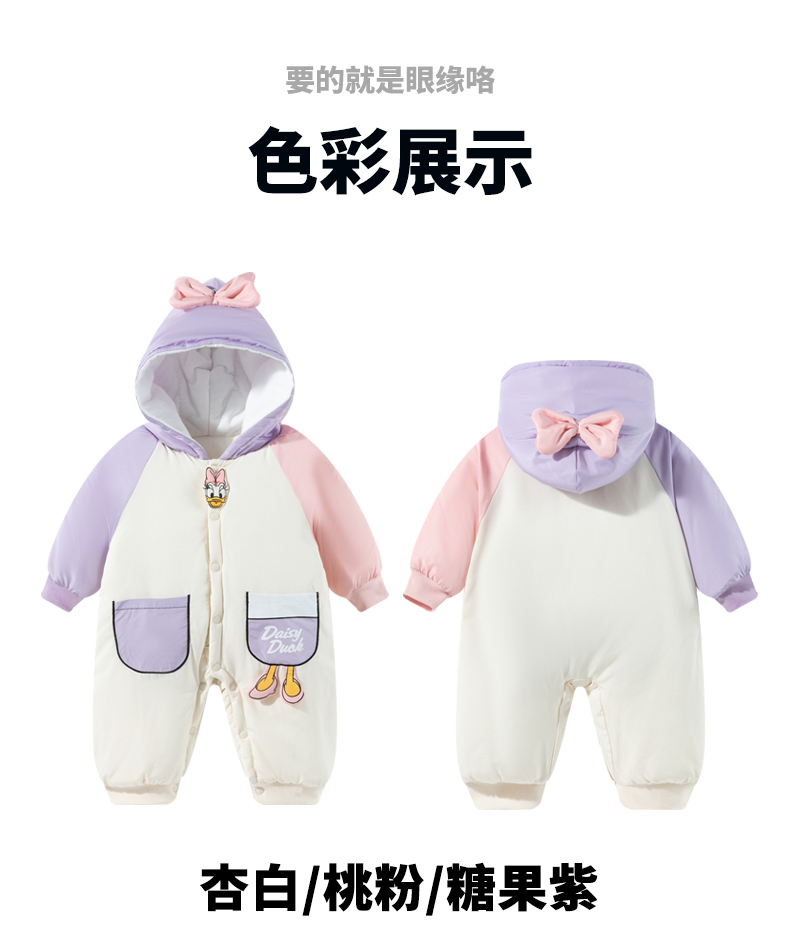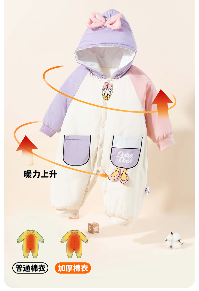 迪士尼宝宝(Disney Baby)男女儿童夹棉卡通米妮连帽连体衣休闲舒适保暖外套24年秋冬季新款ZD4DL013