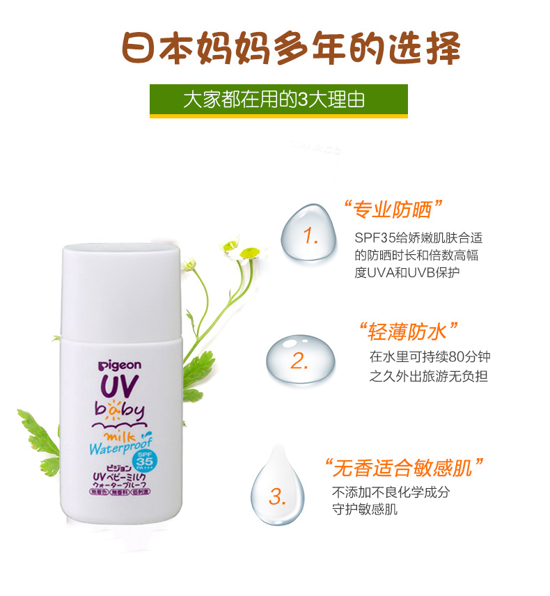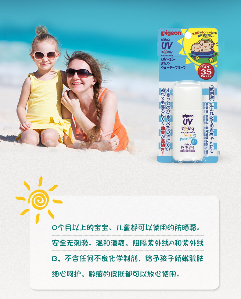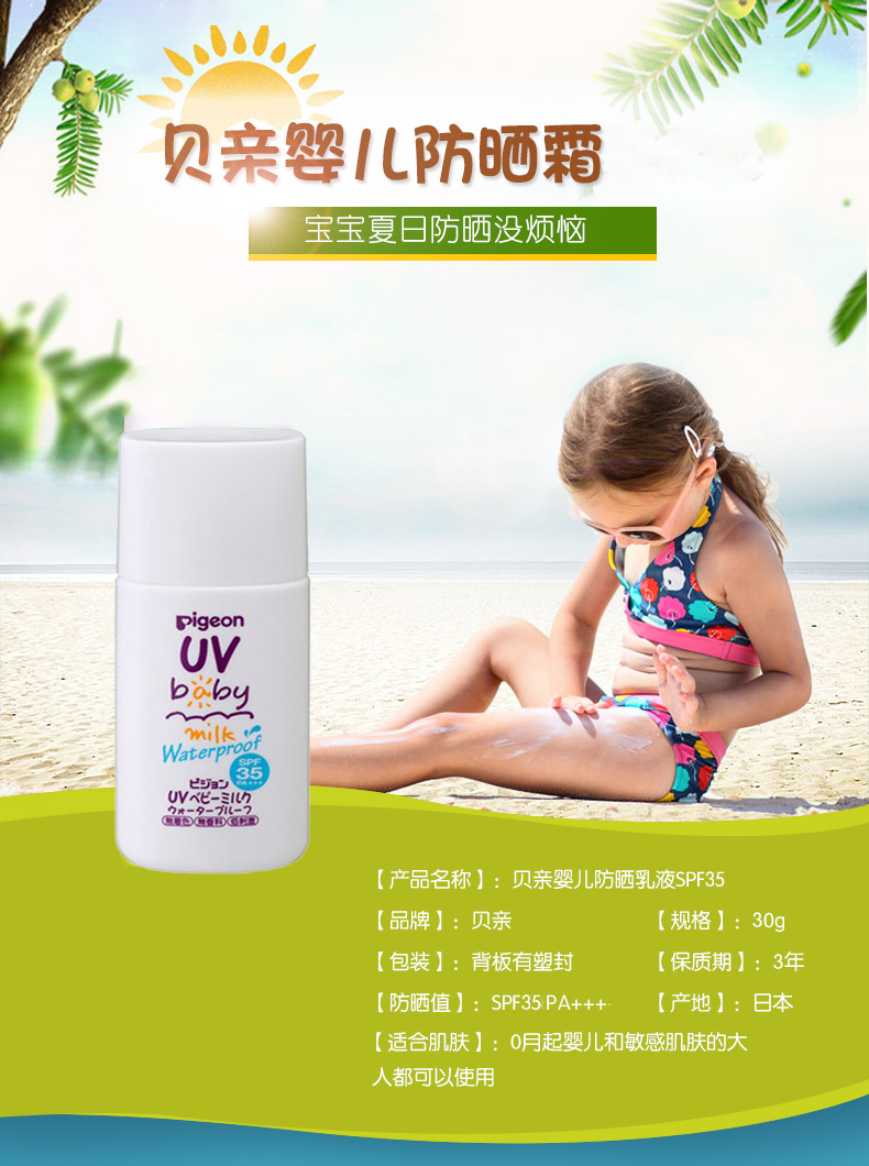 【保税仓】日本进口贝亲pigeon婴儿防晒乳液 防晒霜 防水SPF35 PA+++ 30g蓝色