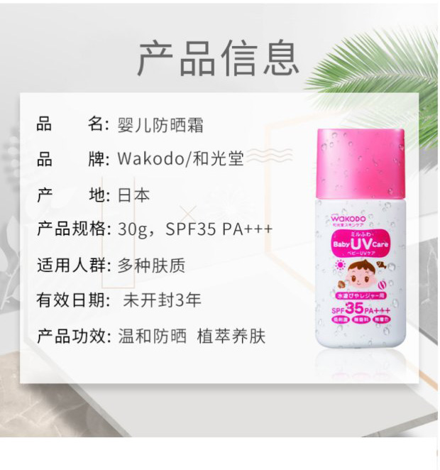 【保税仓】日本WAKODO和光堂宝宝防晒霜35倍 30g/瓶