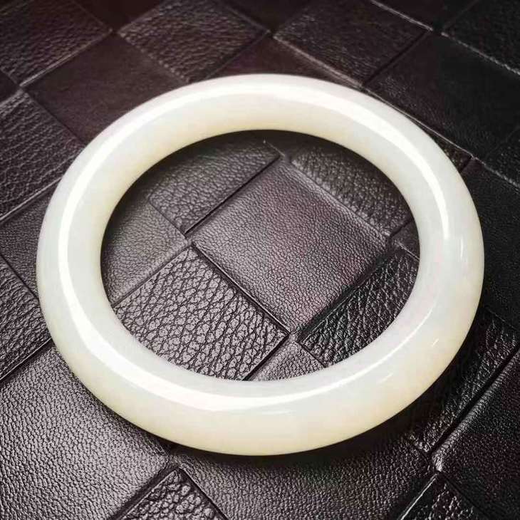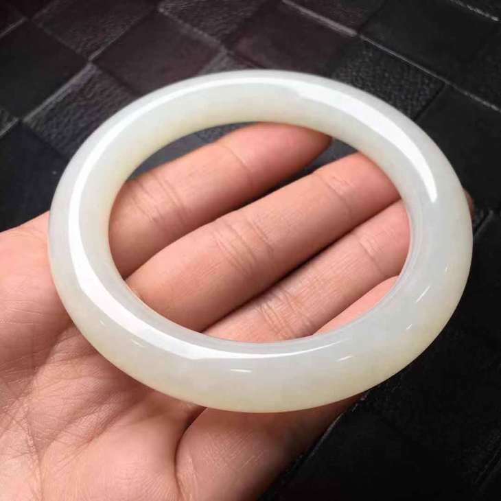 【903142】和田玉俄料圆条手镯,质地细腻 ,温润有泽,厚庄大方,完美无瑕,佩戴上手很显气质!尺寸57.2*10.6*10.3mm,倾心价3800