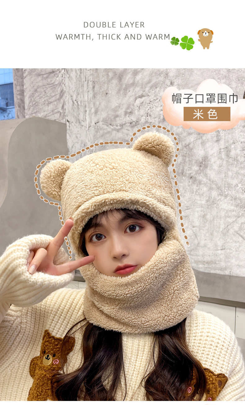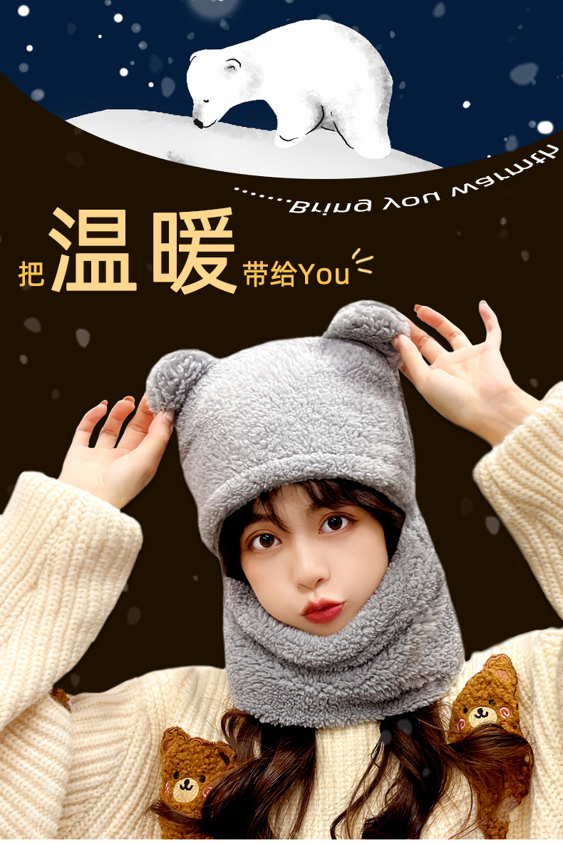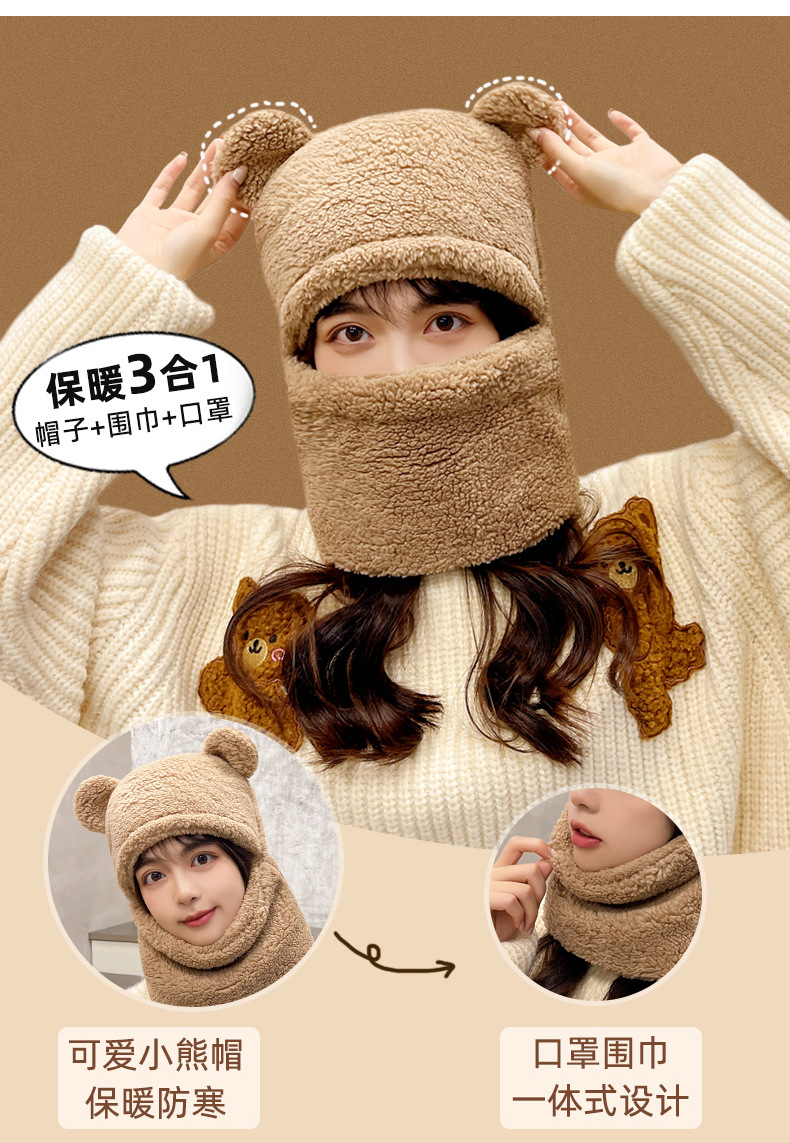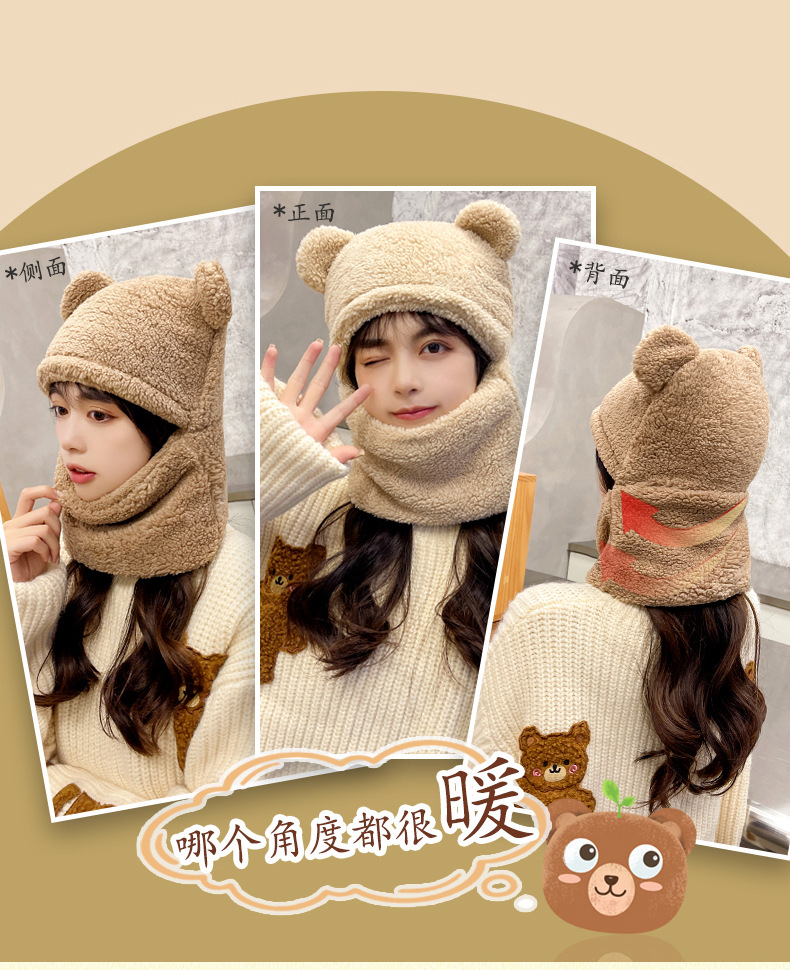 【百搭可爱❗️一体式帽子围巾】温暖你的脖子,保护你的耳朵❗️小熊帽子女加厚围巾秋冬季百搭可爱骑车护耳保暖围脖新
