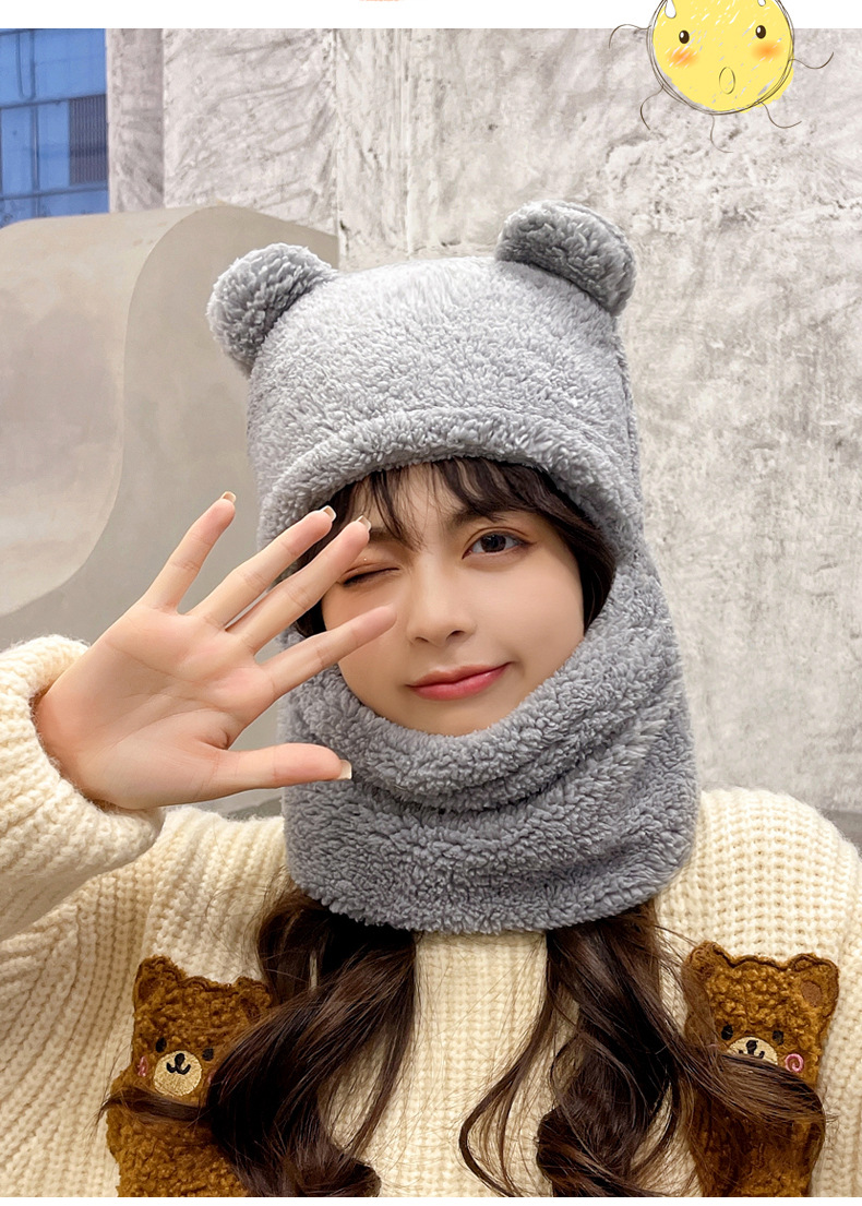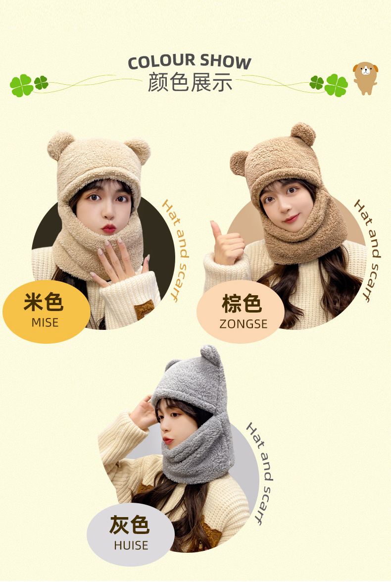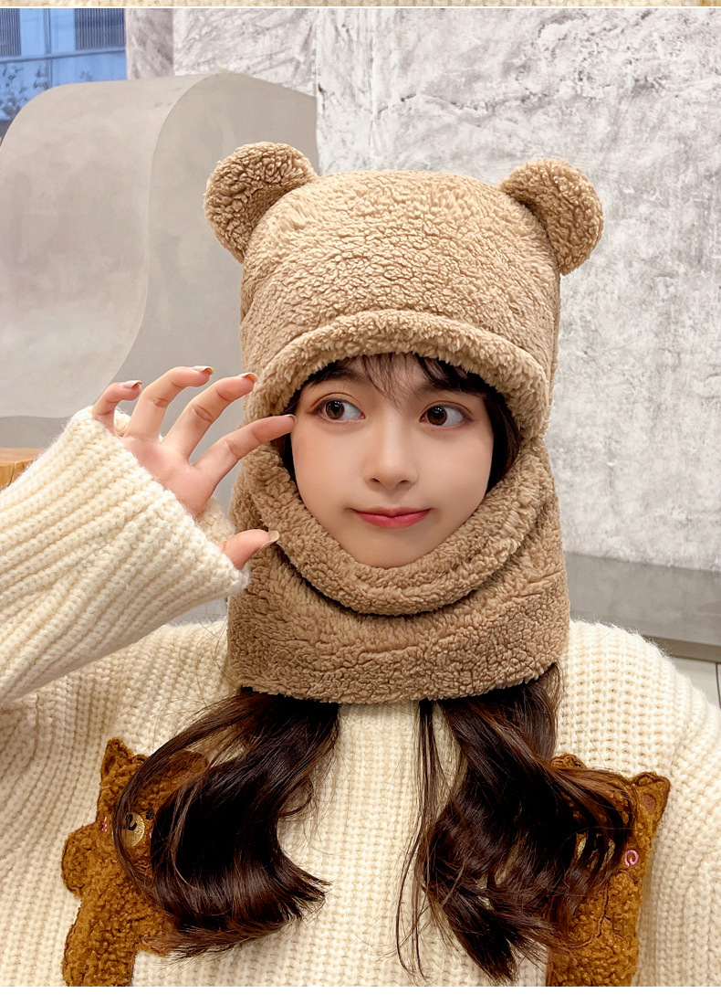 【百搭可爱❗️一体式帽子围巾】温暖你的脖子,保护你的耳朵❗️小熊帽子女加厚围巾秋冬季百搭可爱骑车护耳保暖围脖新